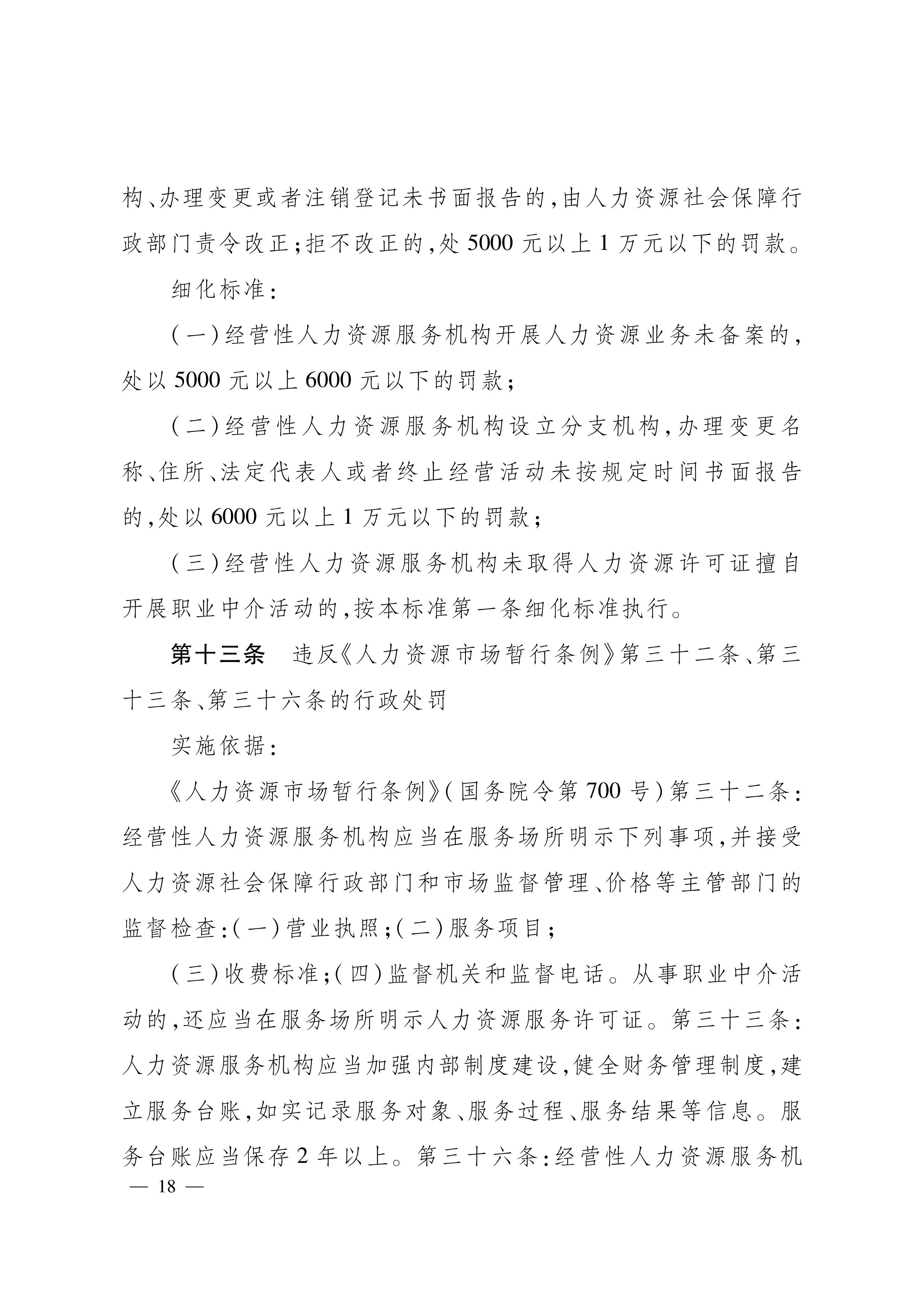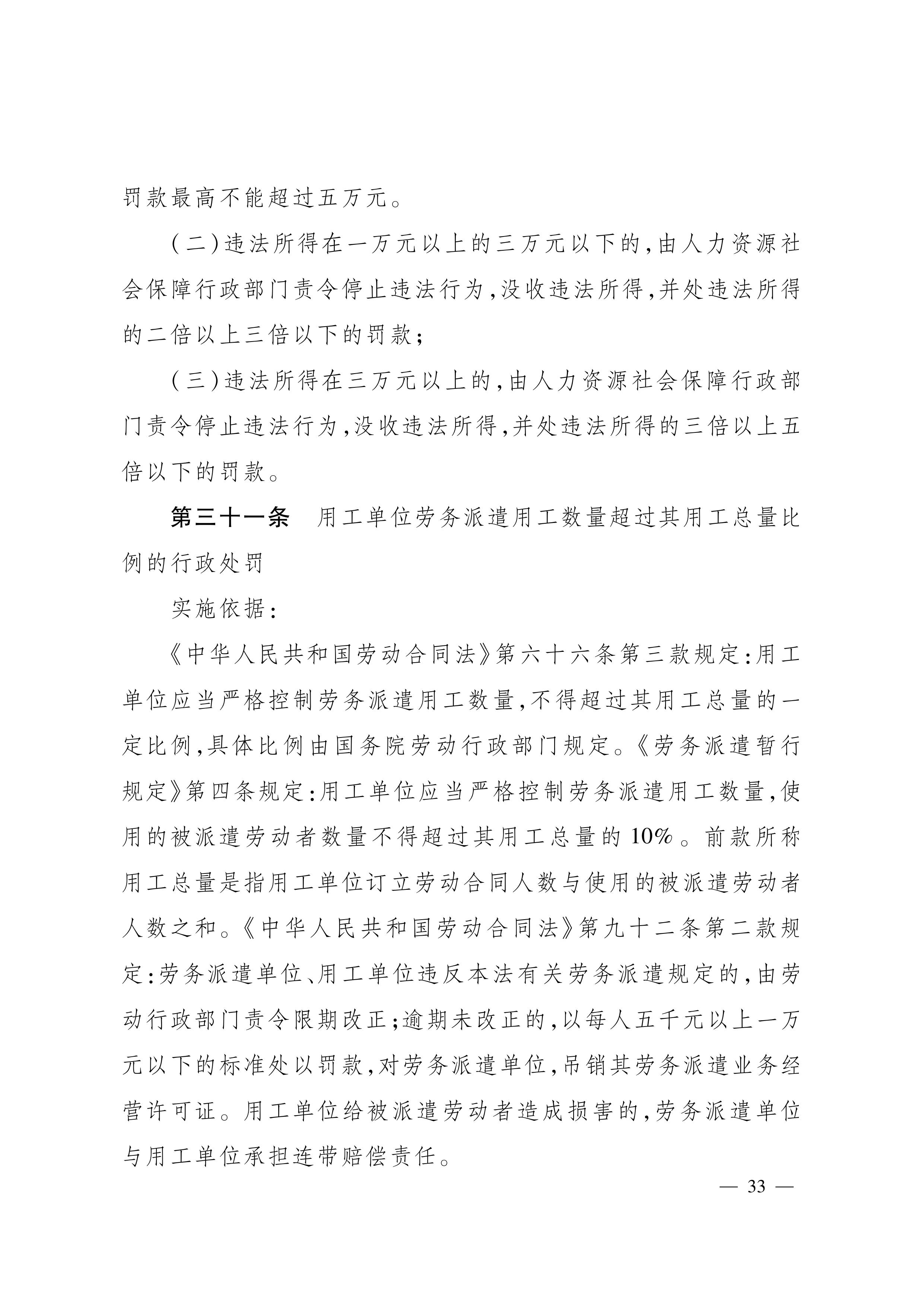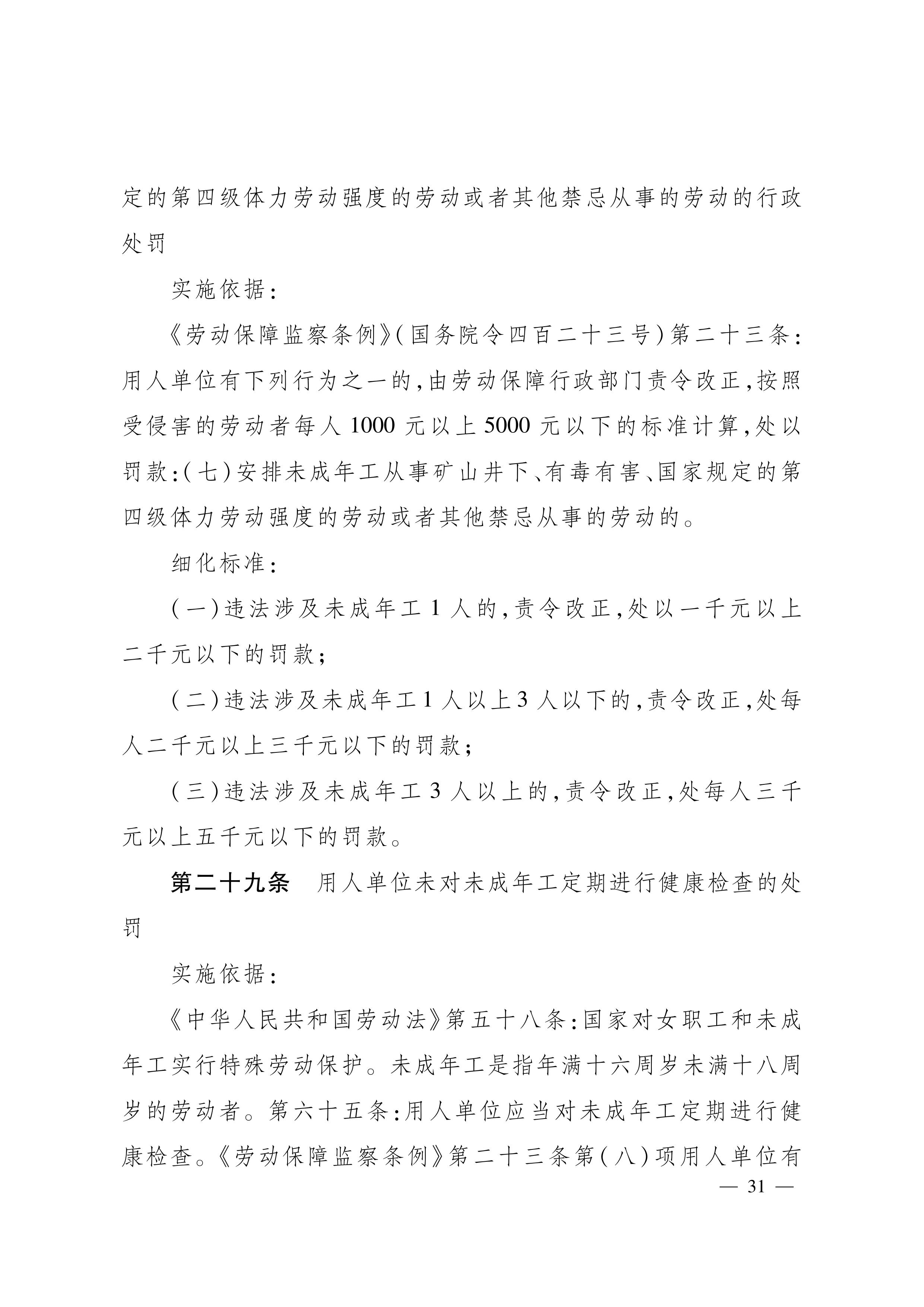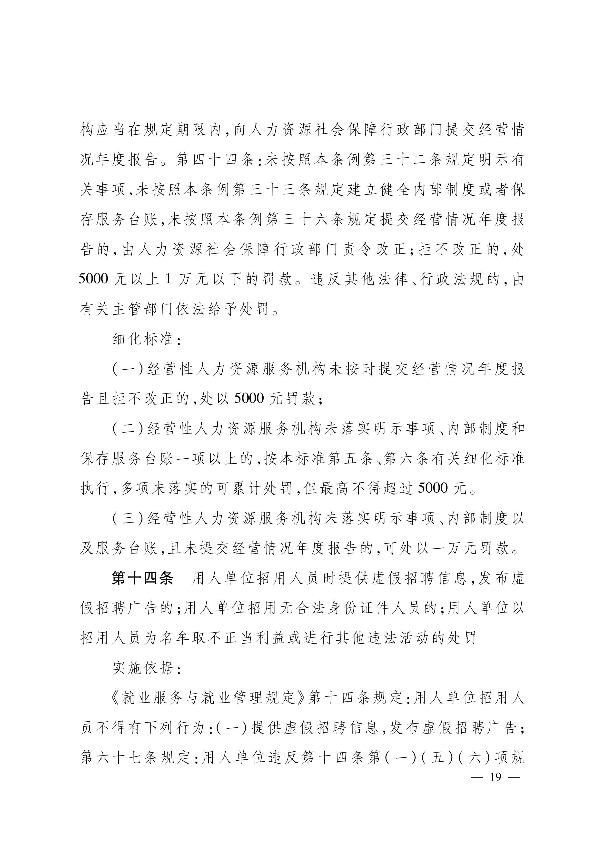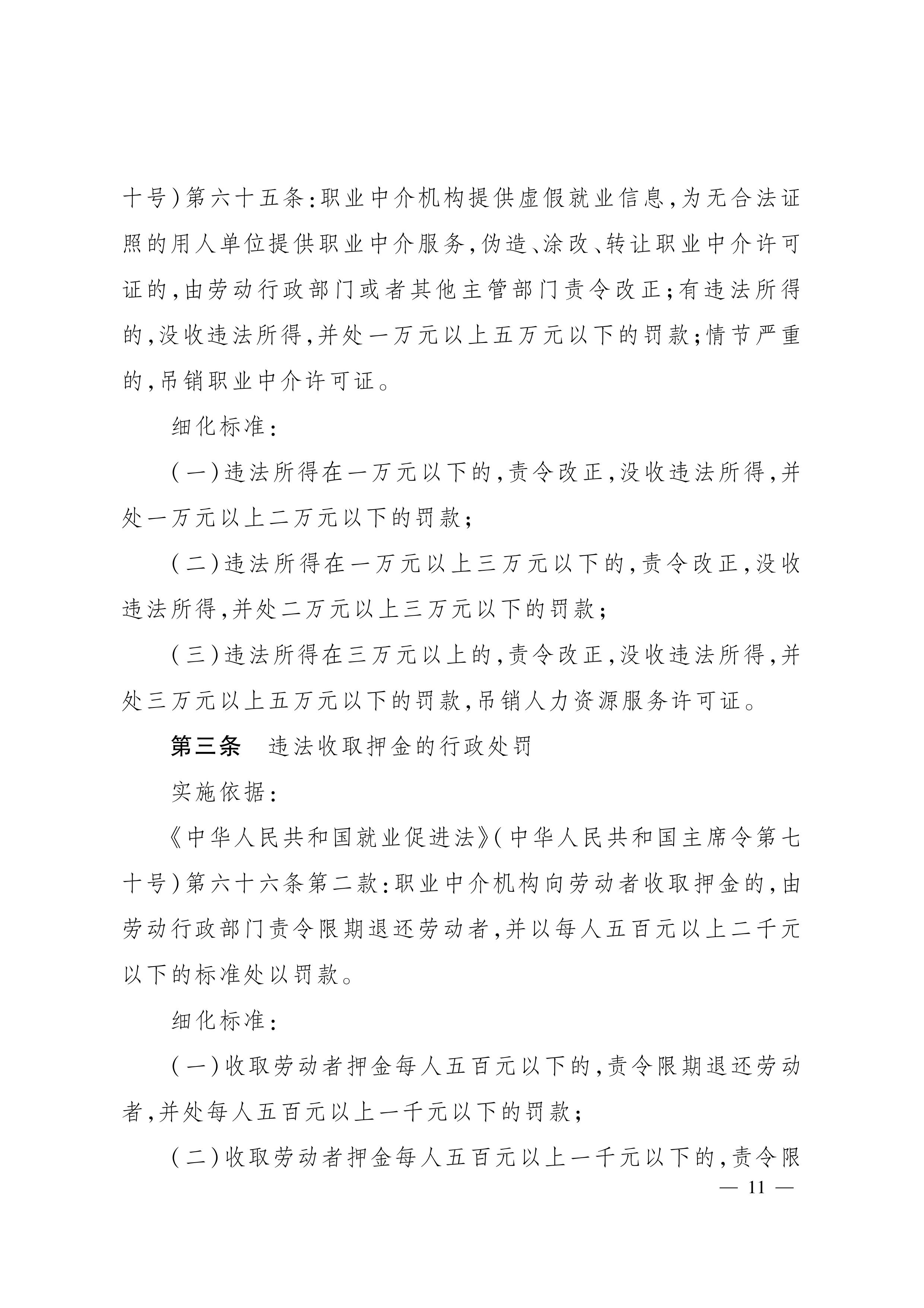 涞源县人力资源和社会保障局行政处罚自由裁量权适用规则