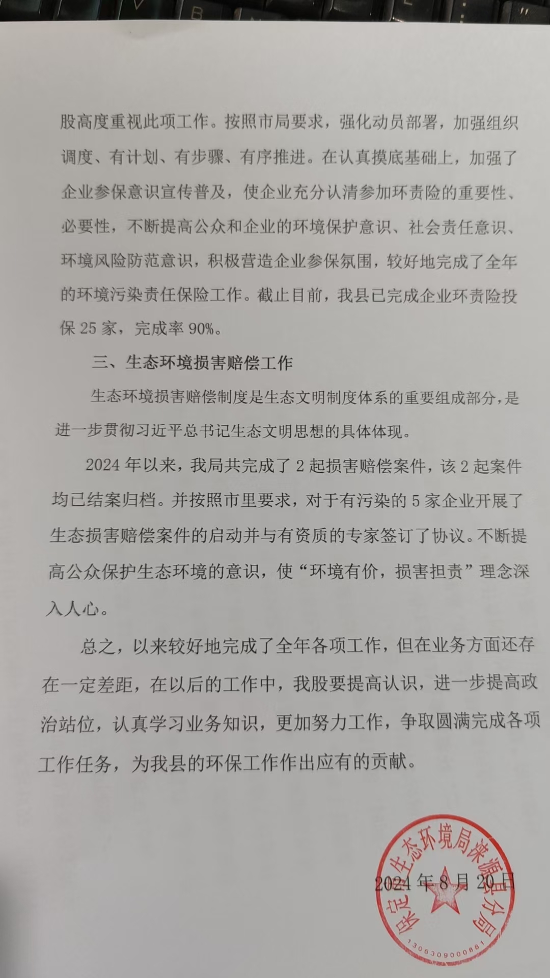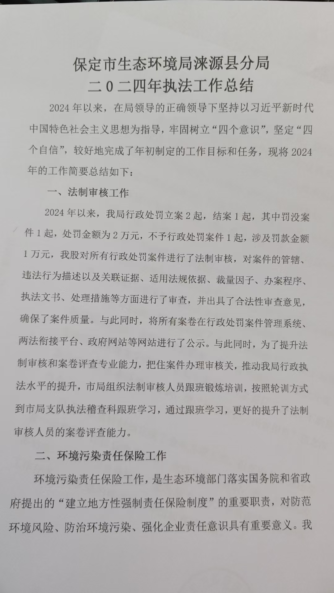 保定市生态环境局涞源县分局二0二四年执法工作总结