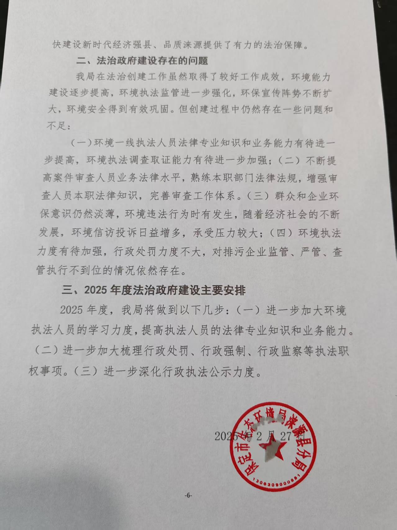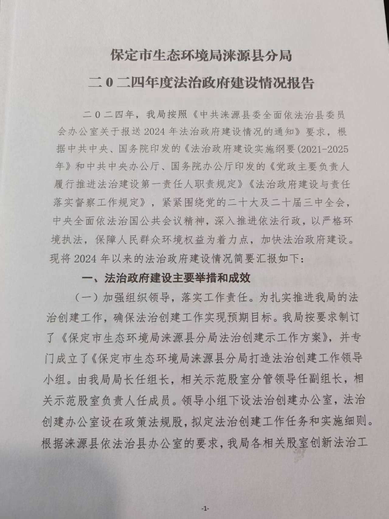 保定市生态环境局涞源县分局2024年度法治政府建设情况报告