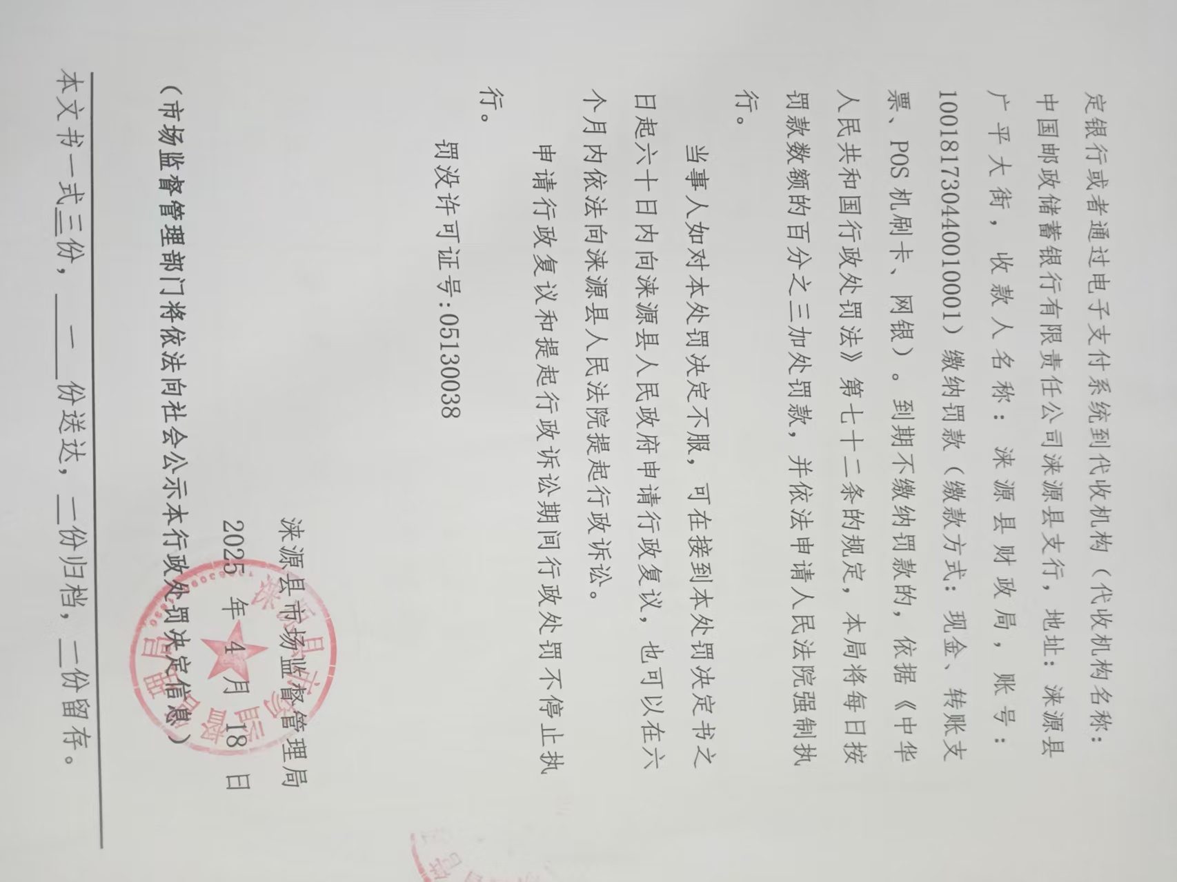 涞市监处罚〔2025〕24号 涞源县鹏启超市进货未按规定查验供货者许可证和合格证明文件及进货查验记录