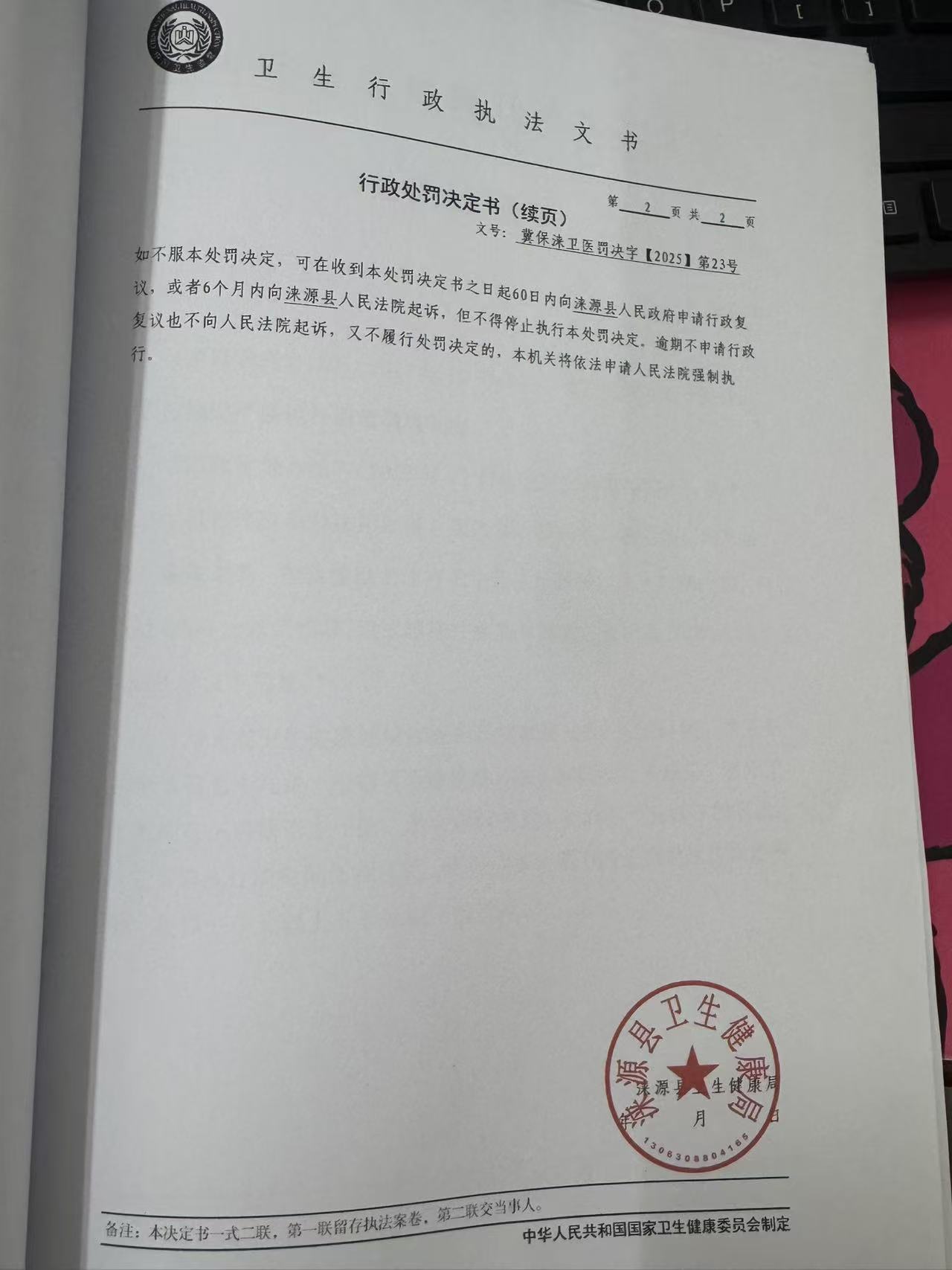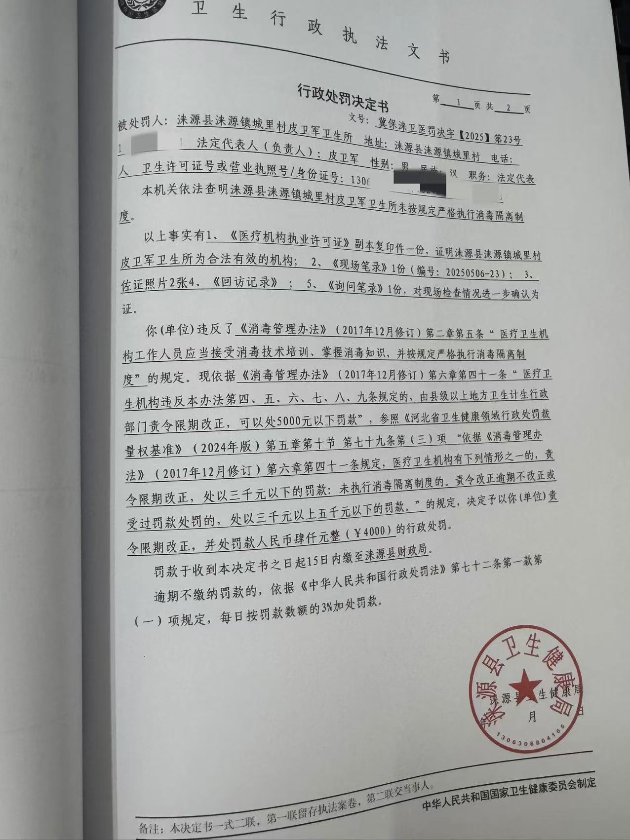 冀保涞卫医罚决字【2025】第23号涞源县城里村皮卫军卫生所违反《消毒管理办法》案