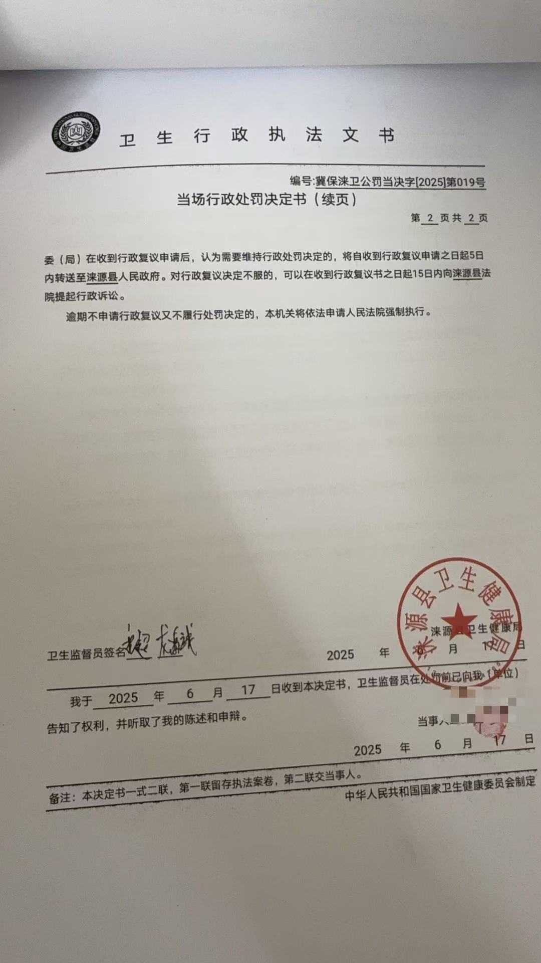 冀保涞卫公罚当决字【2025】第019号涞源县芸曼采耳店违反《公共场所卫生管理条例》案