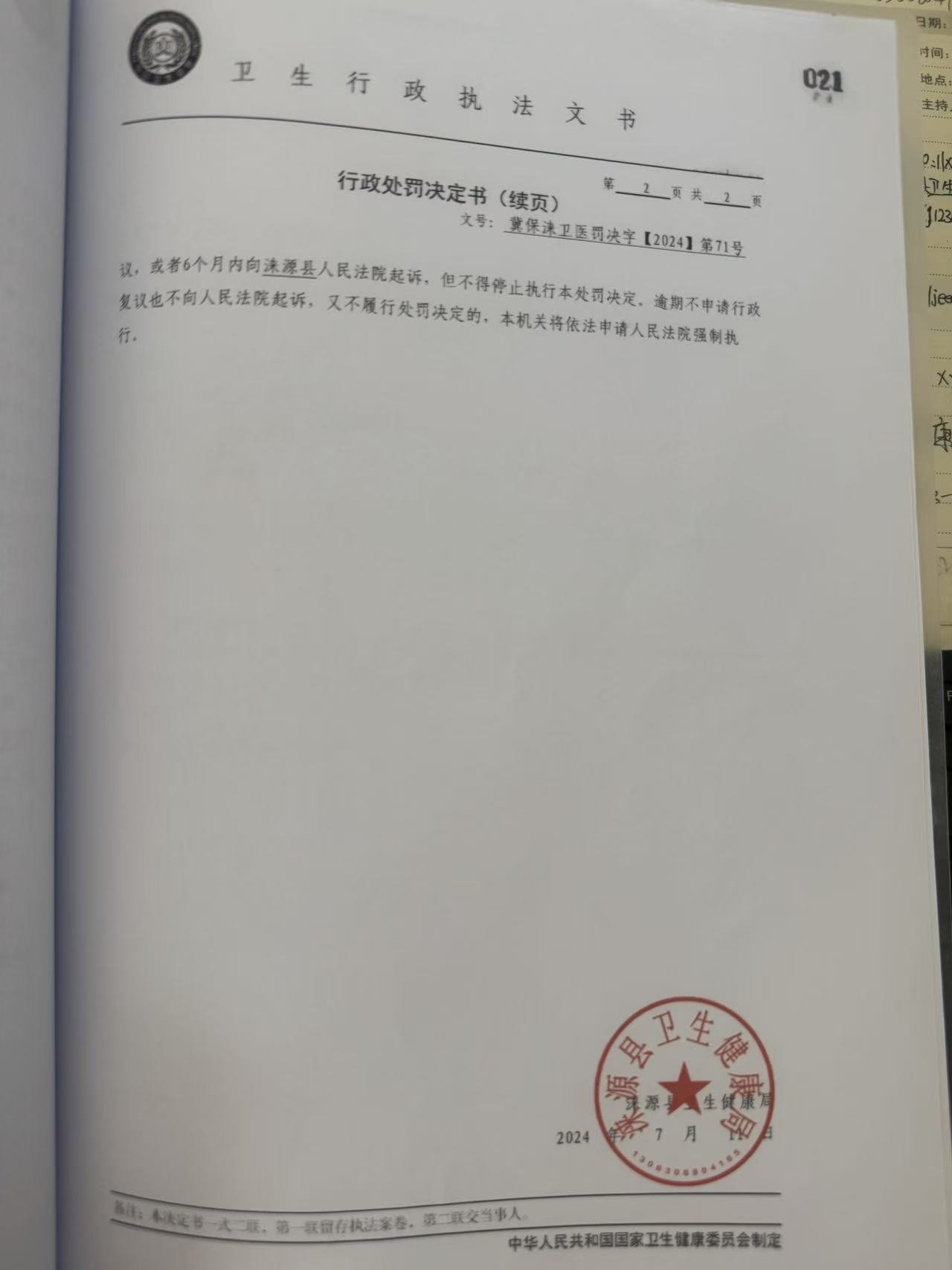 冀保涞卫医罚决字【2024】第71号涞源县中医院社区卫生服务中心违反《医疗废物管理条例》案