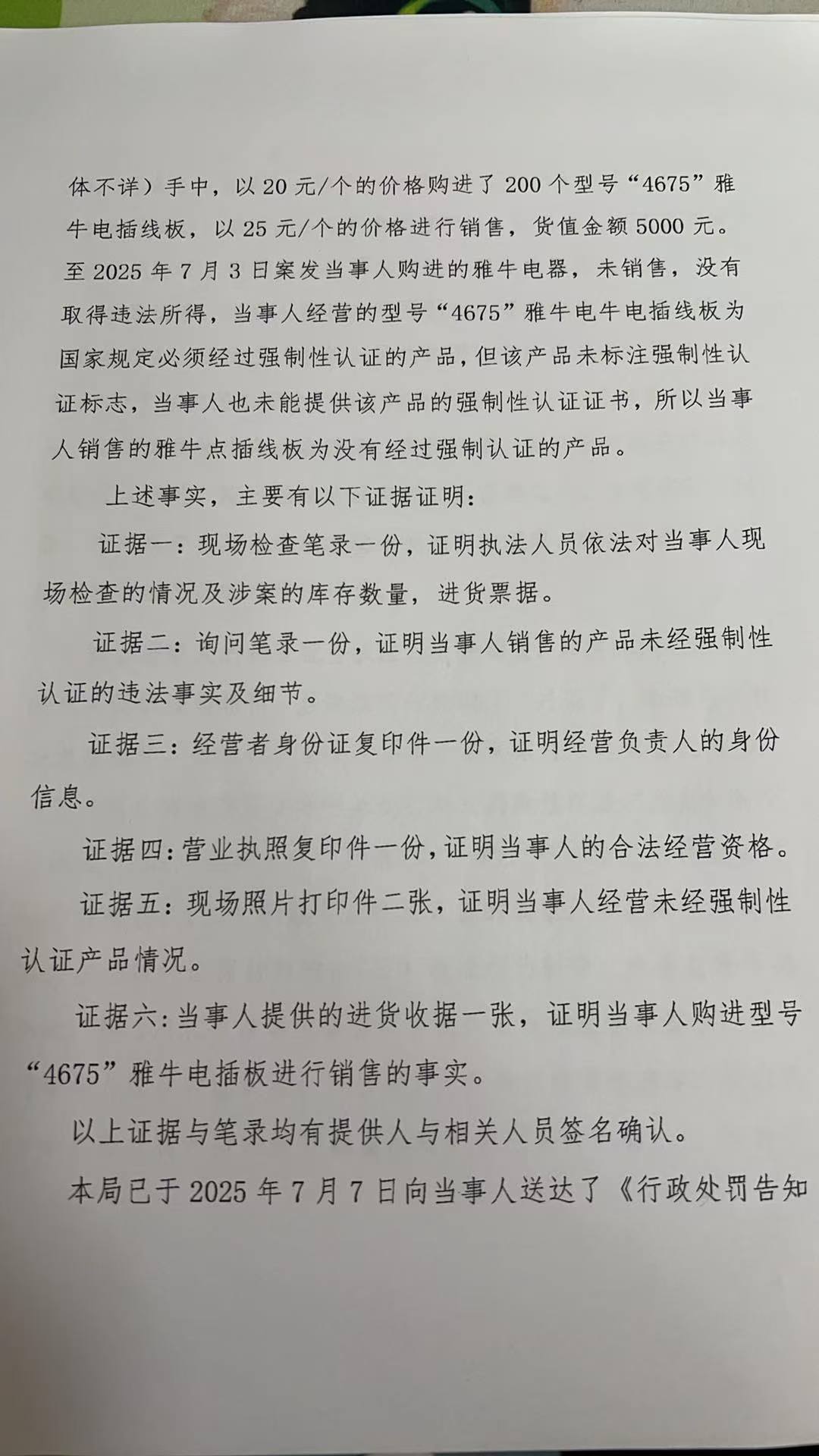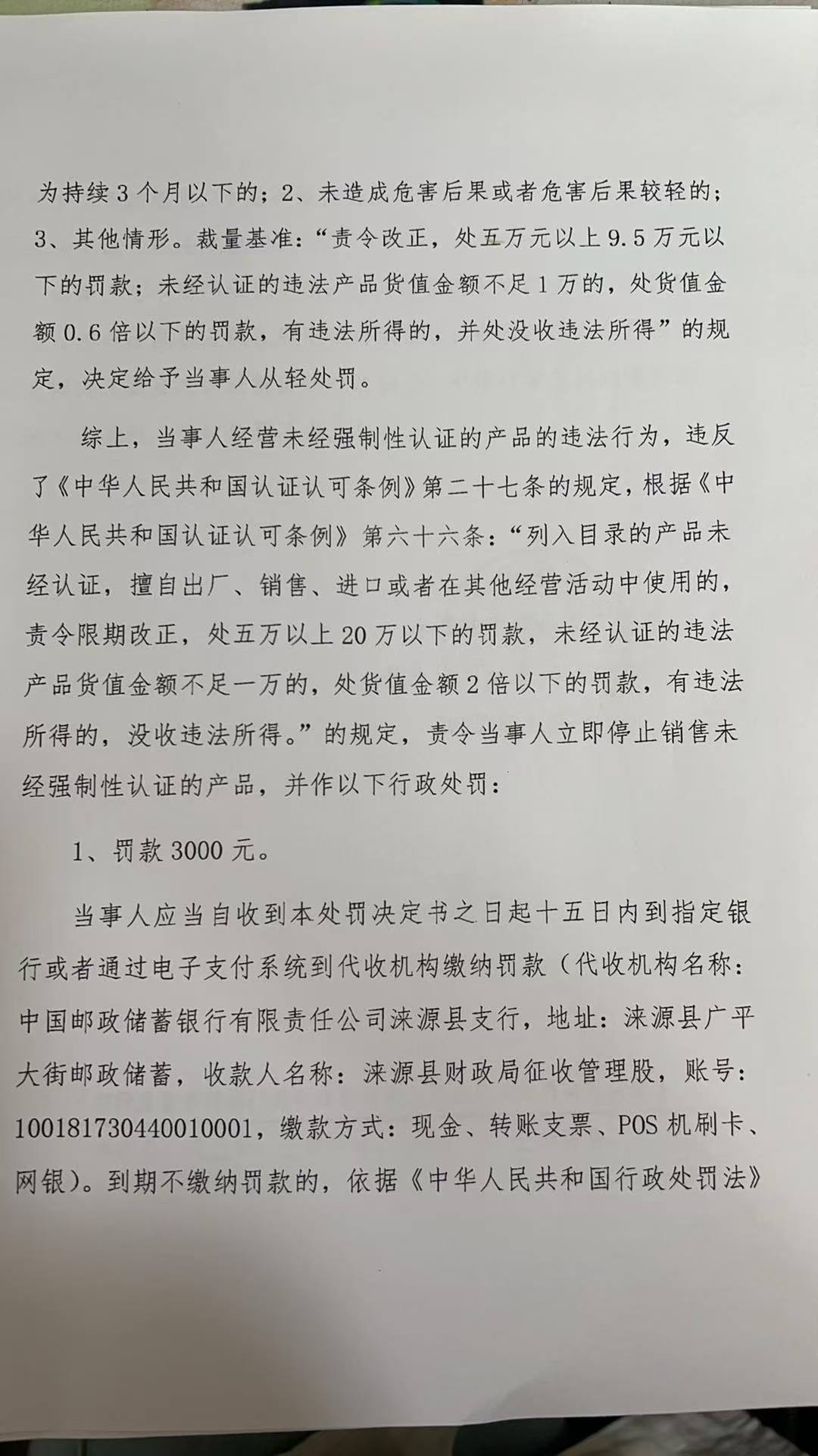 涞市监处罚〔2025〕100号涞源县夭意小商品店 涉嫌销售未经强制性认证的产品案