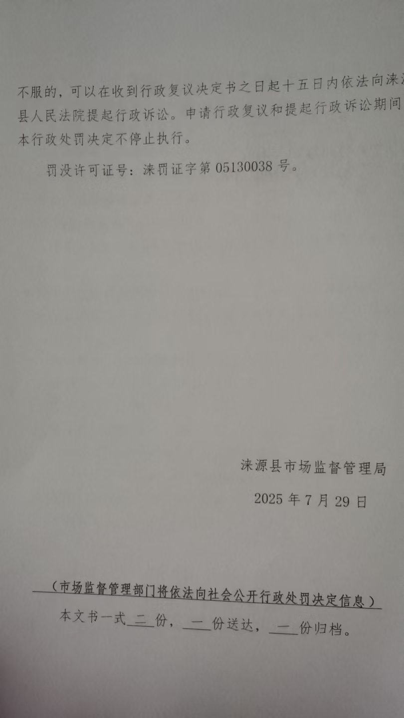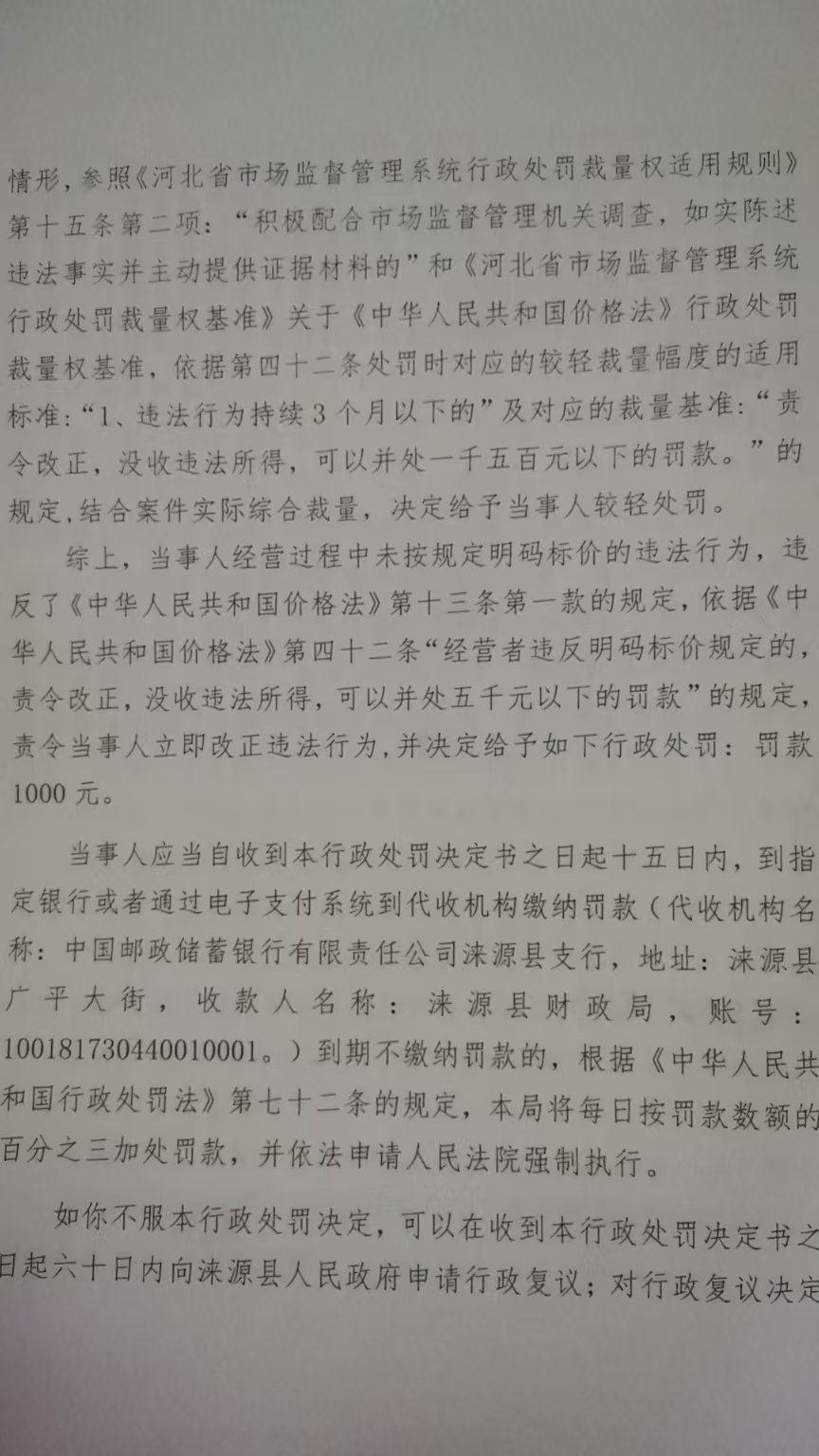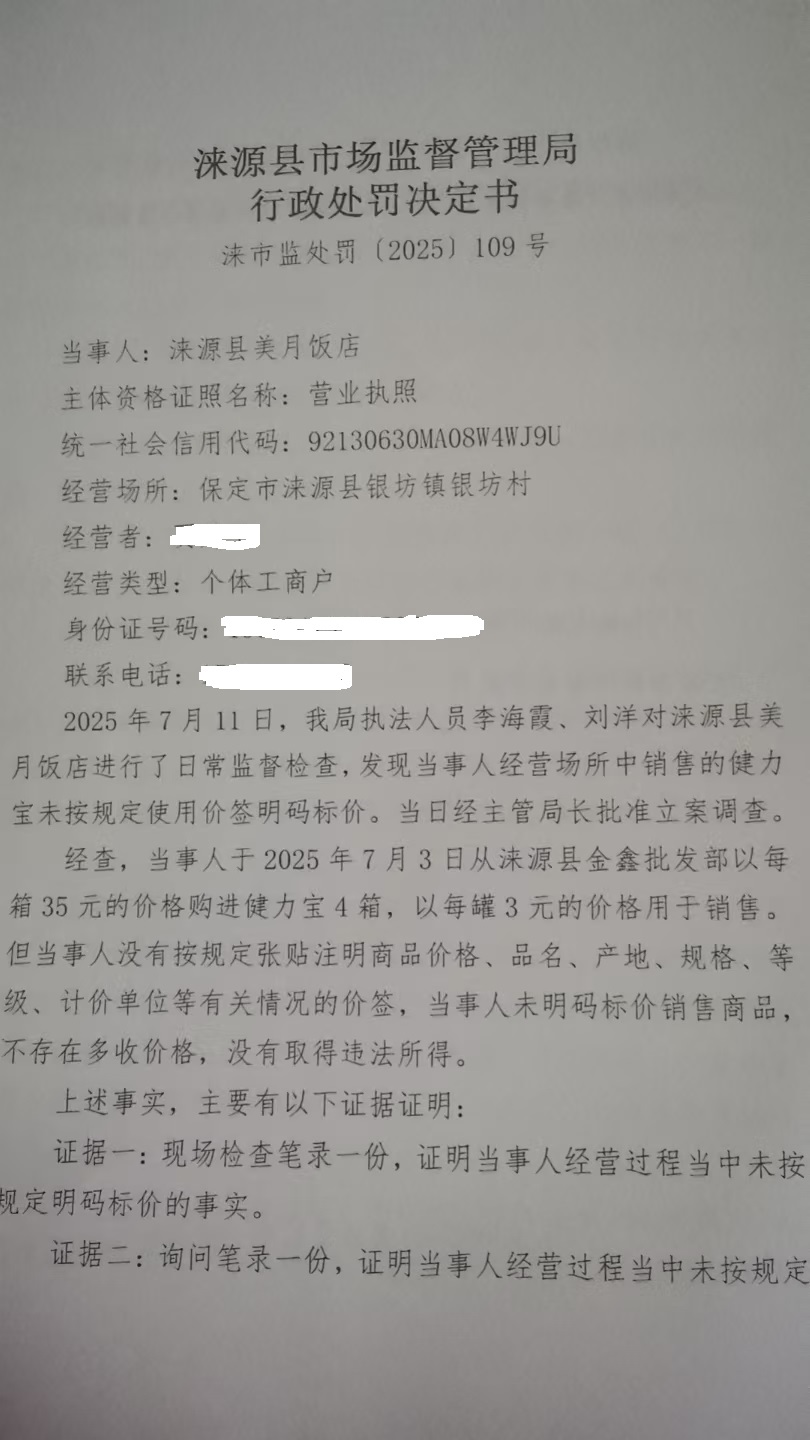 涞市监处罚〔2025〕 109号涞源县美月饭店未按规定明码标价案