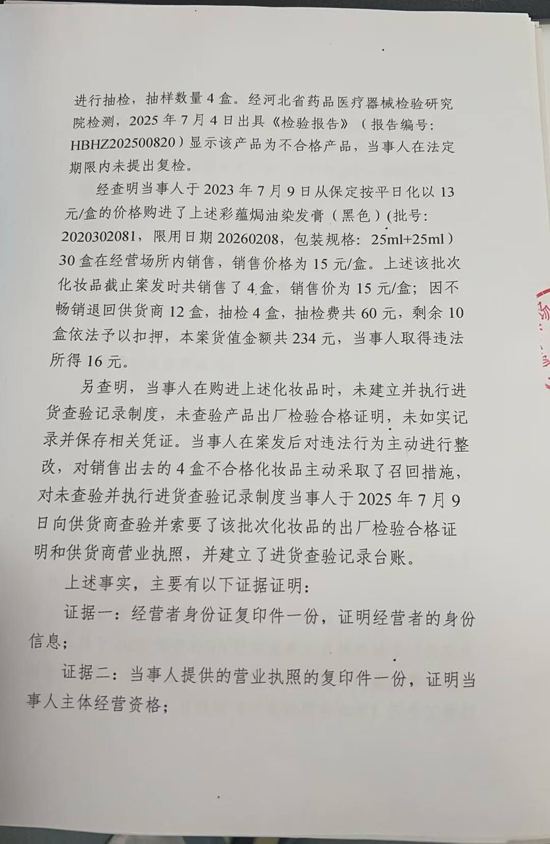 涞源县艾初色日化店涉嫌经营不合格化妆品和未按规定建立进货查验制度案
