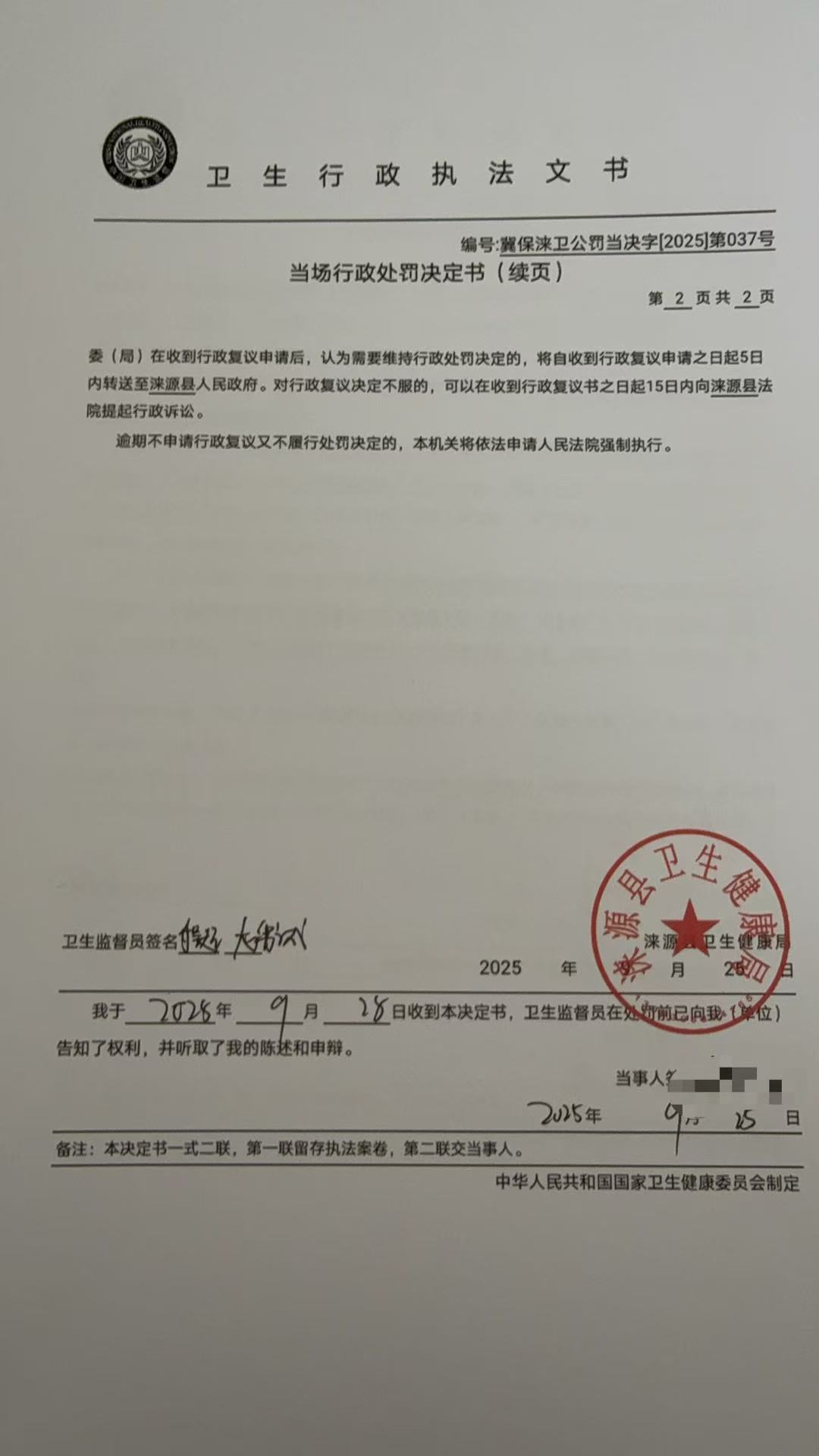 冀保涞卫公罚当决字【2025】第037号涞源县依美美容中心违反《公共场所卫生管理条例》案