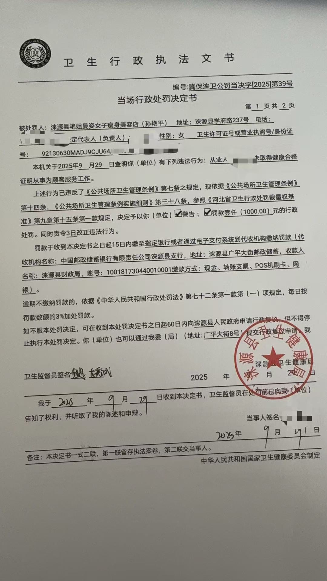 对涞源县艳姐曼姿女子瘦身美容店的行政处罚 (2).jpg