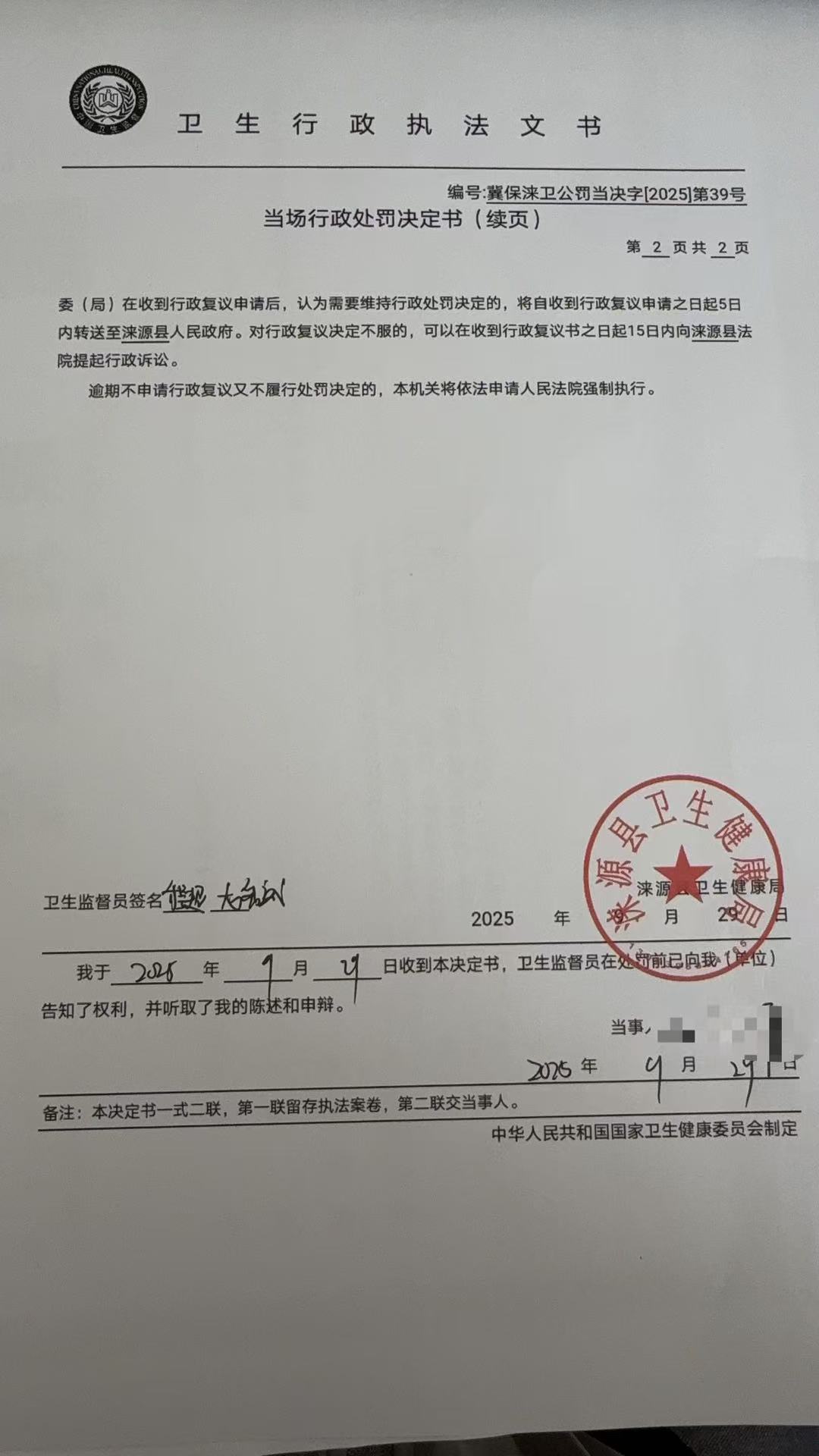 冀保涞卫公罚当决字【2025】第039号涞源县艳姐曼姿女子瘦身美容店违反《公共场所卫生管理条例》案