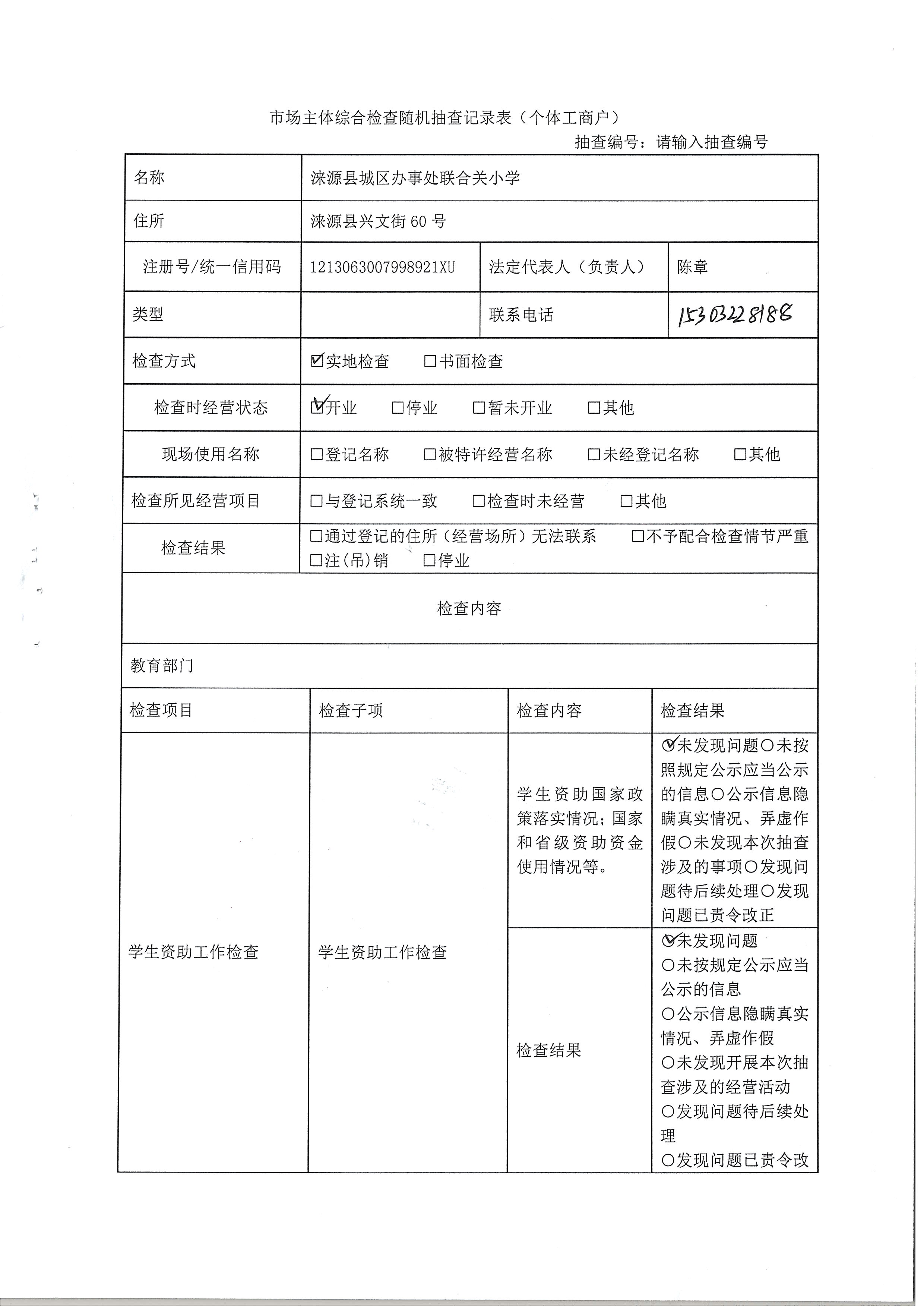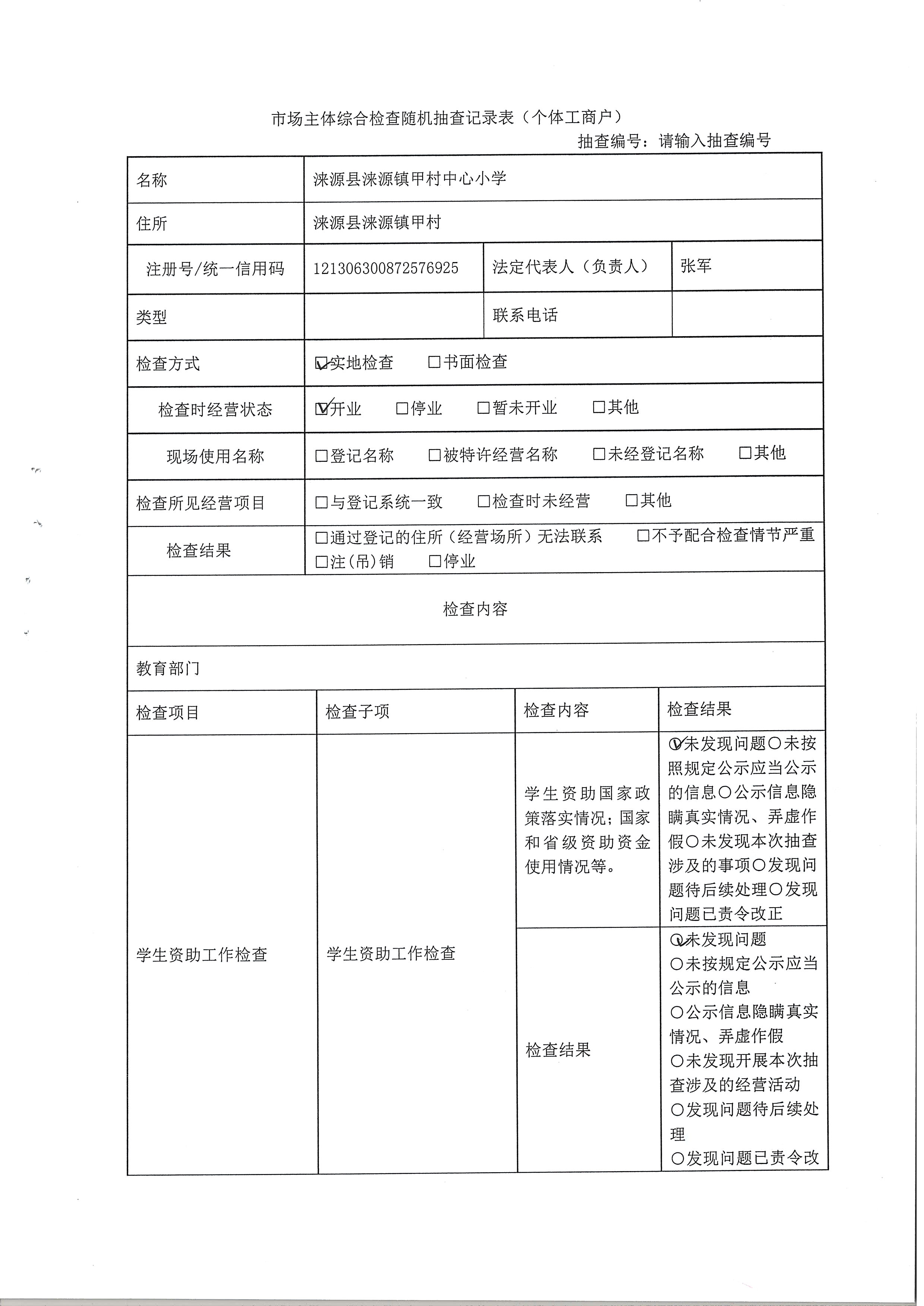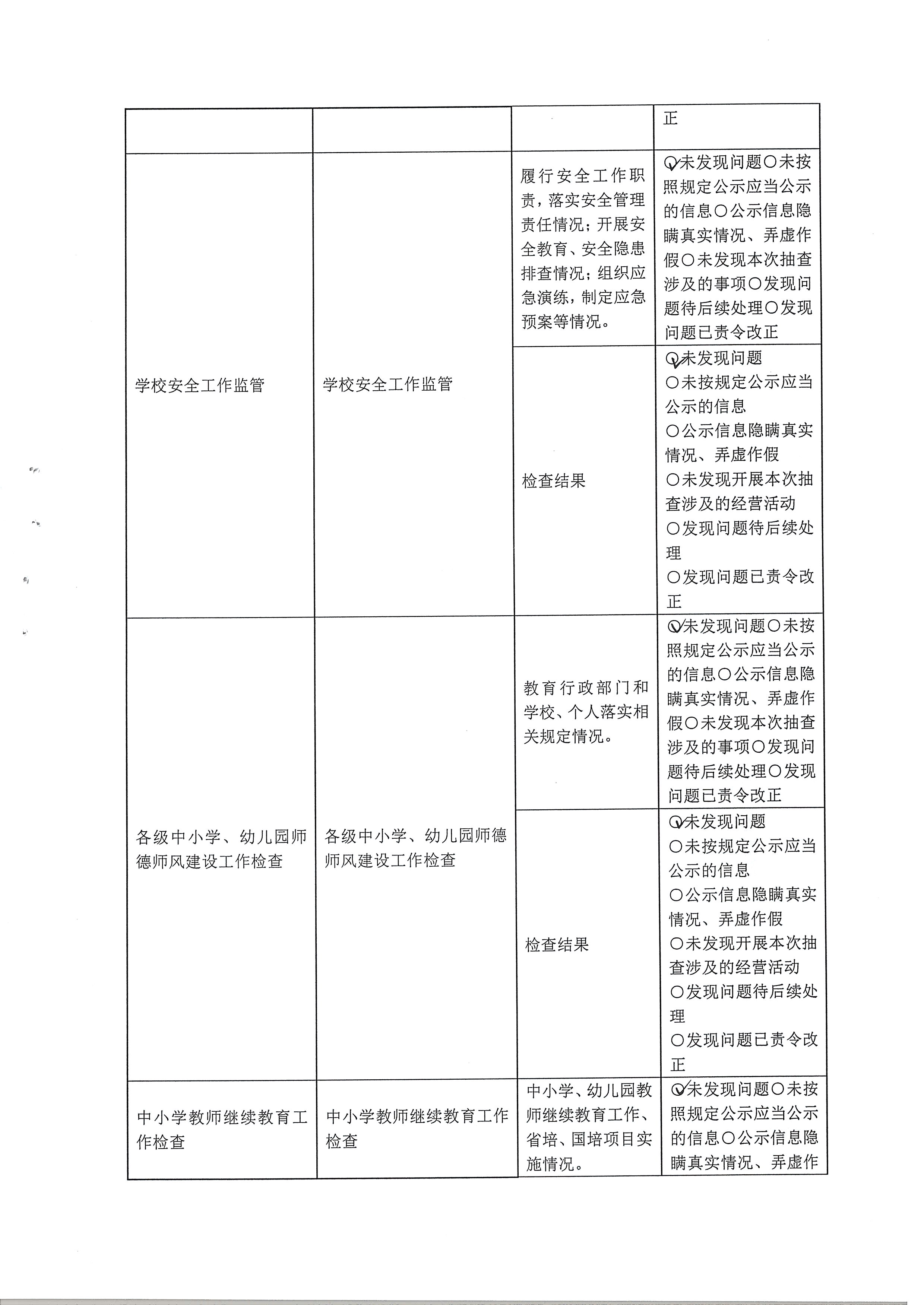 涞源县教育和体育局2022内部联合“双随机、一公开”检查结果公示