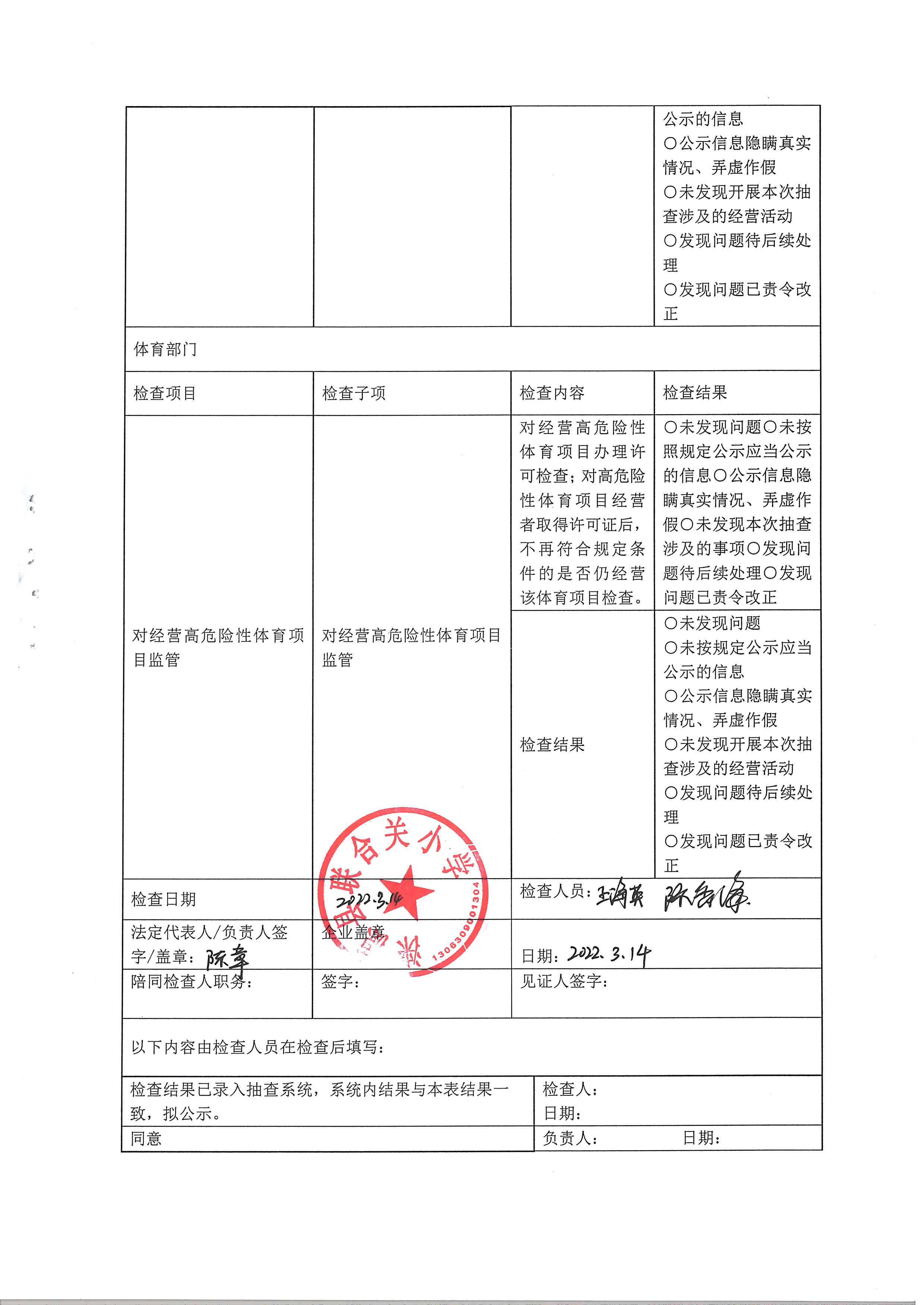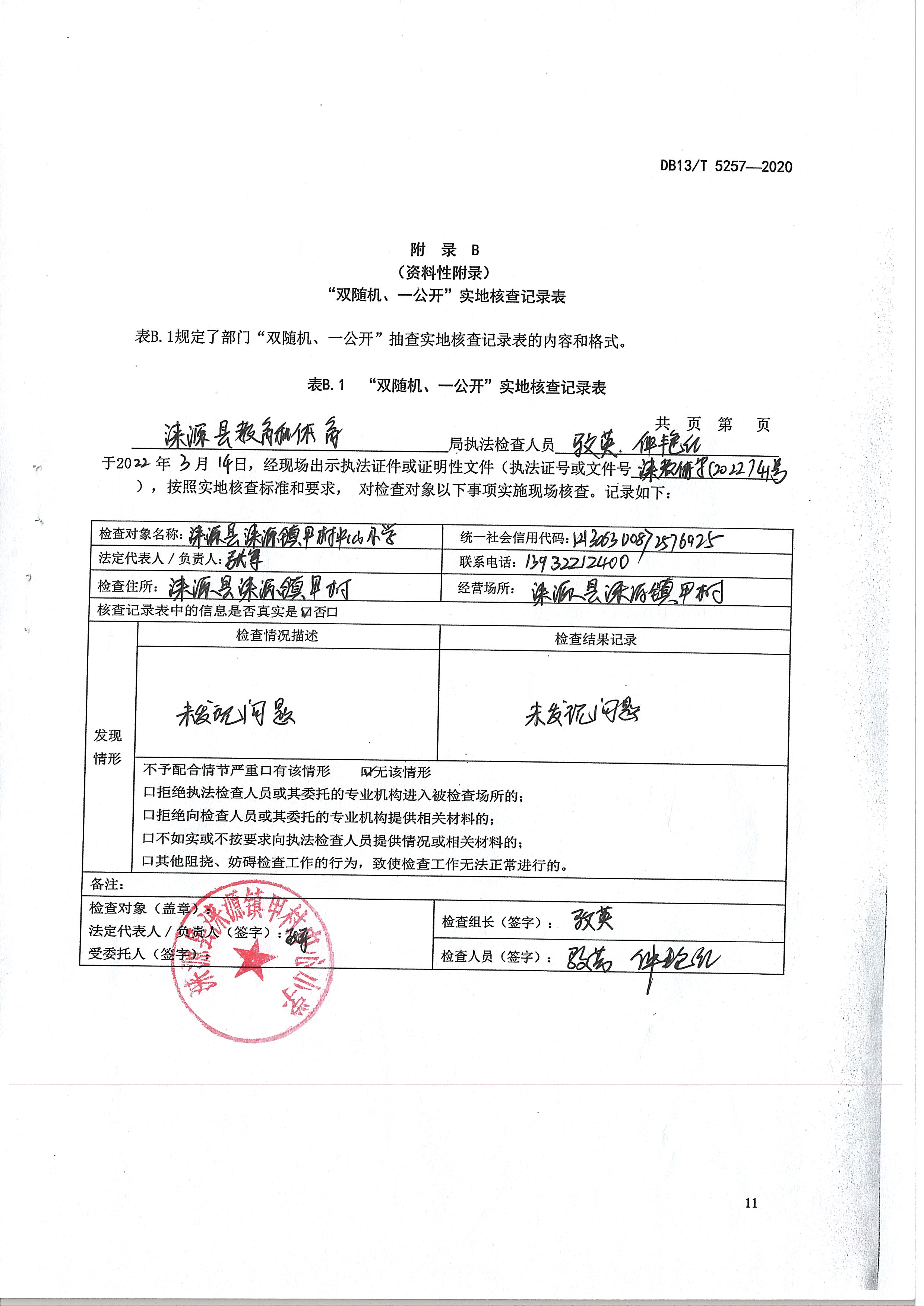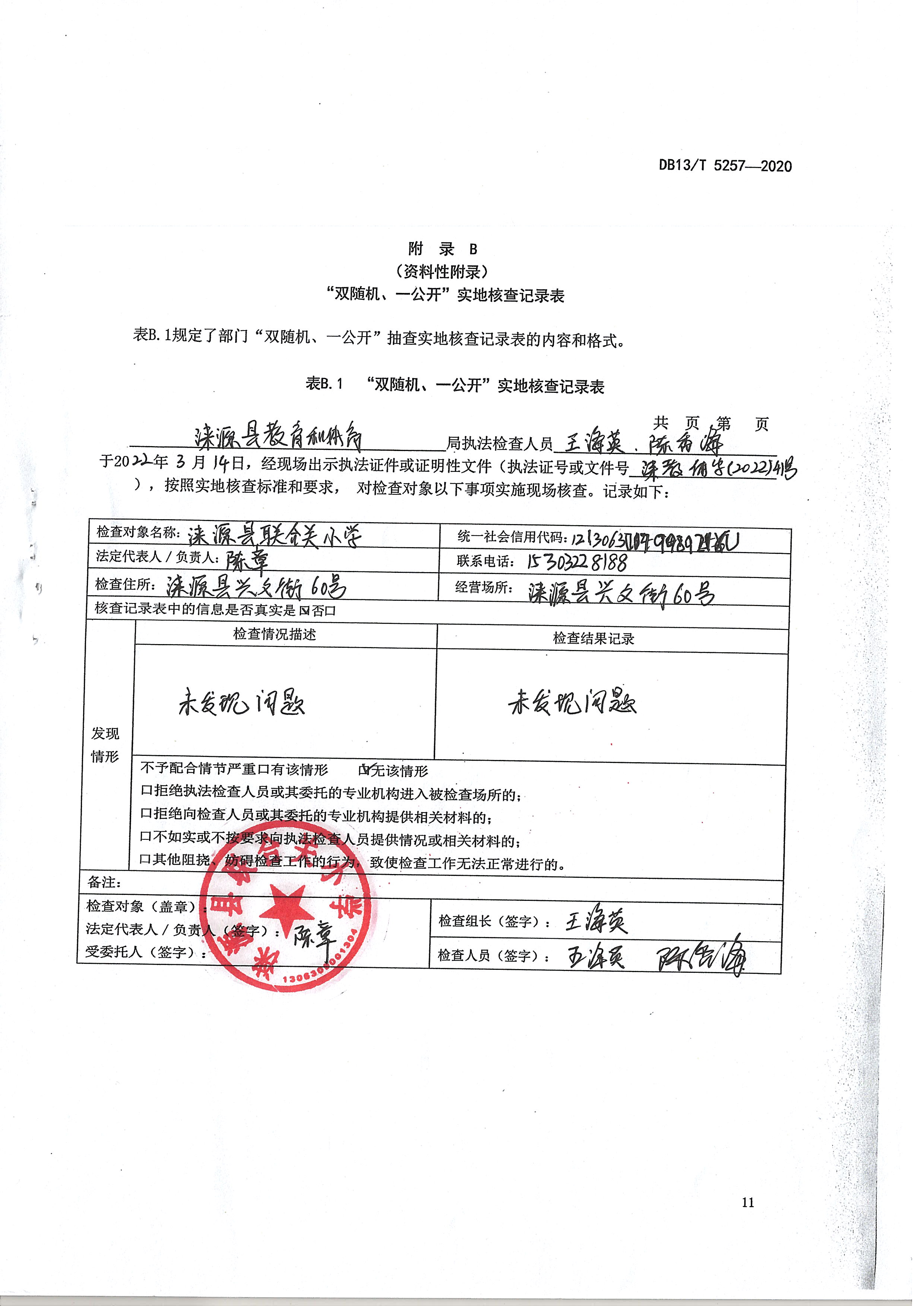 涞源县教育和体育局2022内部联合“双随机、一公开”检查结果公示