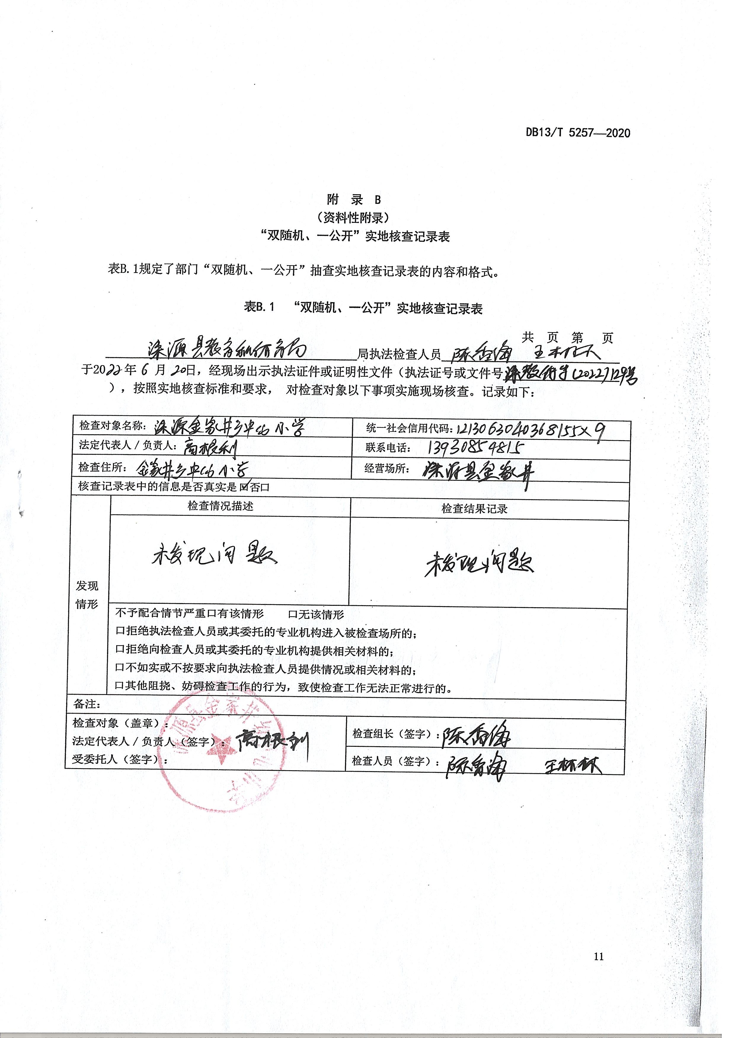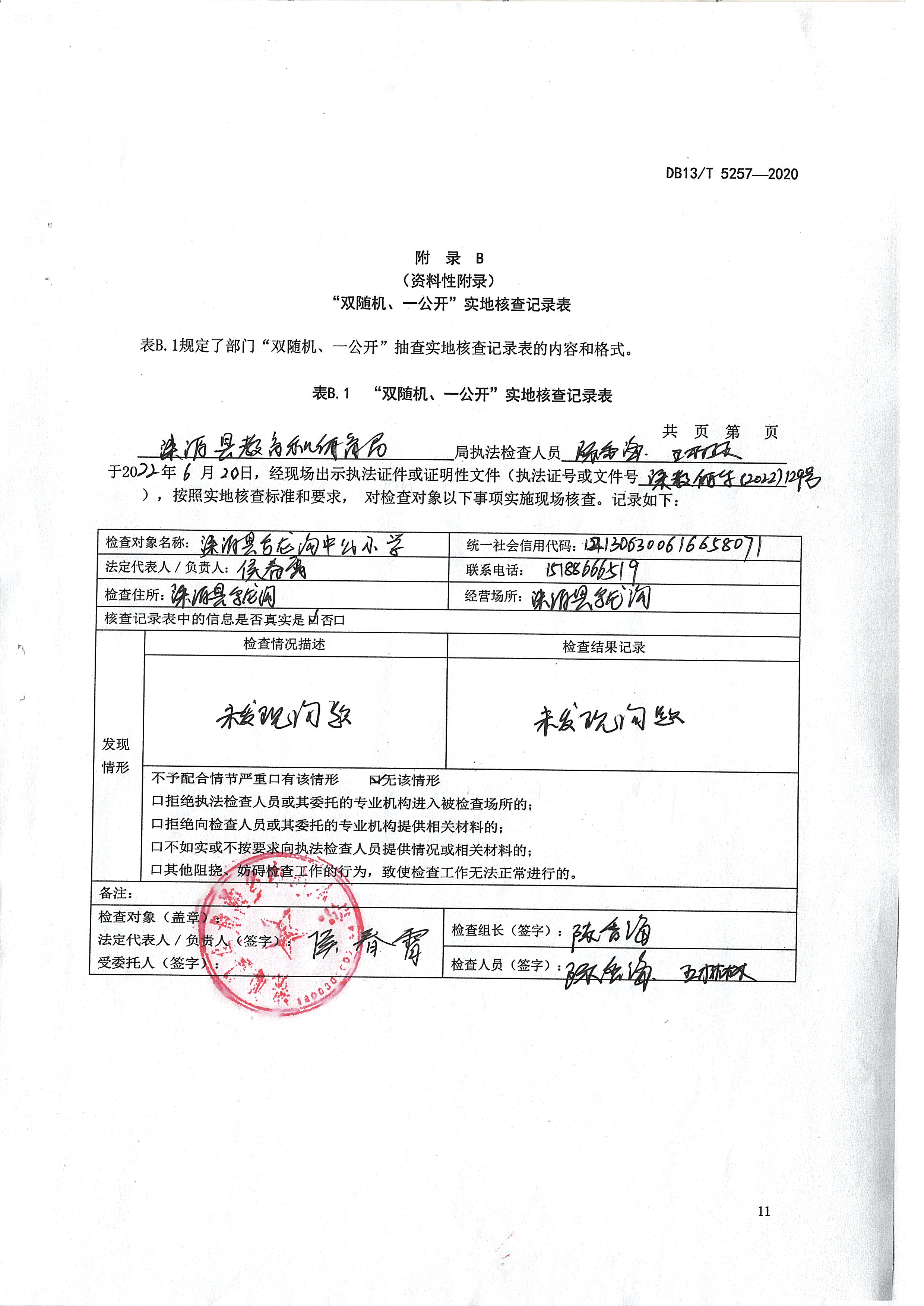 涞源县教育和体育局2022跨部门“双随机、一公开”检查结果公示