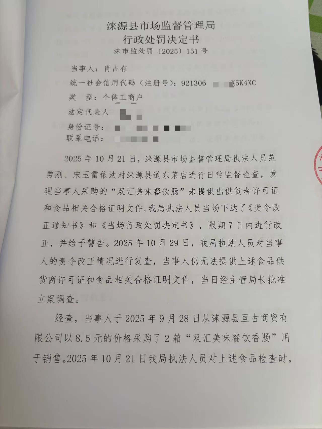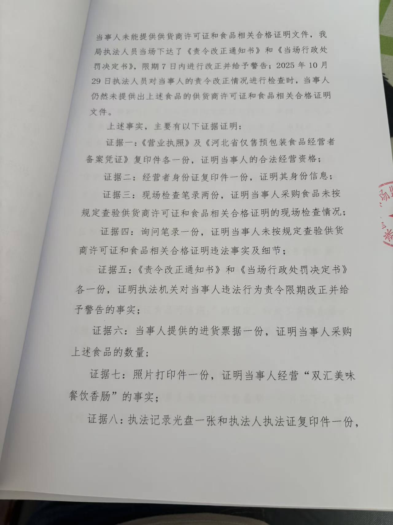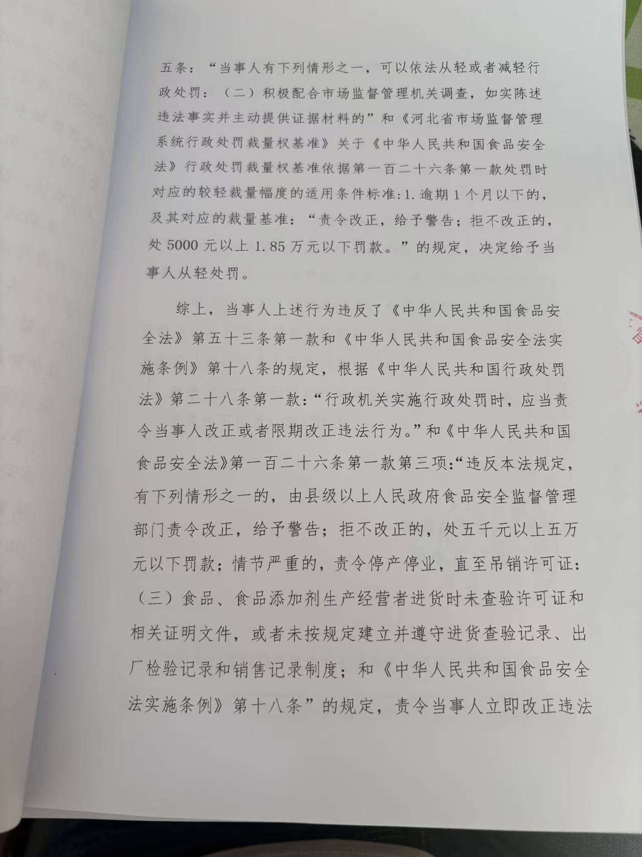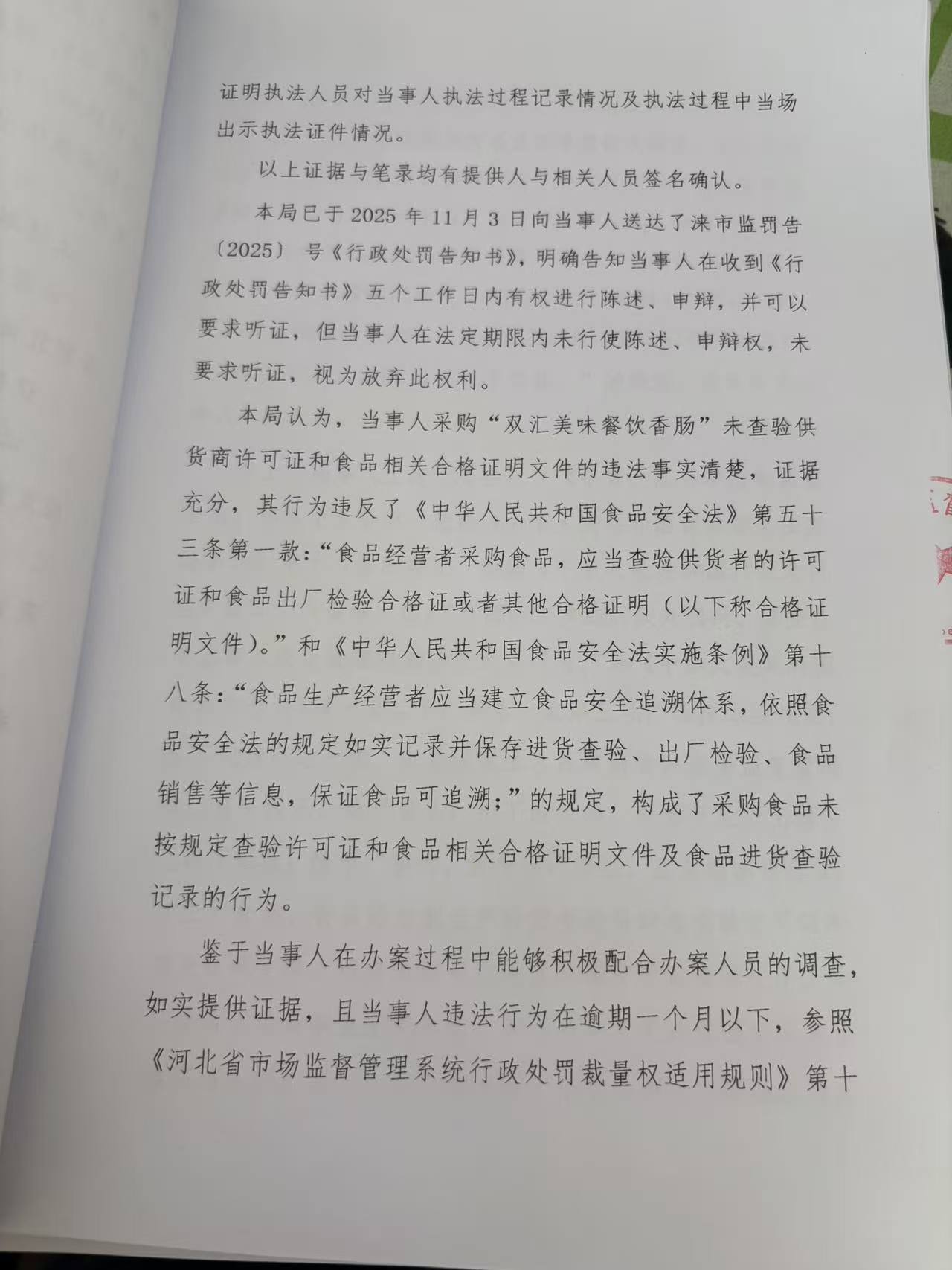 涞源县姐妹超市采购食品未按规定查验许可证和相关合格证明文件