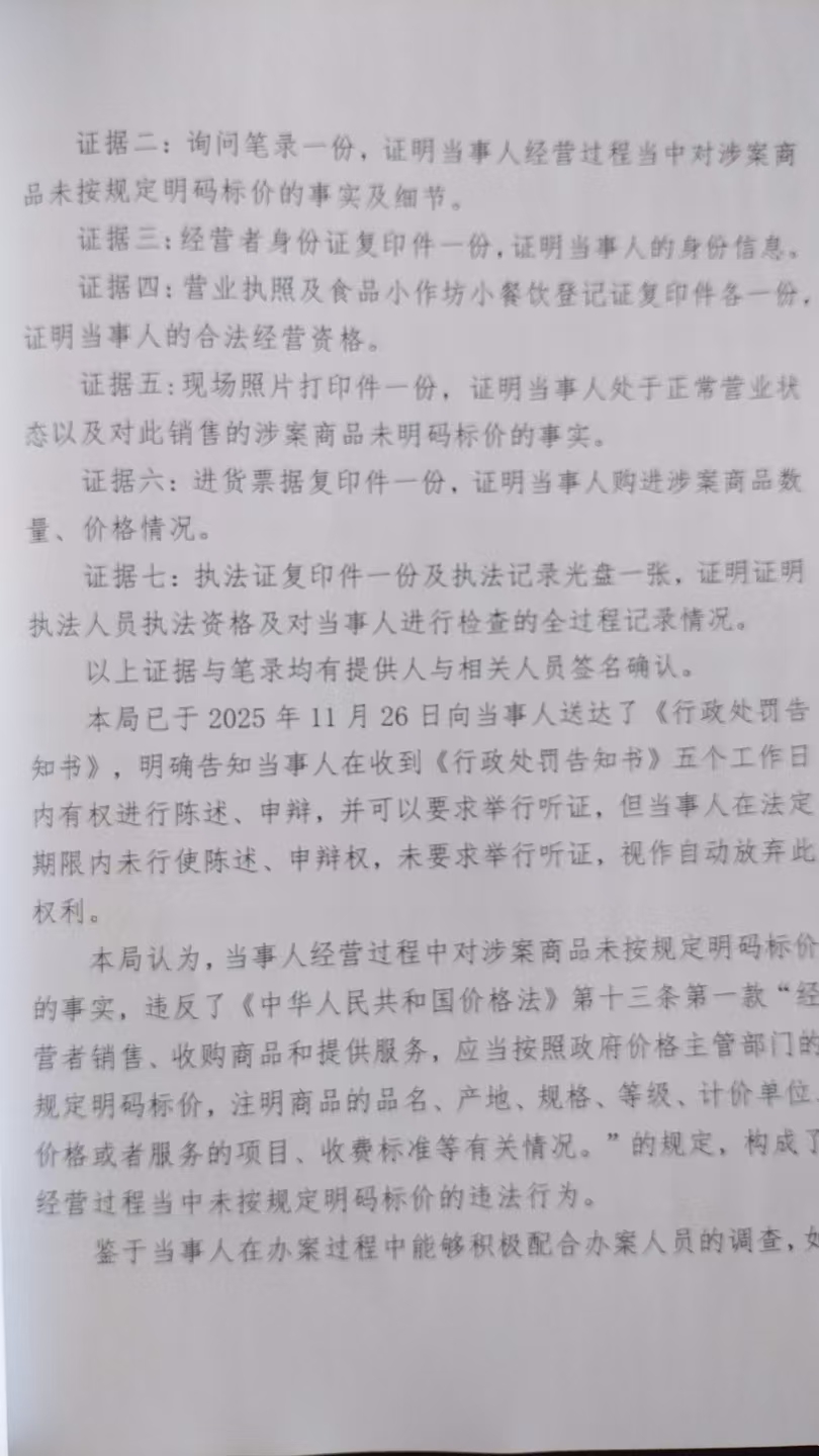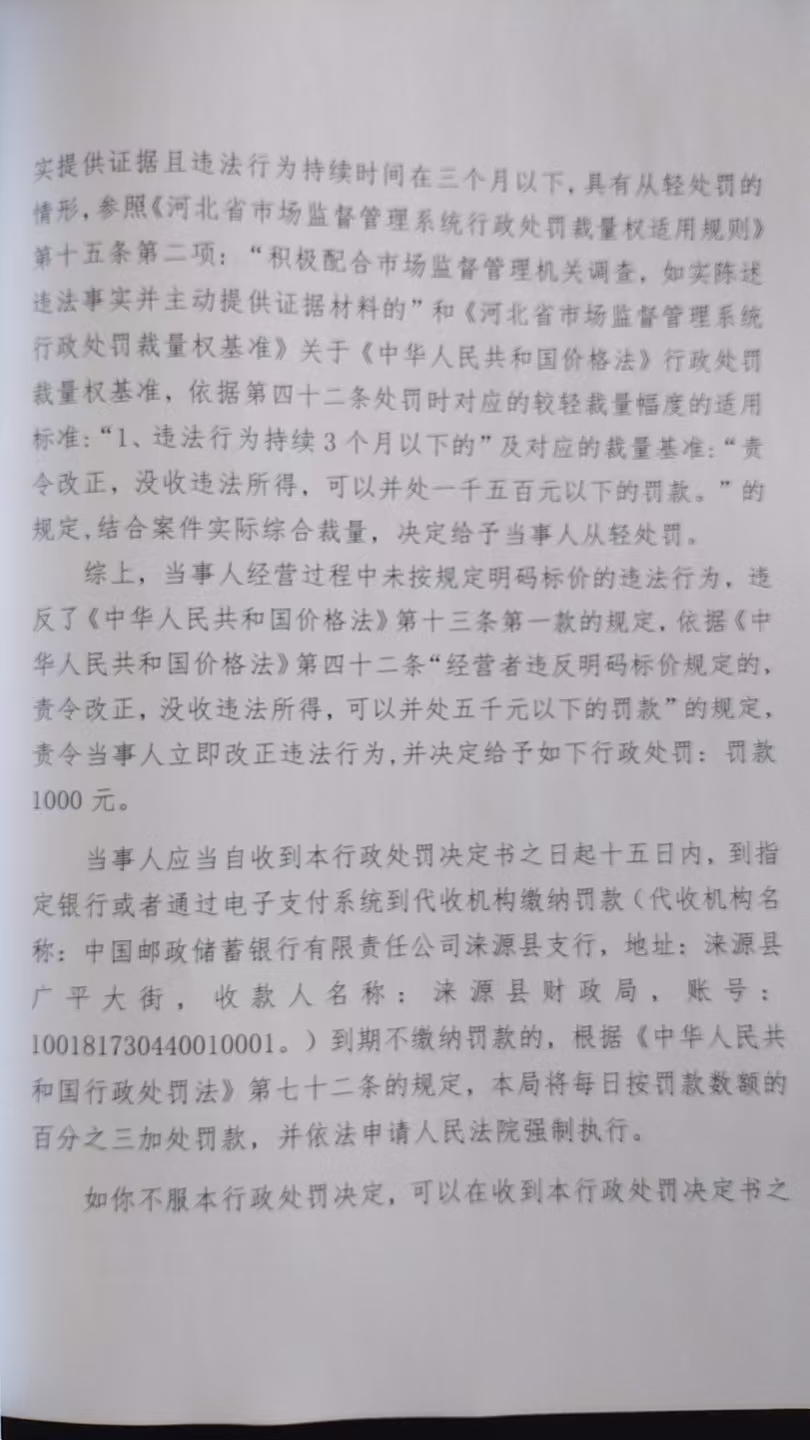 涞市监处罚〔2025〕172号涞源县艳坤小吃店销售商品未按规定明码标价案