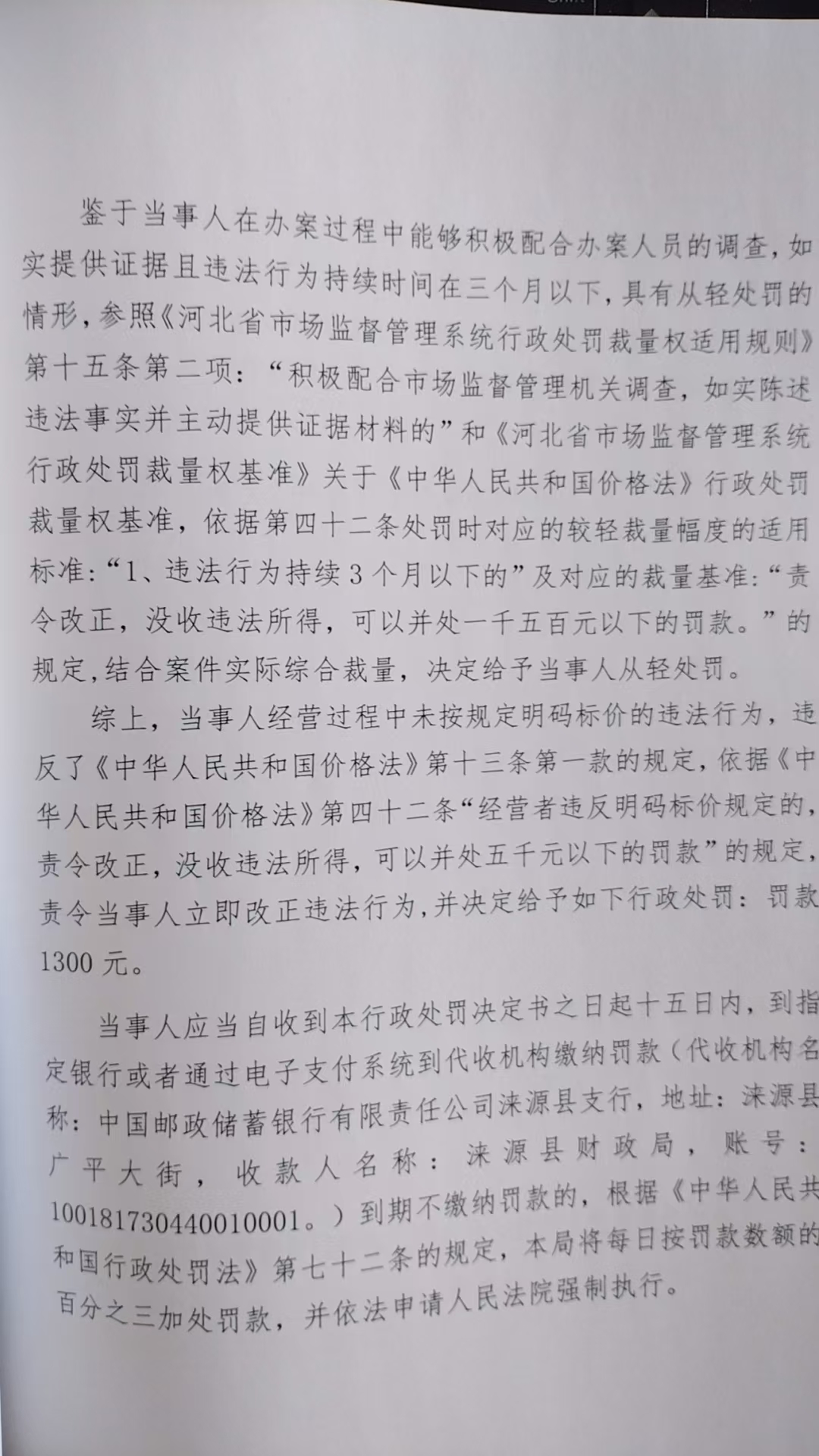 涞市监处罚〔2025〕173号涞源县王领弟肉类销售摊销售商品未按规定明码标价案