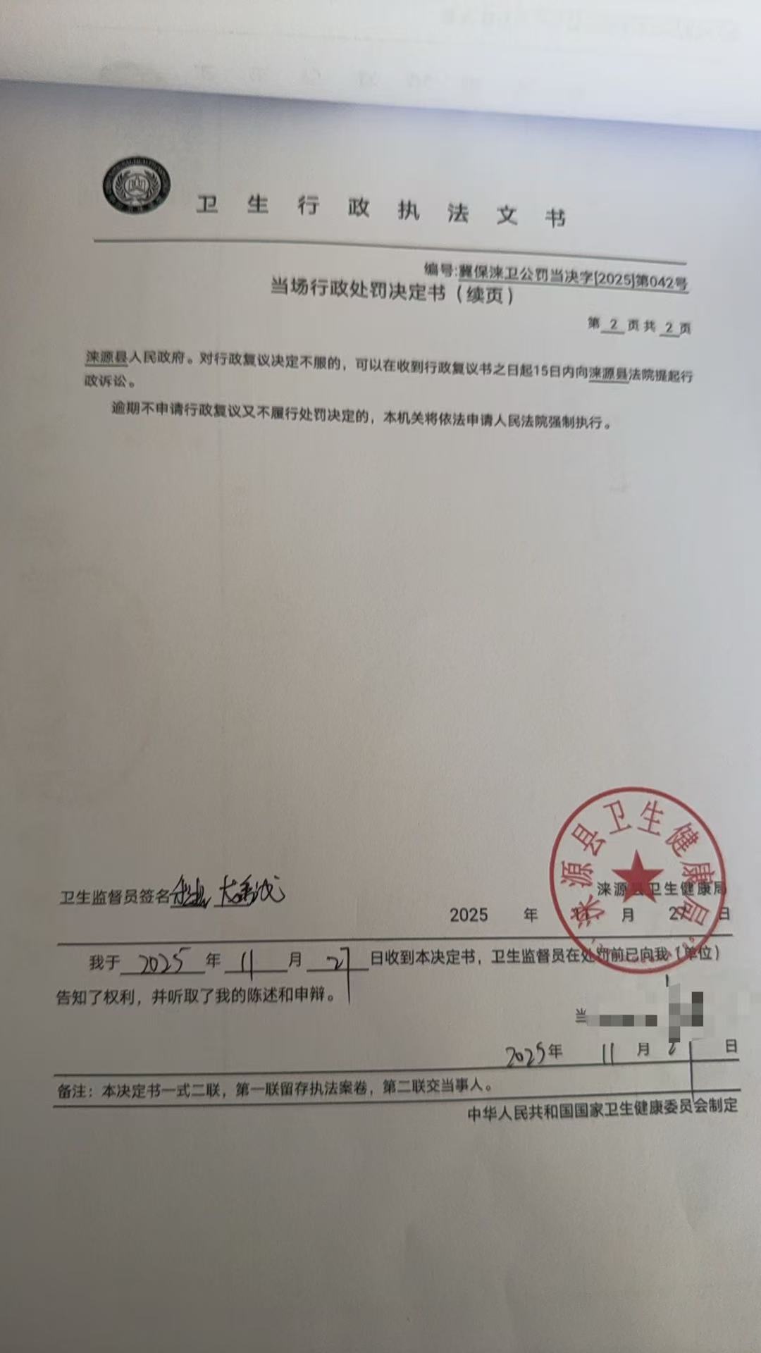 冀保涞卫公罚当决字【2025】第042号涞源艾初色日化店违反《公共场所卫生管理条例》案
