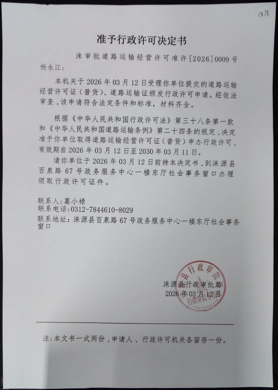 关于杨永江道路运输经营许可证(普货)、道路运输证的公示