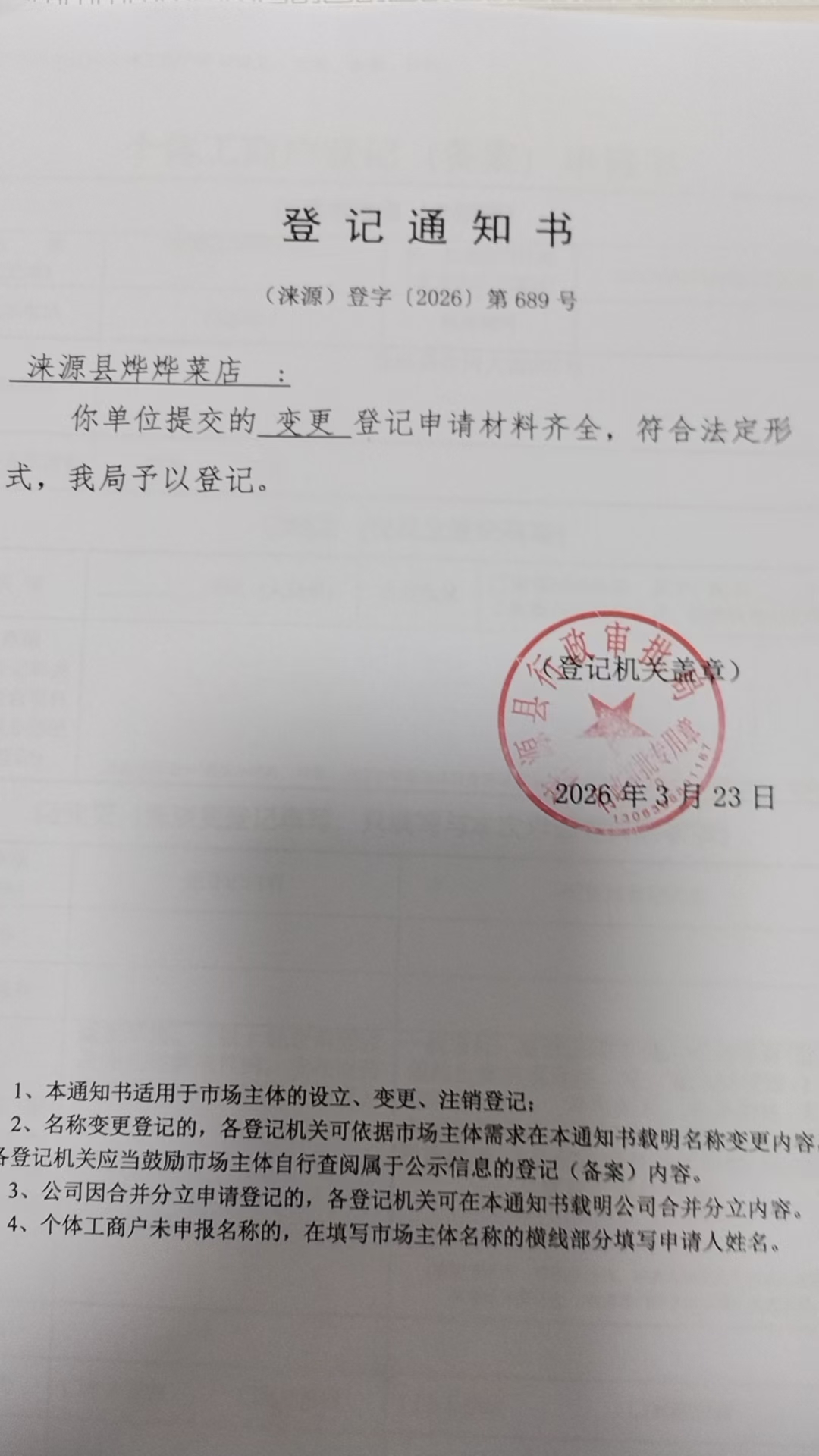 关于涞源县烨烨菜店变更的公示