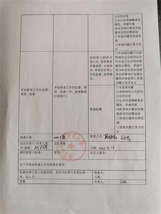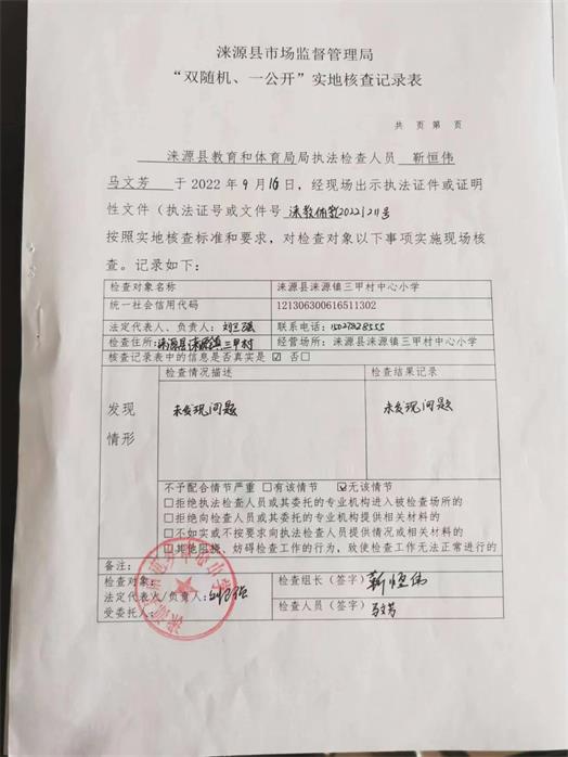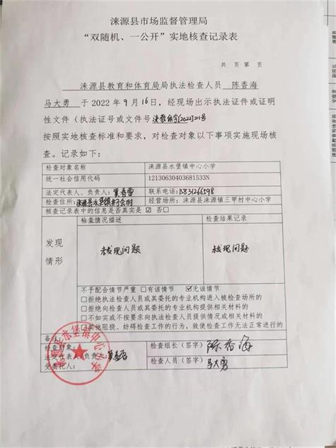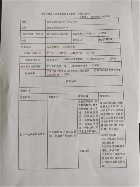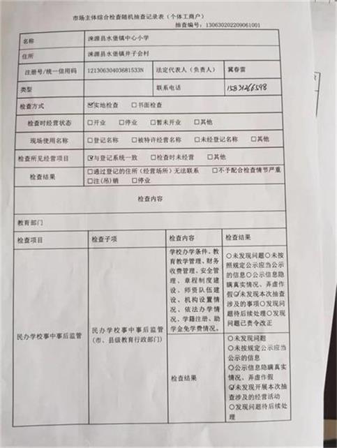 涞源县教育和体育局内部“双随机、一公开”检查结果公示