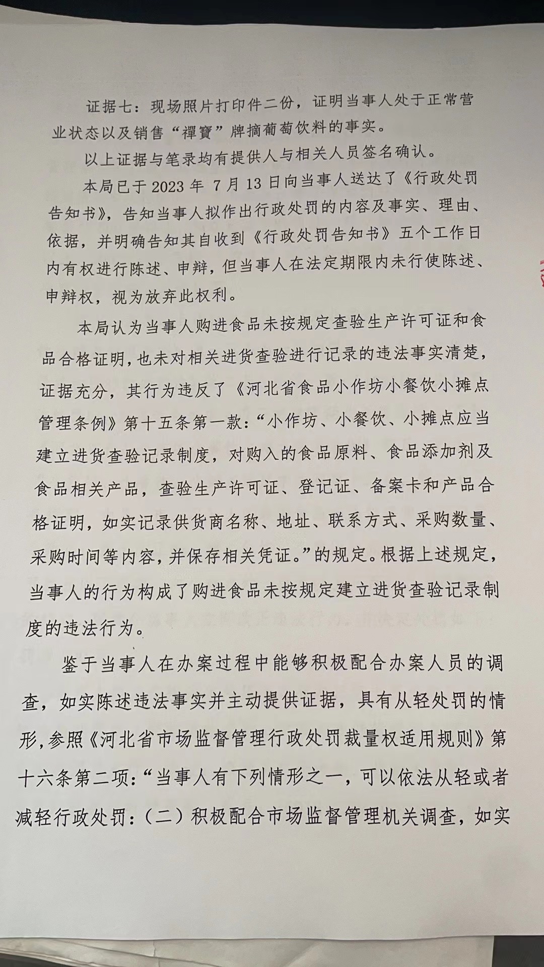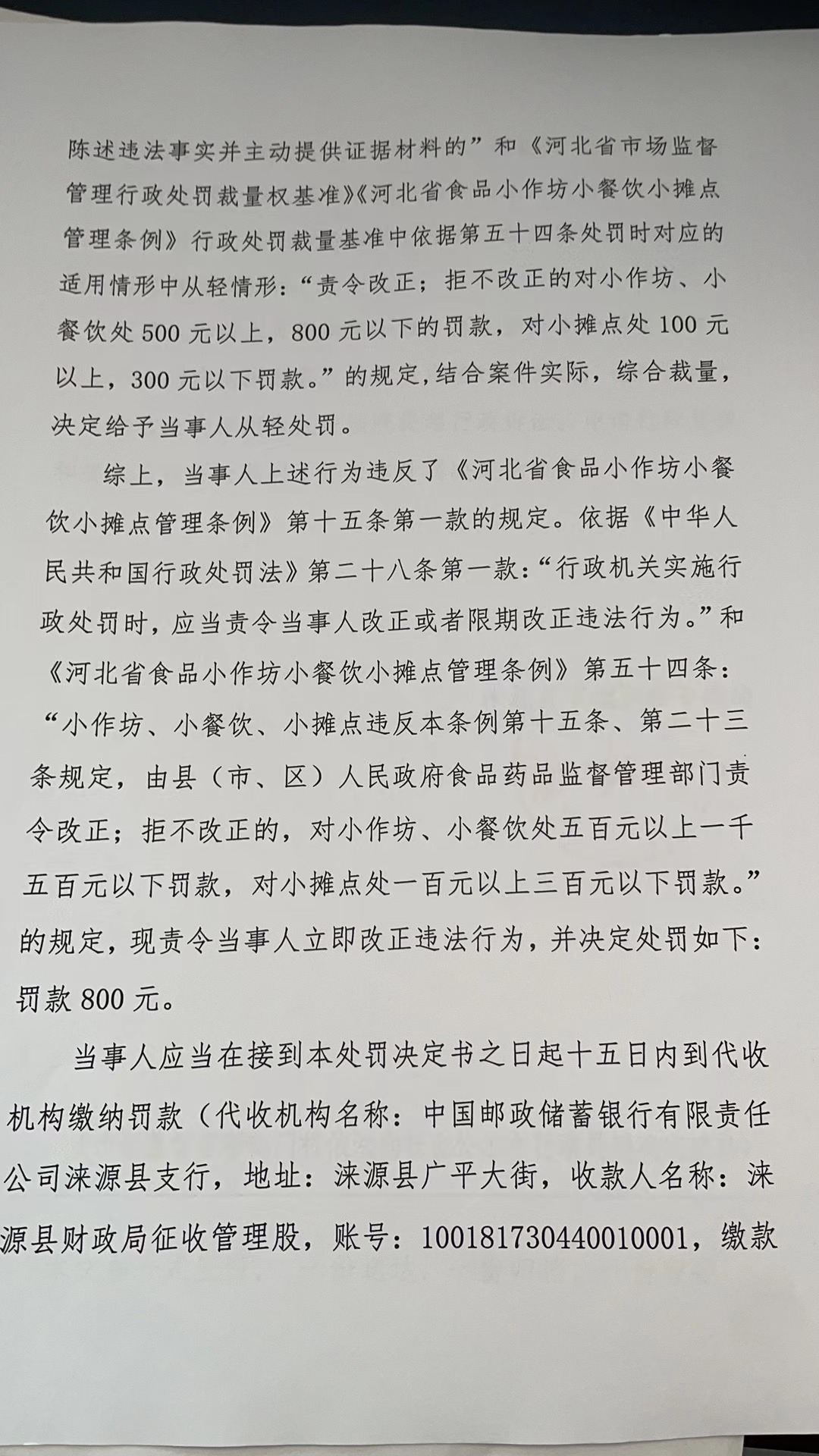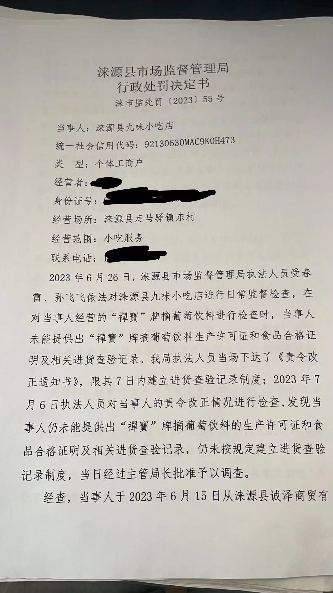涞市监处罚〔2023〕55号涞源县九味小吃店购进食品未按规定建立进货查验记录制度案
