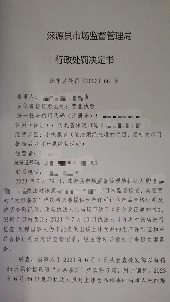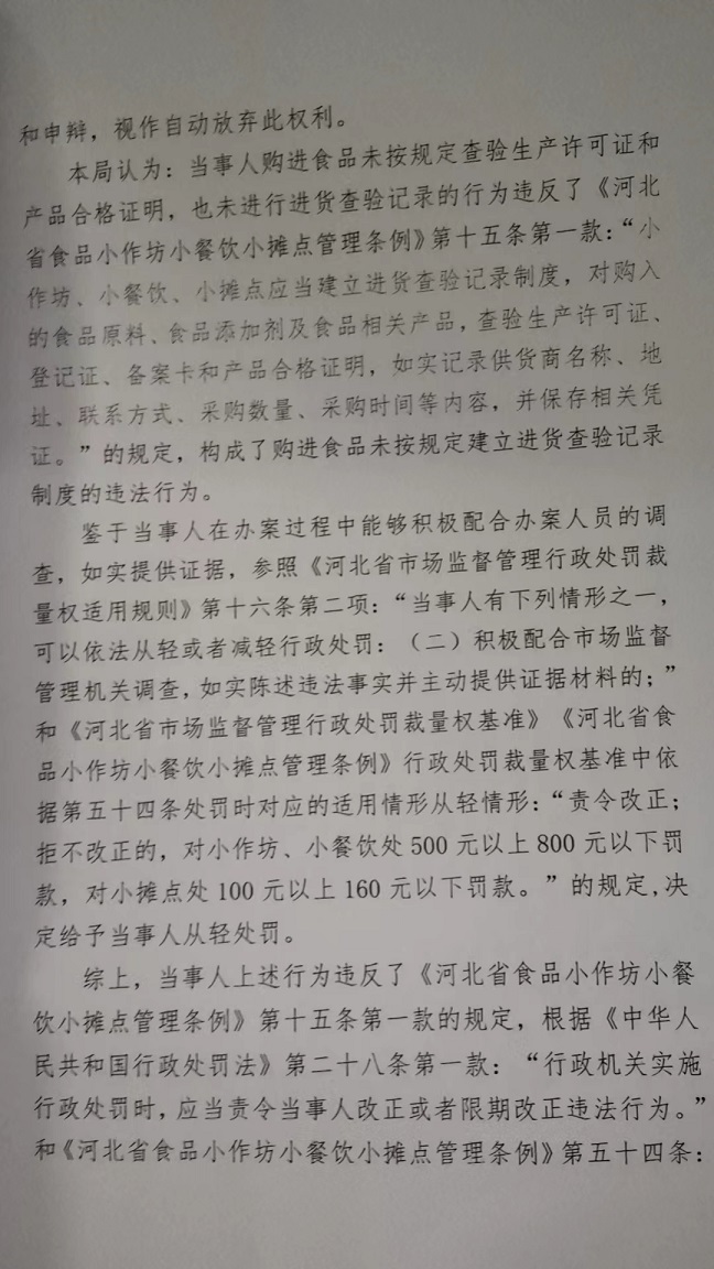 涞源县鑫欣旺饭店涉嫌购进食品未按规定建立进货查验记录制度案