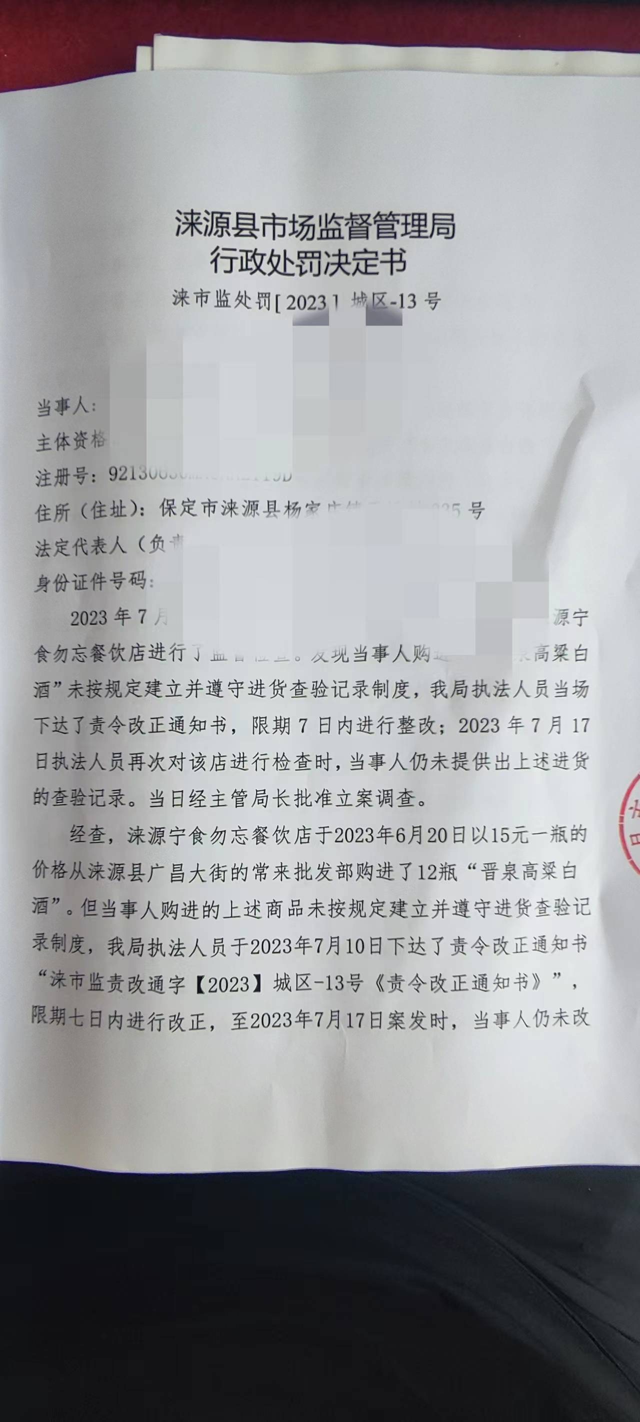 涞市监处罚[ 2023 ] 城区-13号涞源宁食勿忘餐饮店未按规定建立并遵守进货查验记录制度