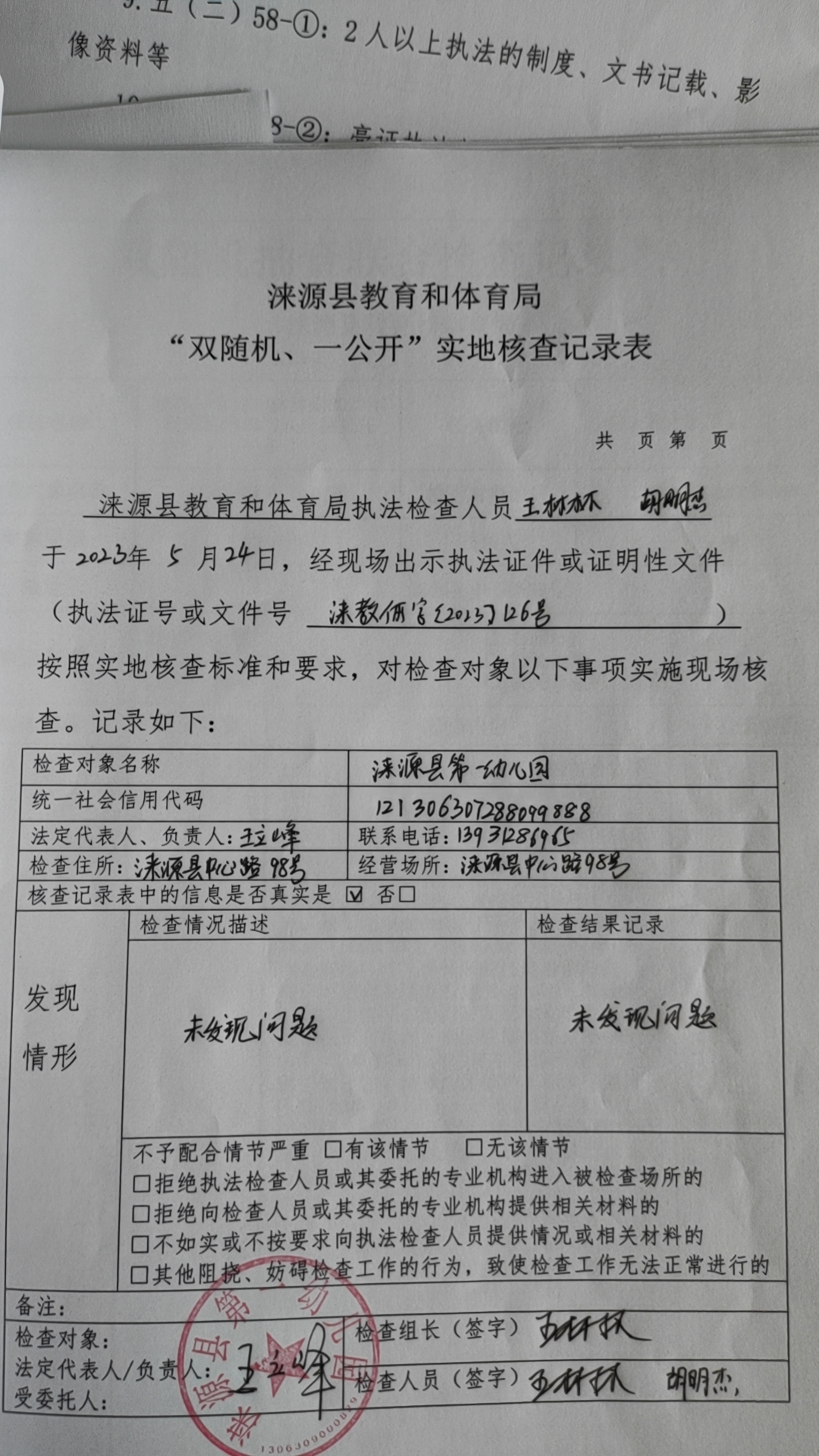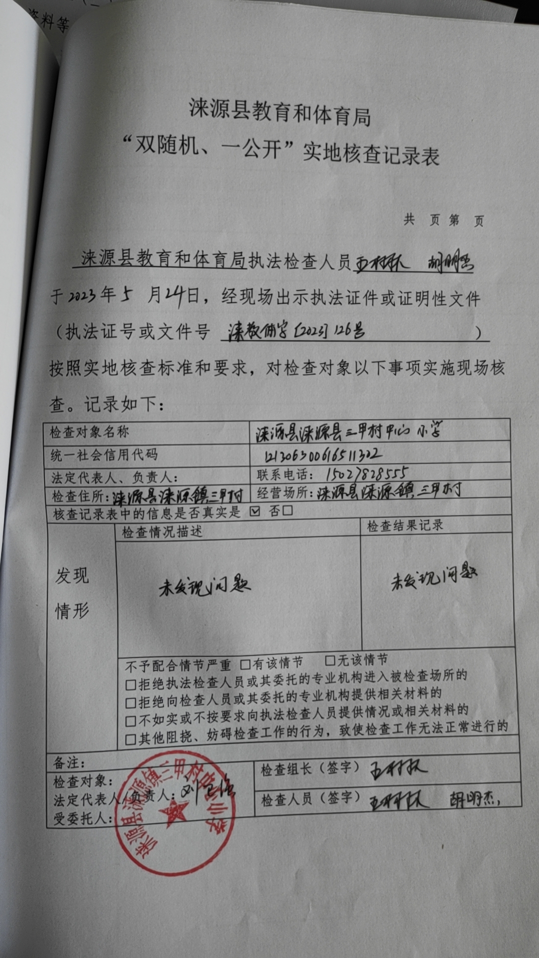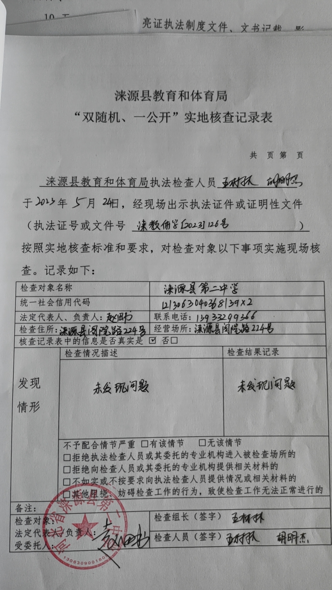 涞源县教育和体育局“双随机、一公开”跨部门检查结果公示