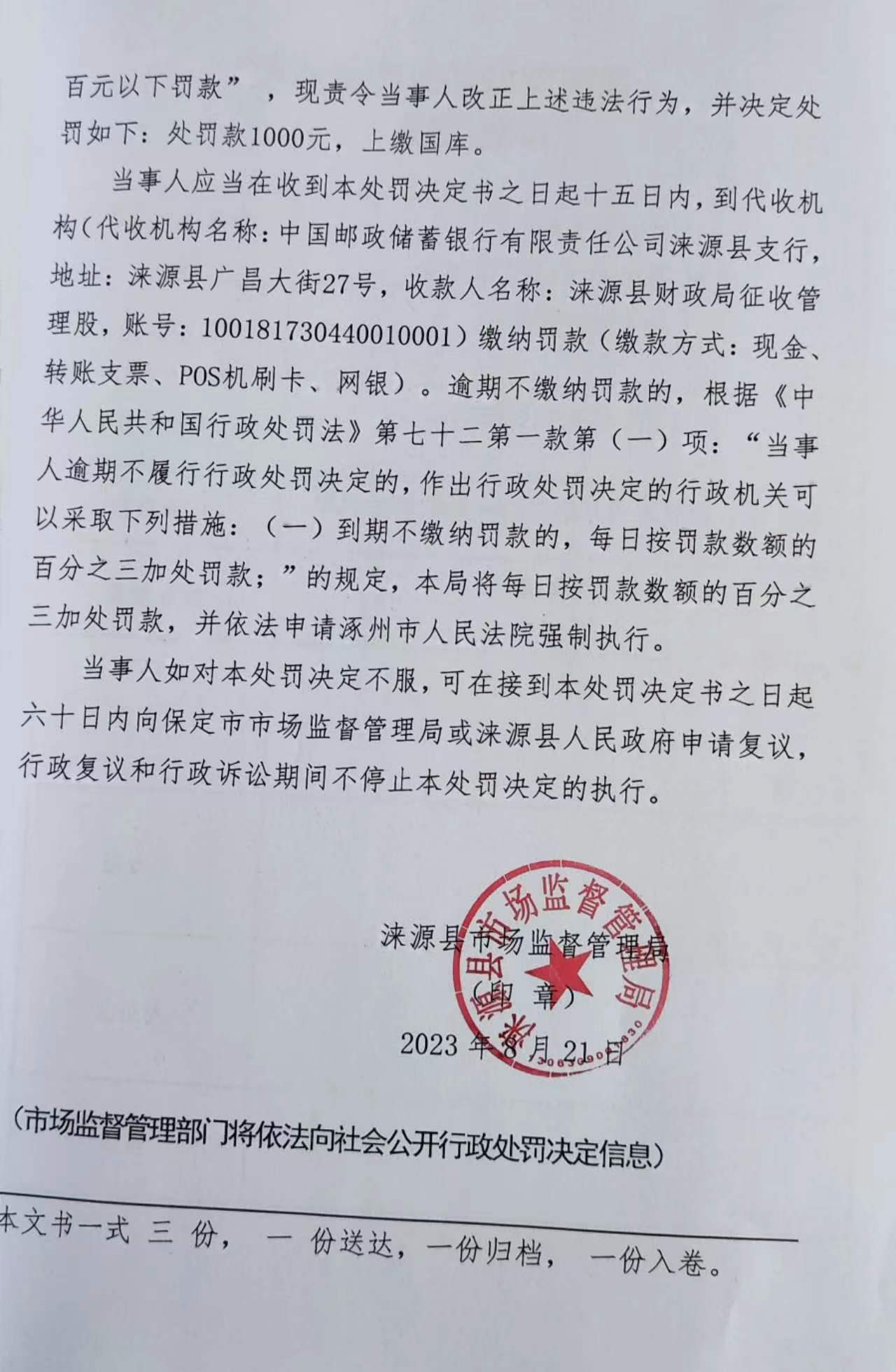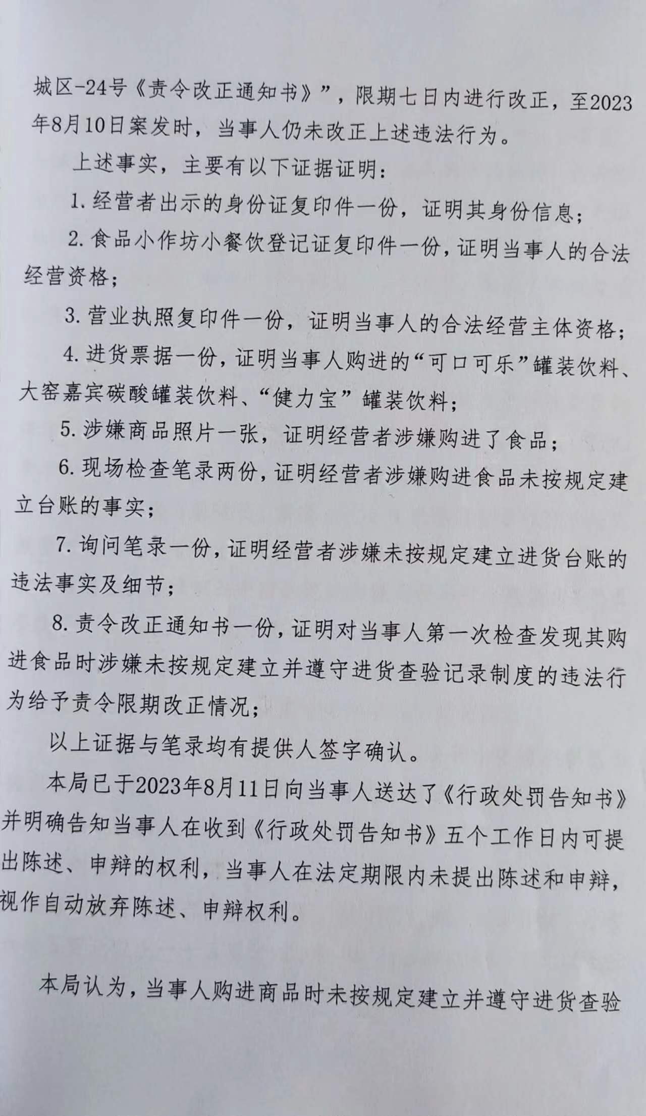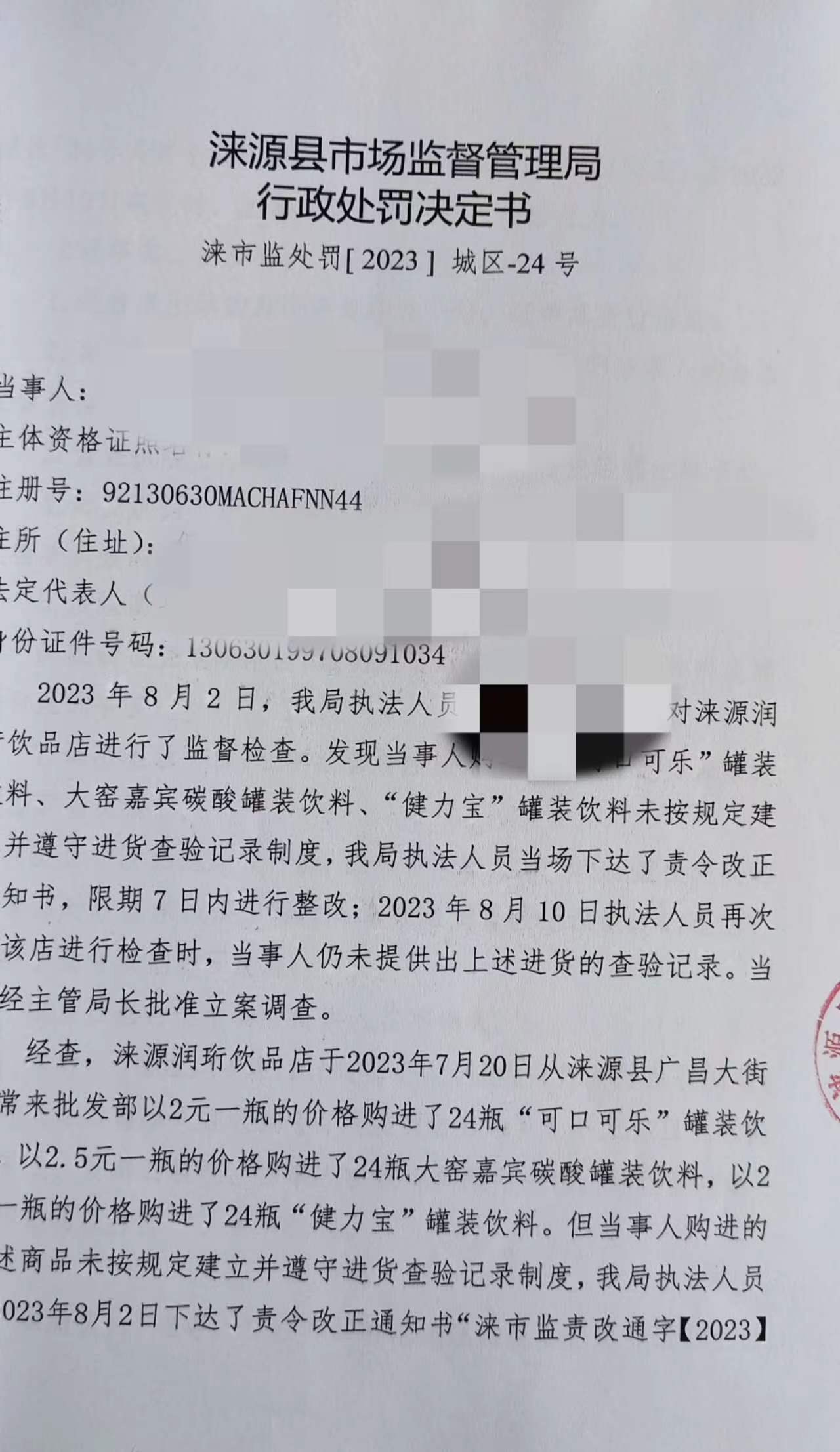 涞市监处罚[ 2023 ] 城区-24号涞源润珩饮品店未按规定建立并遵守进货查验记录制度案