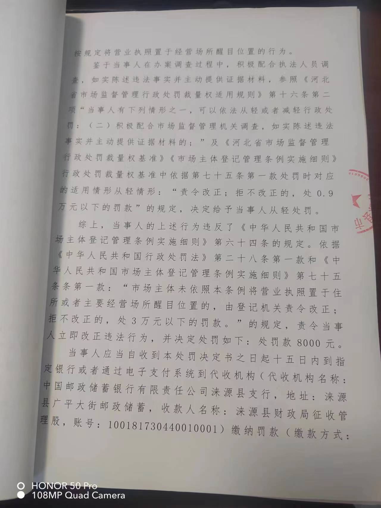 涞市监〔2023〕泉坊4号涞源县开源零售点 从事经营活动未将营业执照置于经营场所醒目位置案