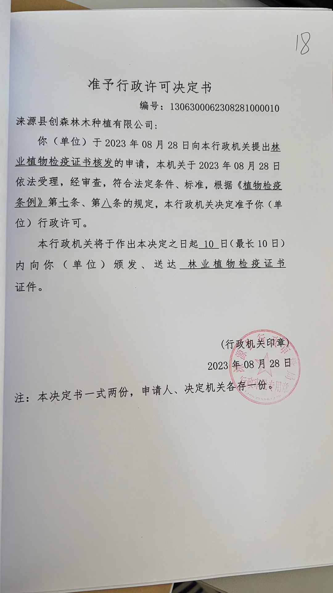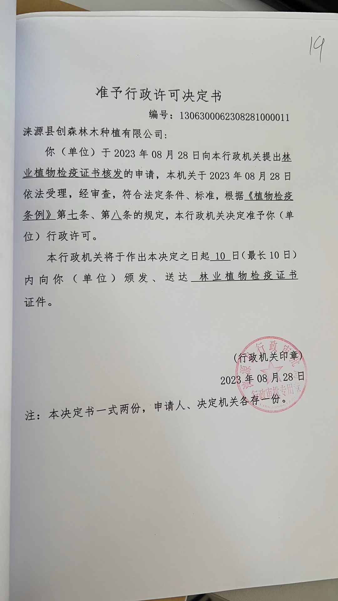 涞源县创森林木种植有限公司行政许可决定书2.jpg