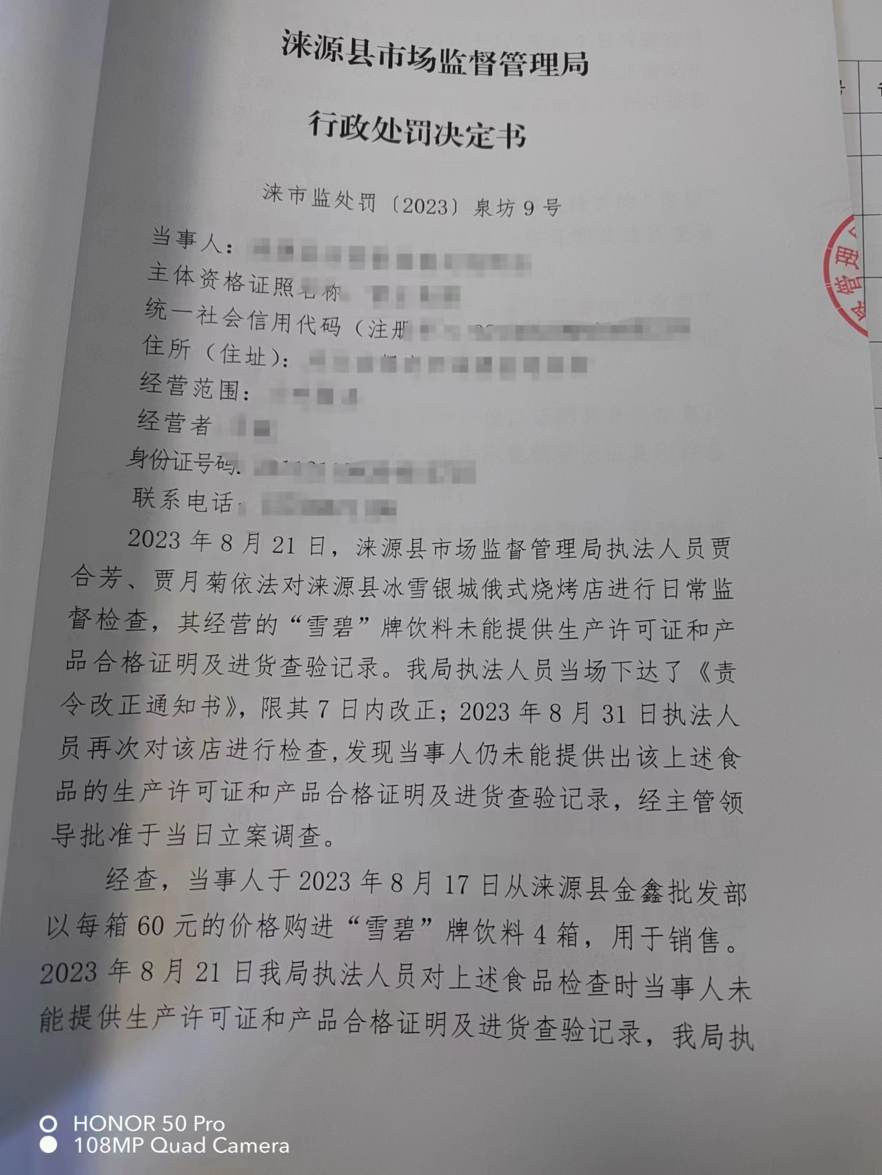 涞市监〔2023〕泉坊9号涞源县冰雪银城俄式烧烤店 购进食品未按规定建立进货查验记录制度案