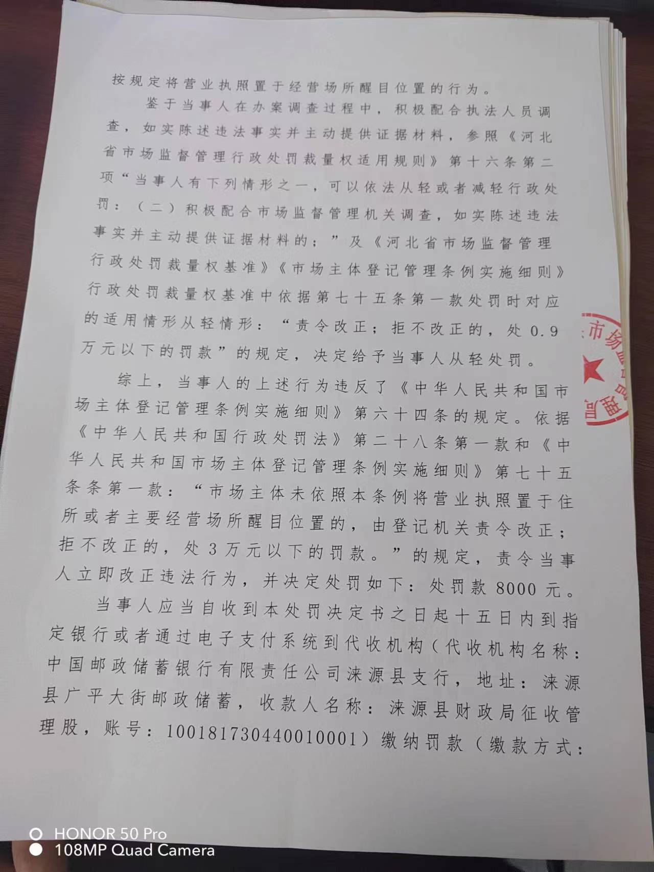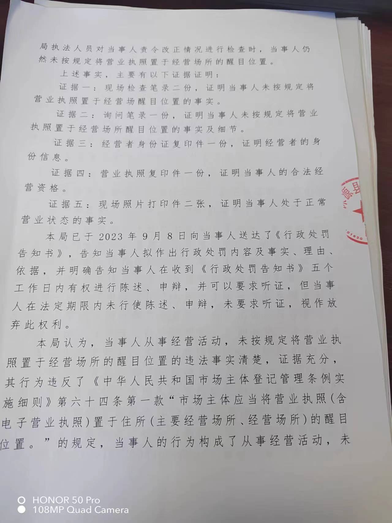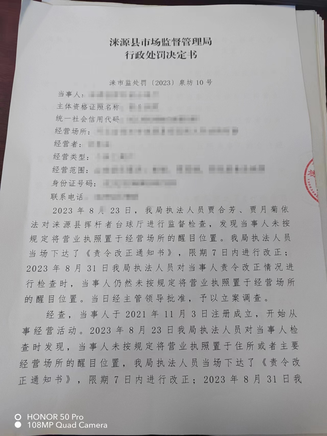 涞市监〔2023〕泉坊10号涞源县挥杆者台球厅 从事经营活动未将营业执照置于经营场所醒目位置案