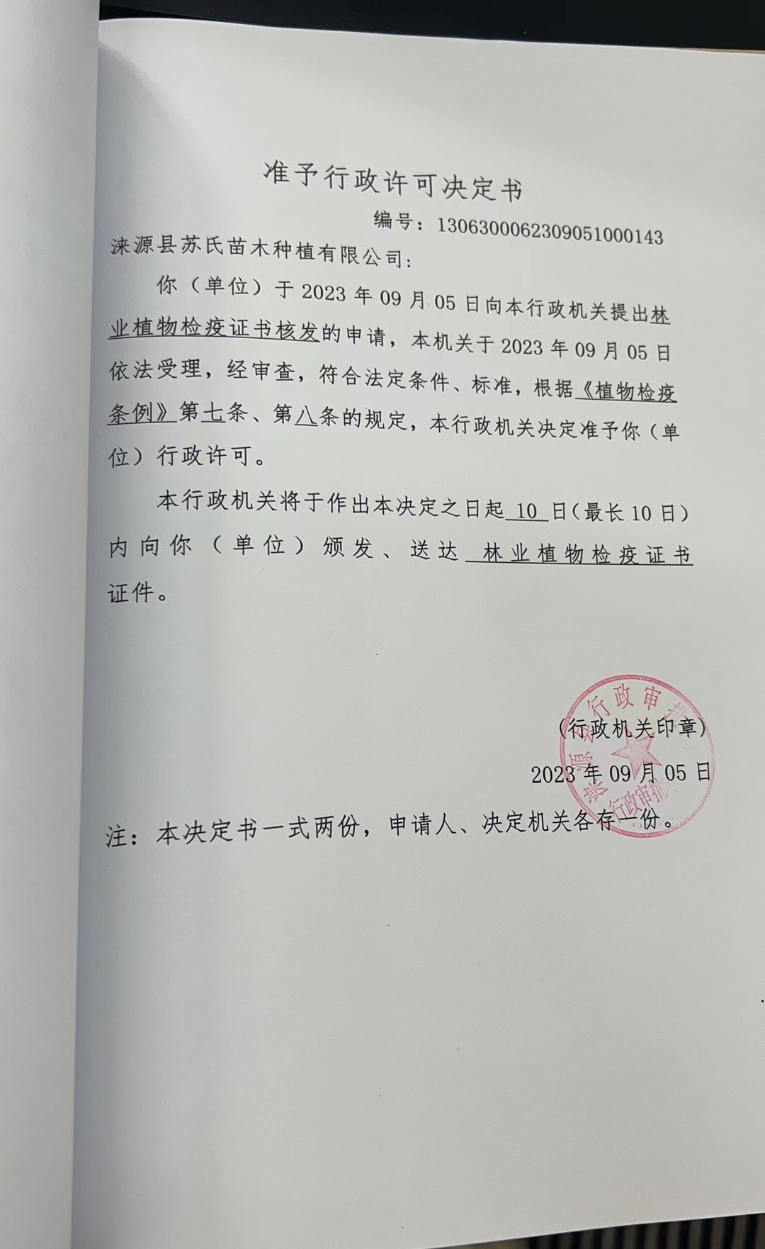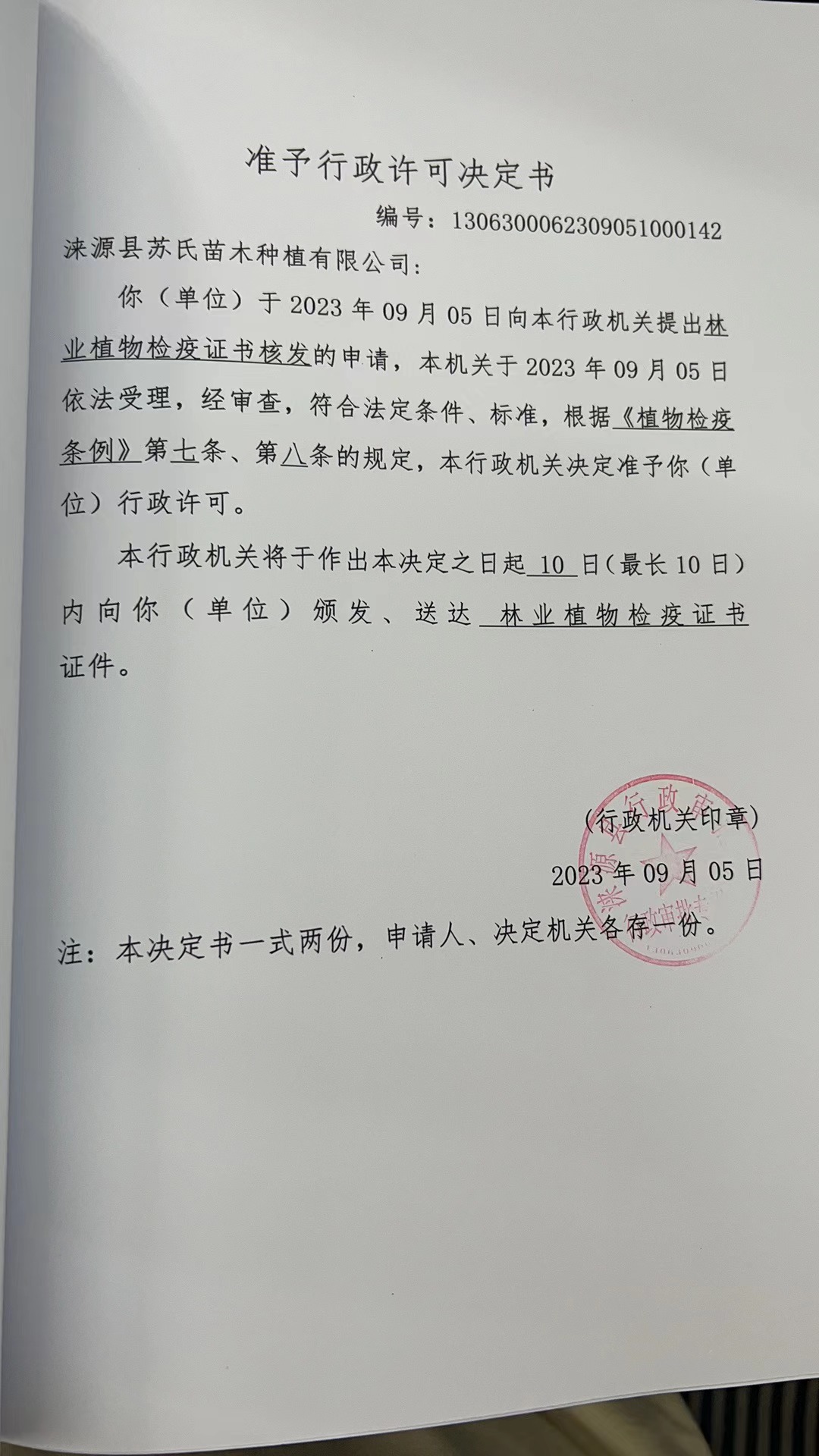 涞源县苏氏苗木种植有限公司行政许可决定书.jpg
