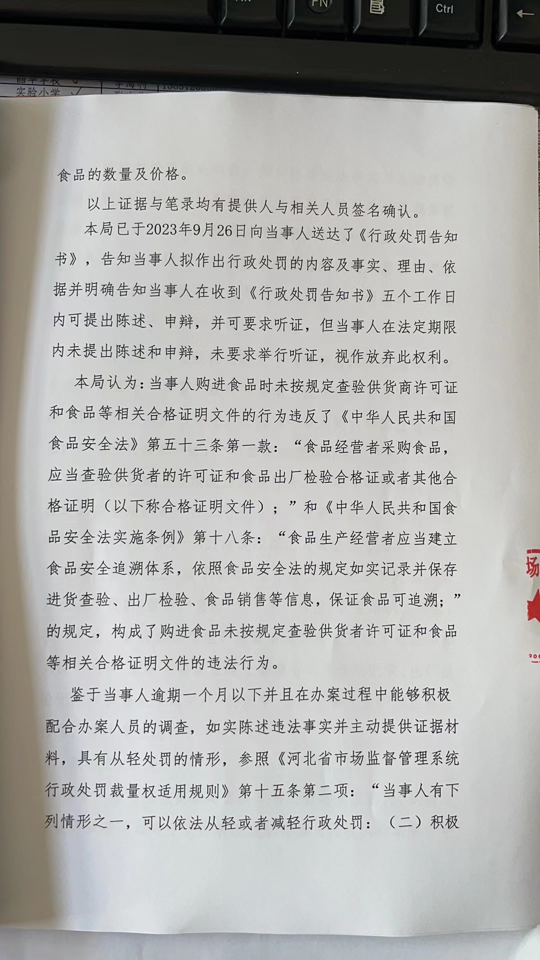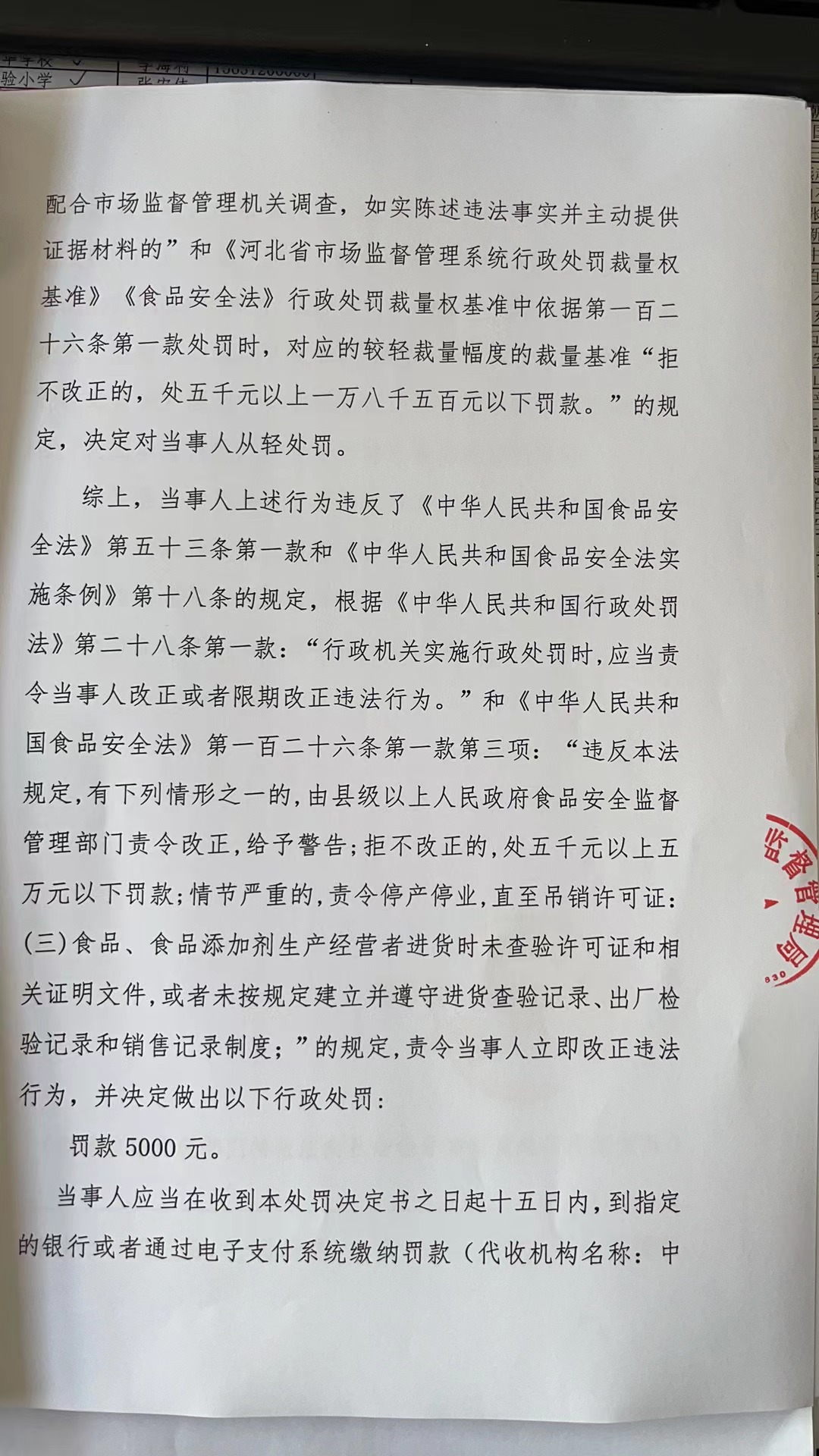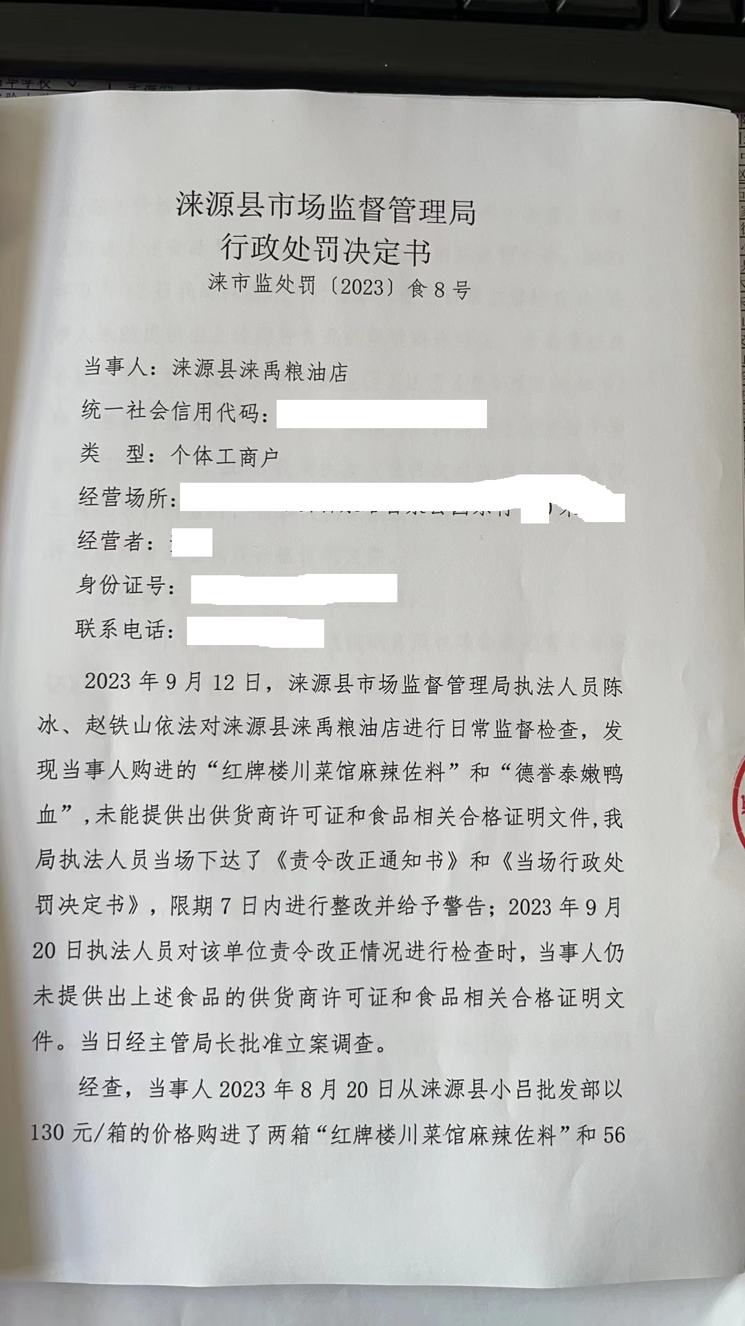 涞市监处罚〔2023〕食8号涞源县涞禹粮油店采购食品未按规定查验供货者许可证和合格证明文件案