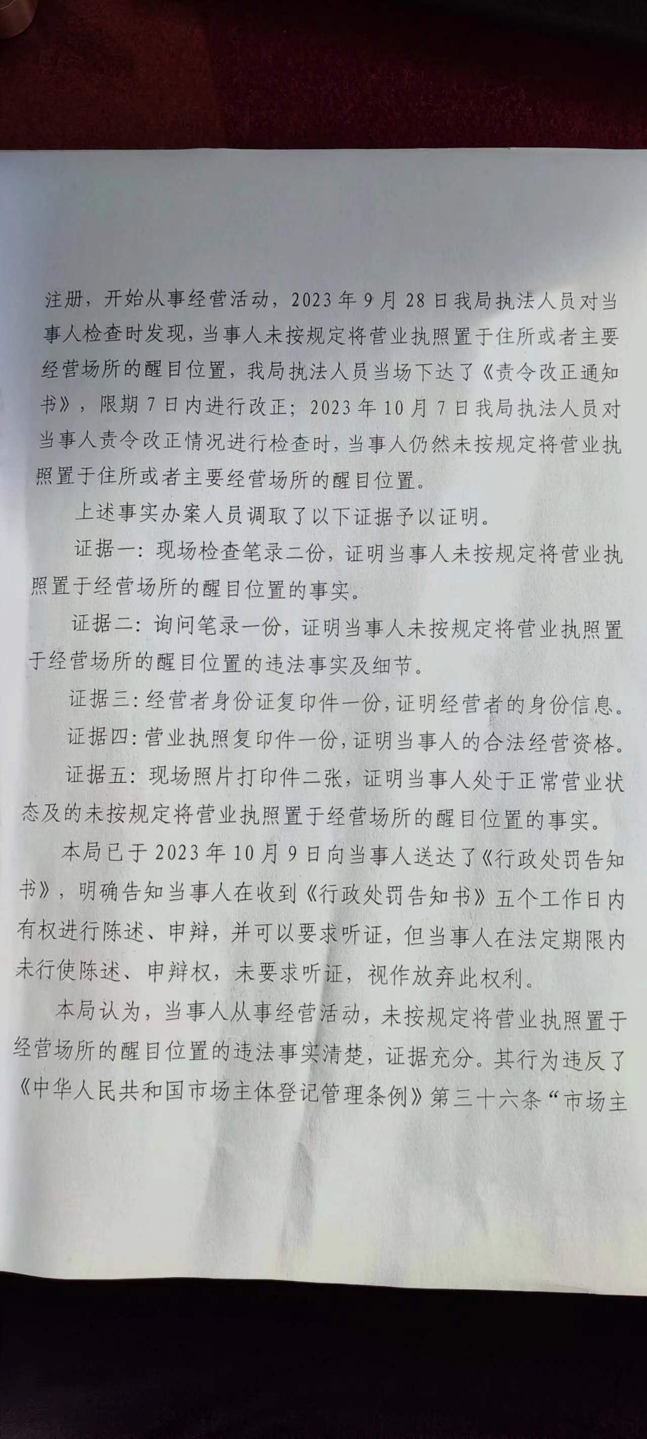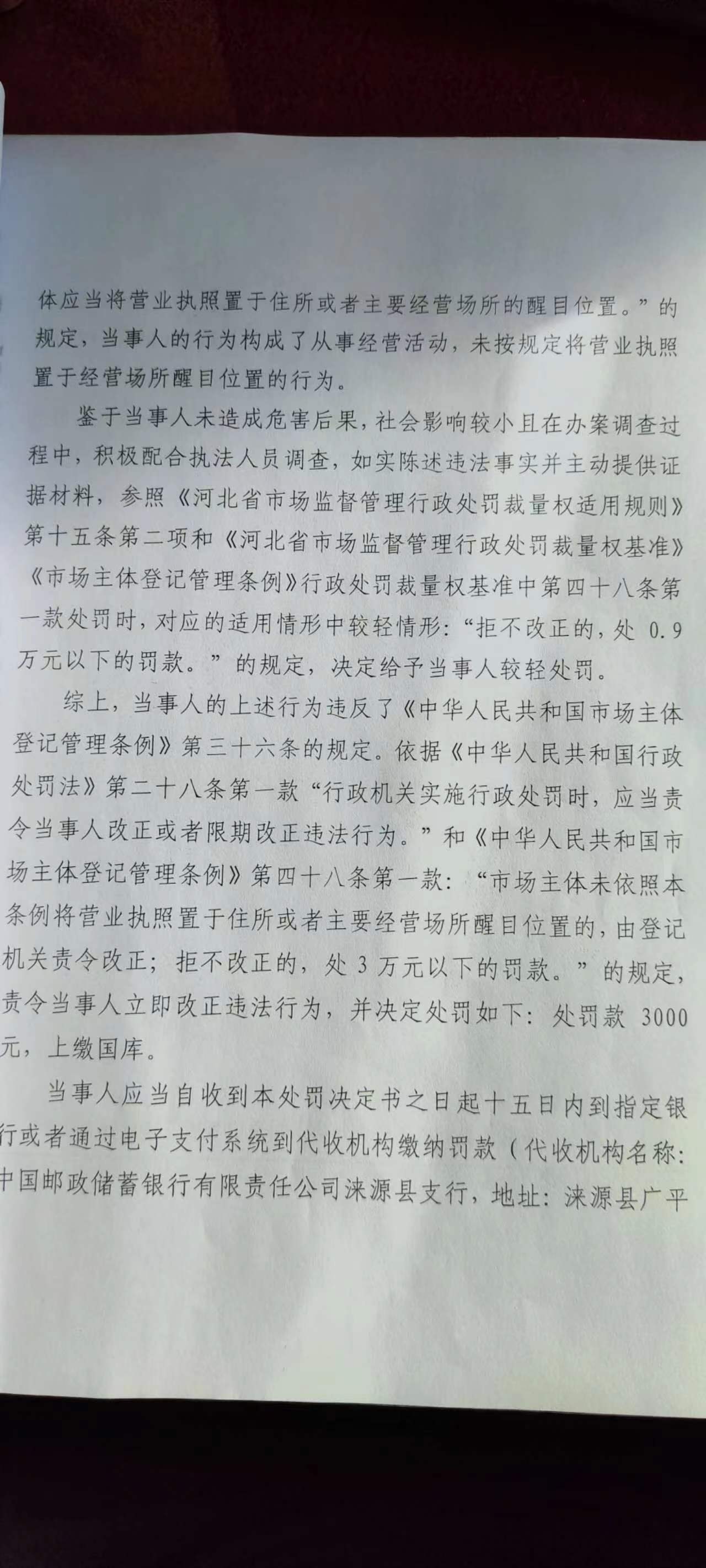 涞市监处罚〔2023〕城区-034号涞源县耀源汽车玻璃店未按规定将营业执照置于经营场所的醒目位置案