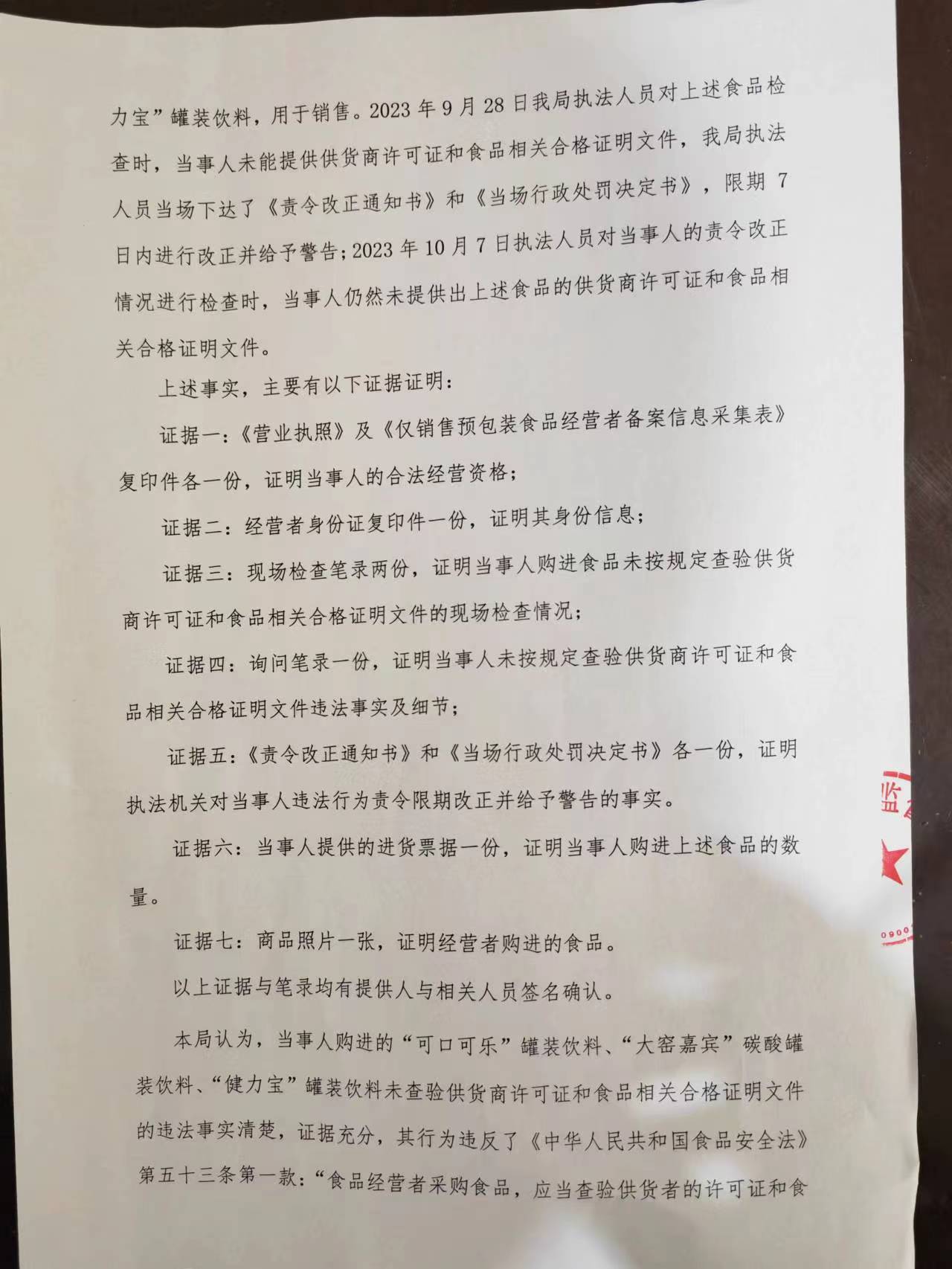涞市监处罚〔2023〕城区-35号涞源县馋趣食品饮料综合经营超市未查验供货商许可证和食品相关合格证明文件案