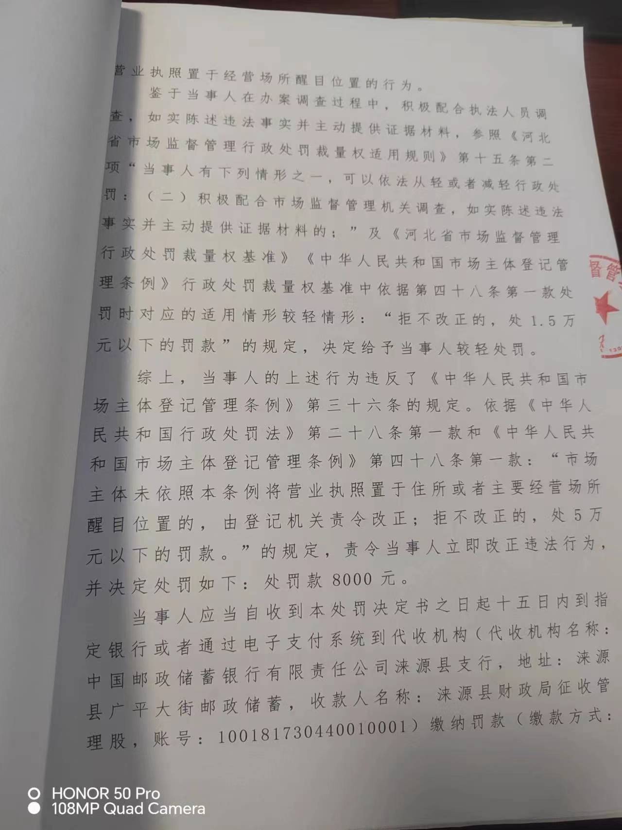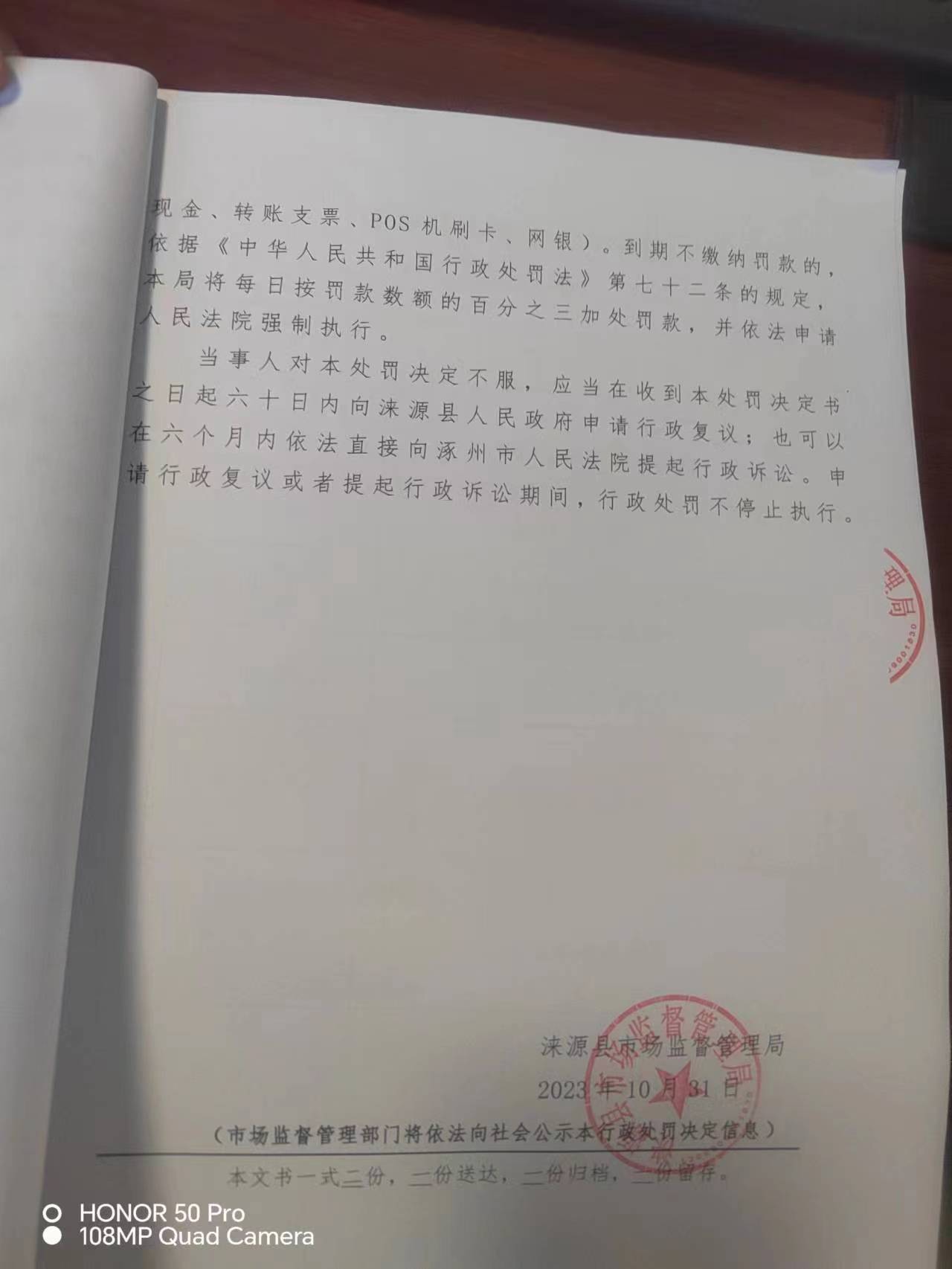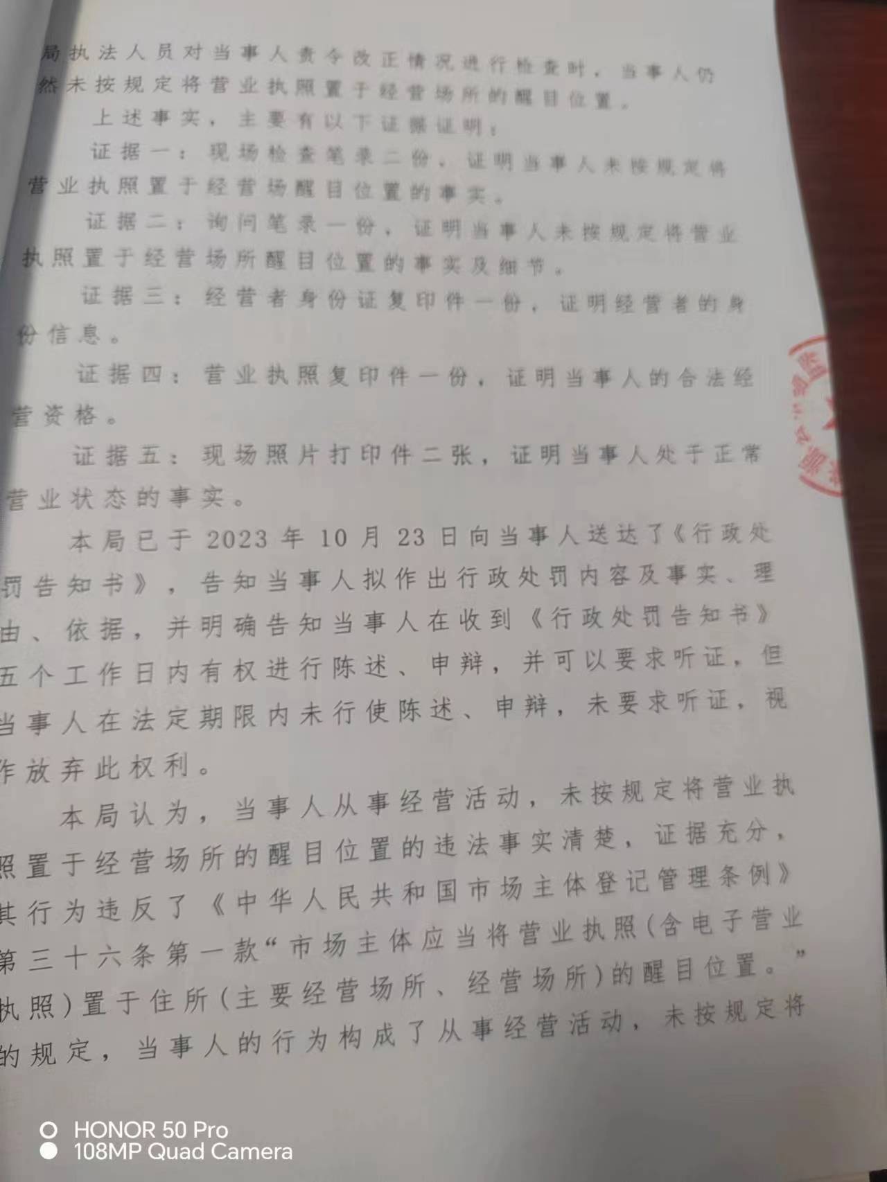 涞市监 〔2023〕泉坊17号涞源县麻辣鸡锅餐饮店从事经营活动未将营业执照置于经营场所醒目位置案