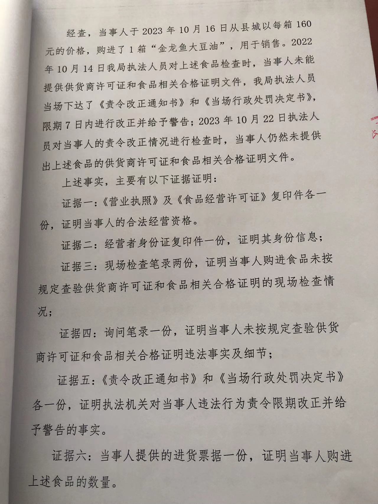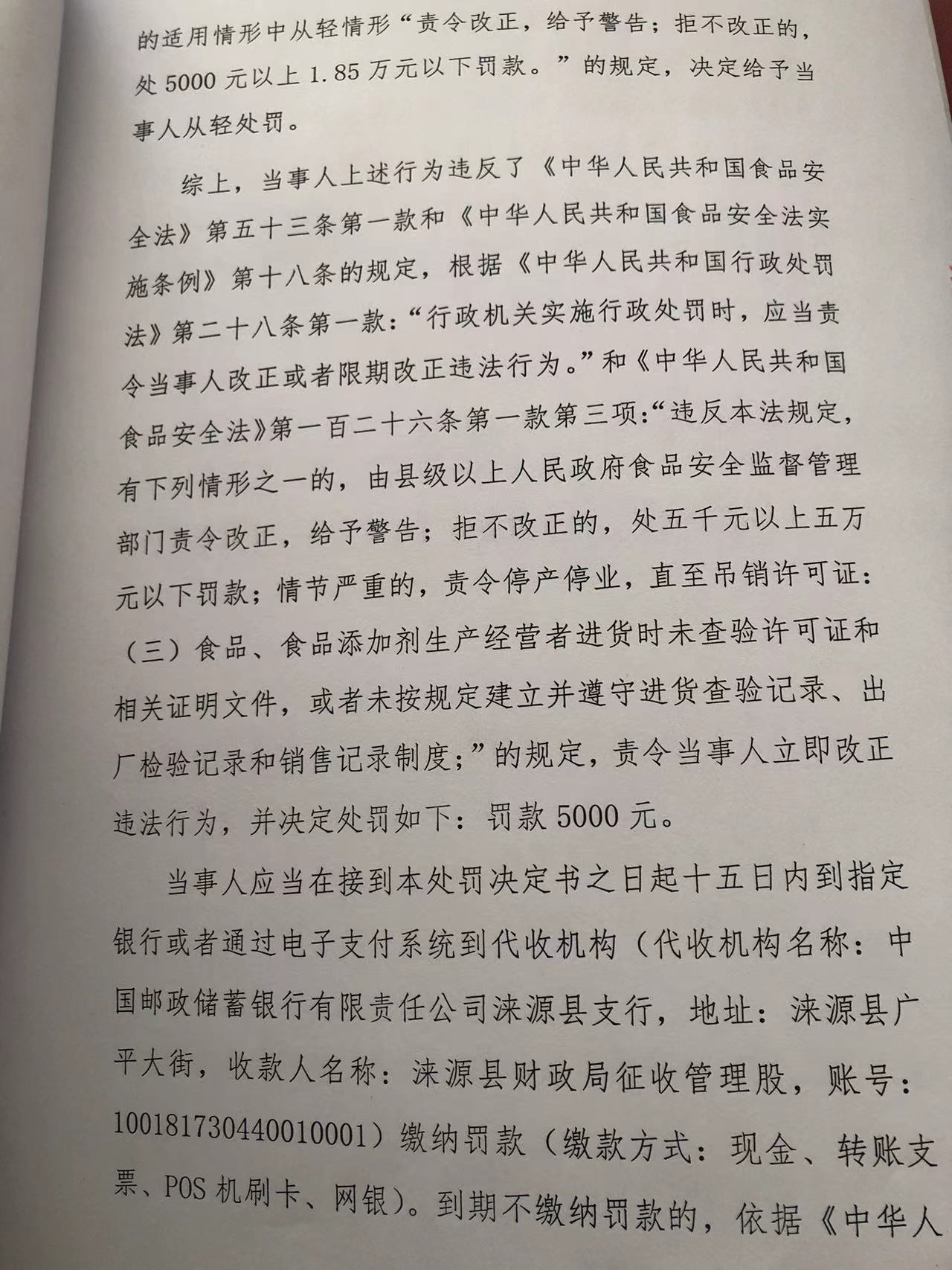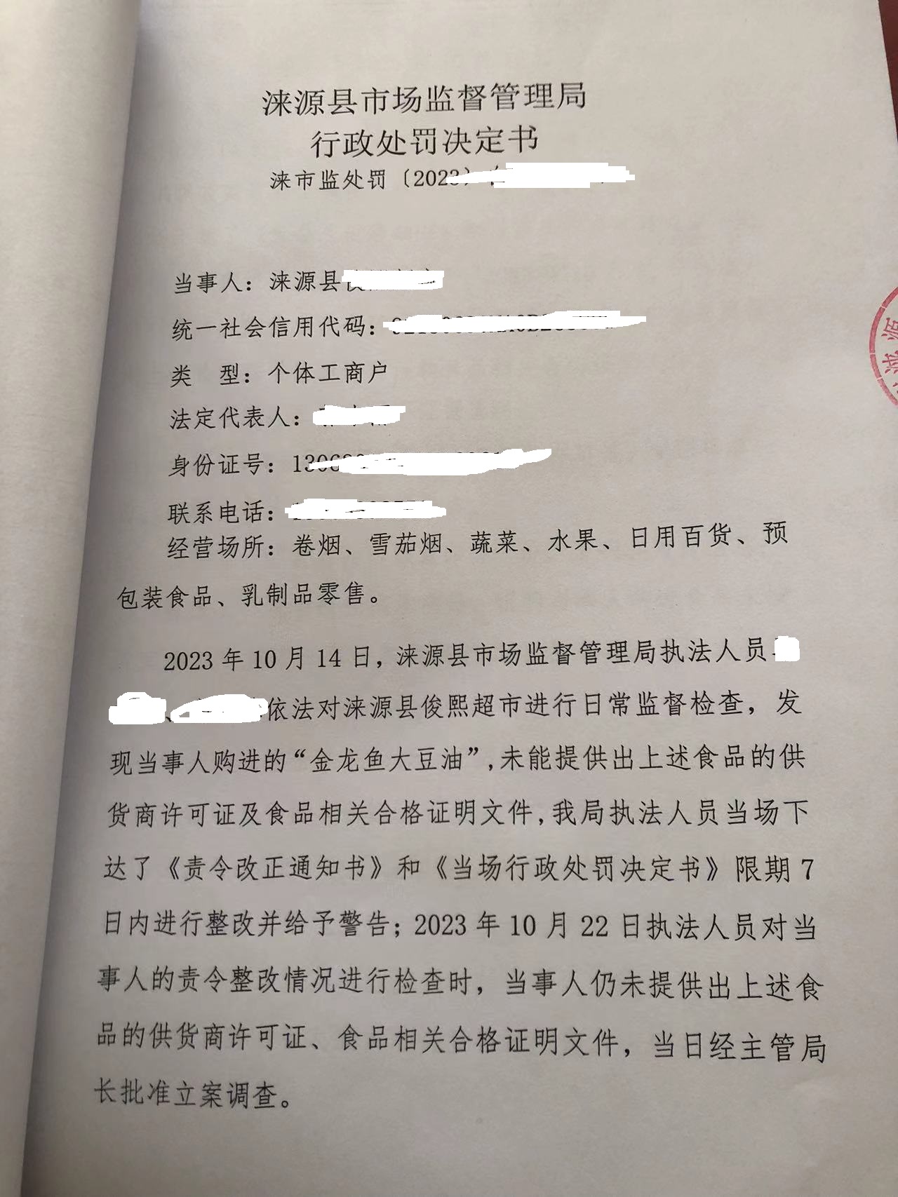 涞市监处罚(2023)白石山9号涞源县俊熙超市进货未按规定查验许可证和相关证明文件案