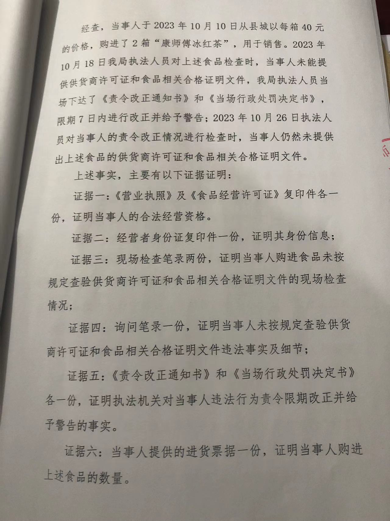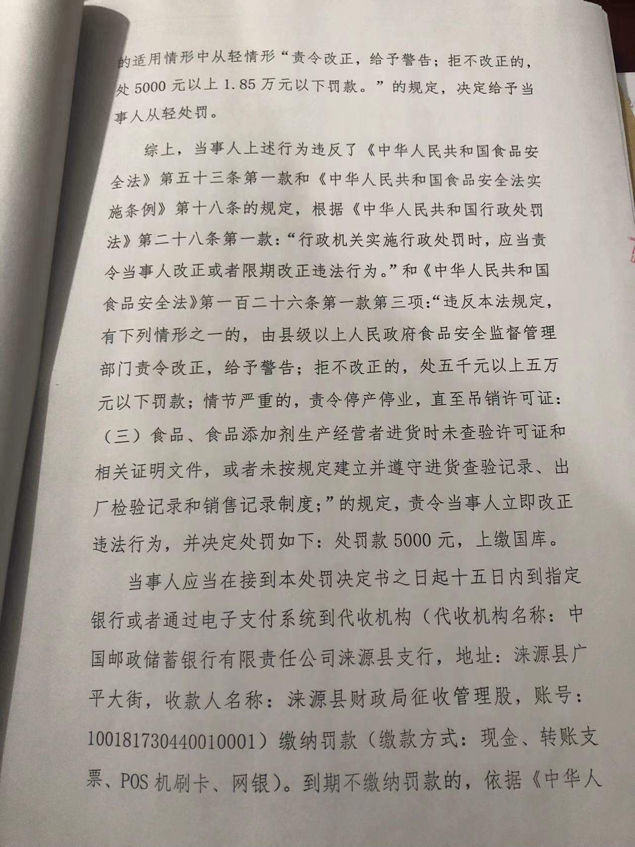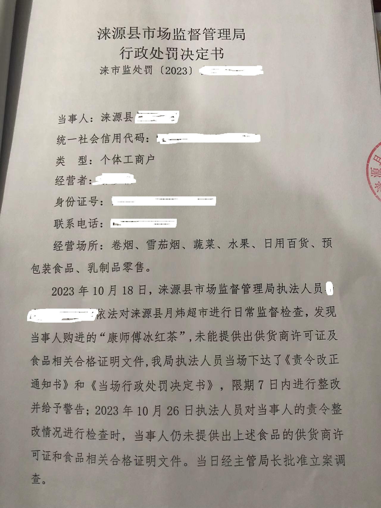 涞市监 〔2023〕白石山12号涞源县月炜超市进货未按规定查验许可证和相关证明文件案