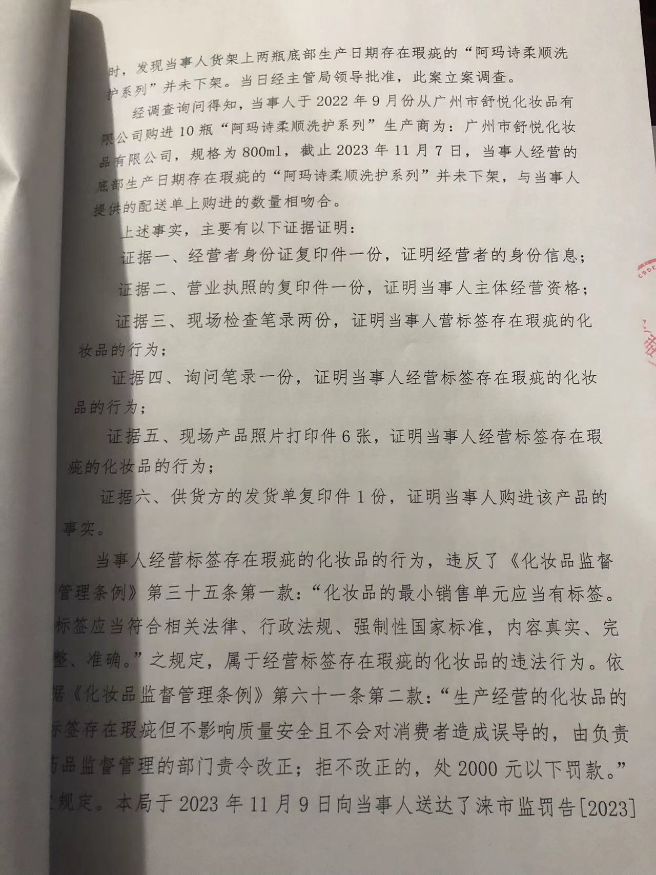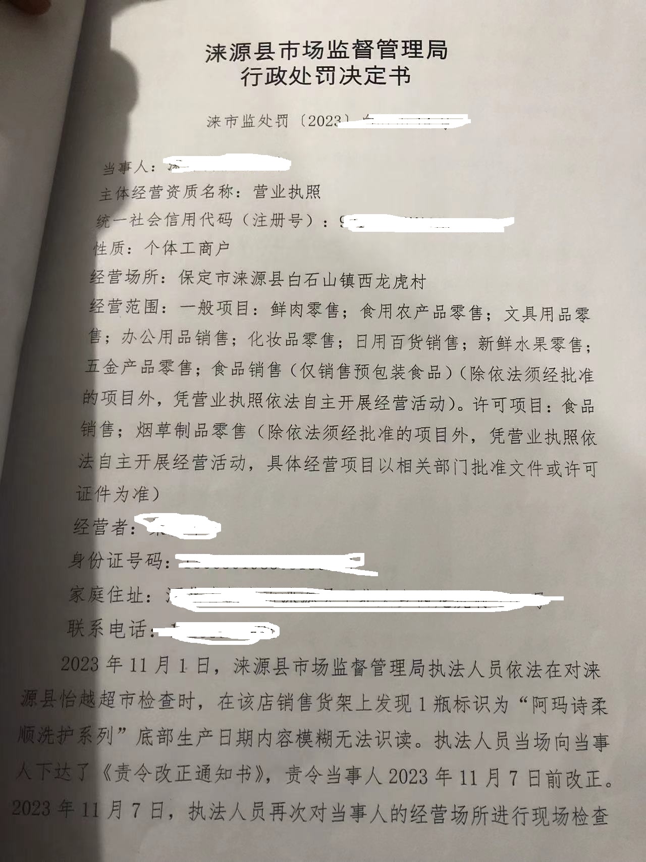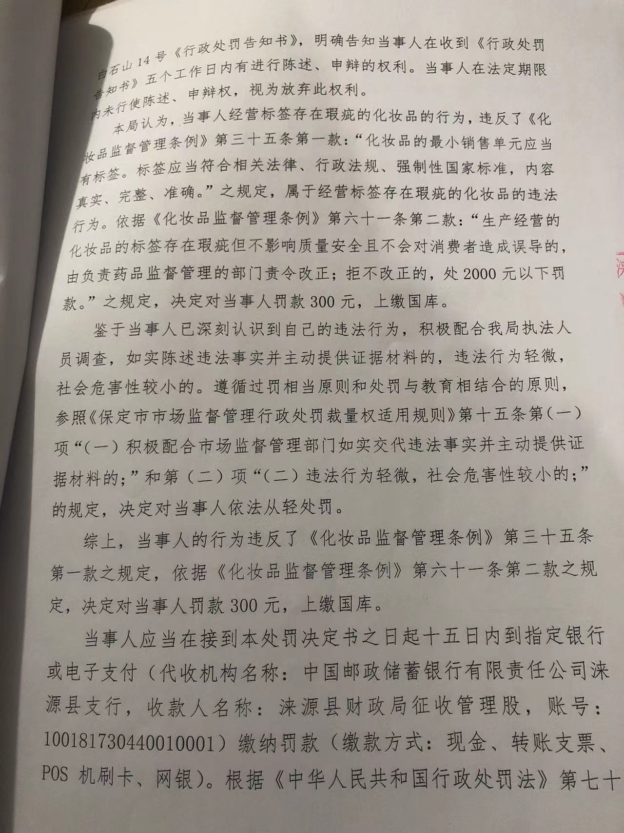 涞市监 〔2023〕白石山14号涞源县怡越超市经营标签存在瑕疵的化妆品案