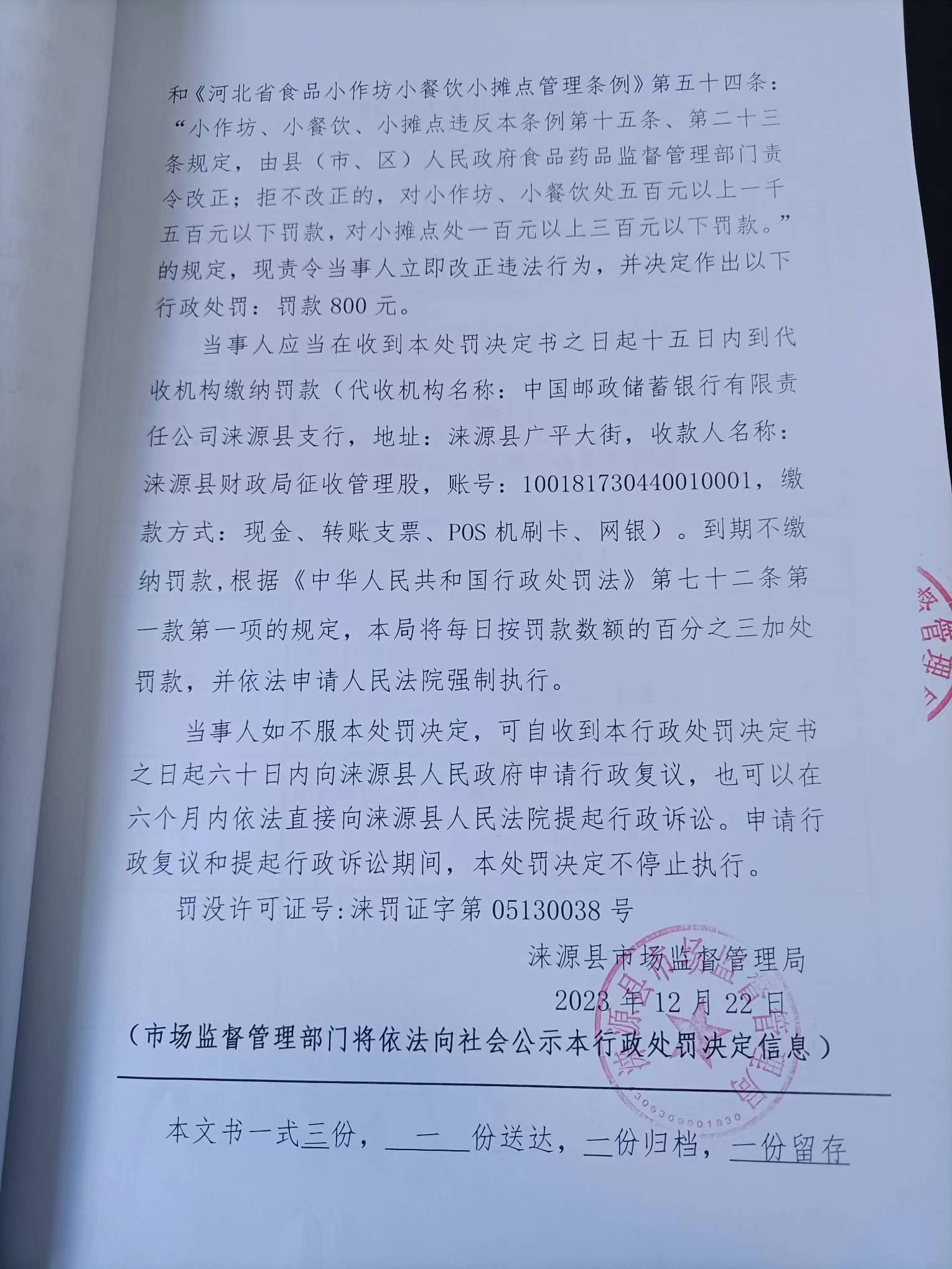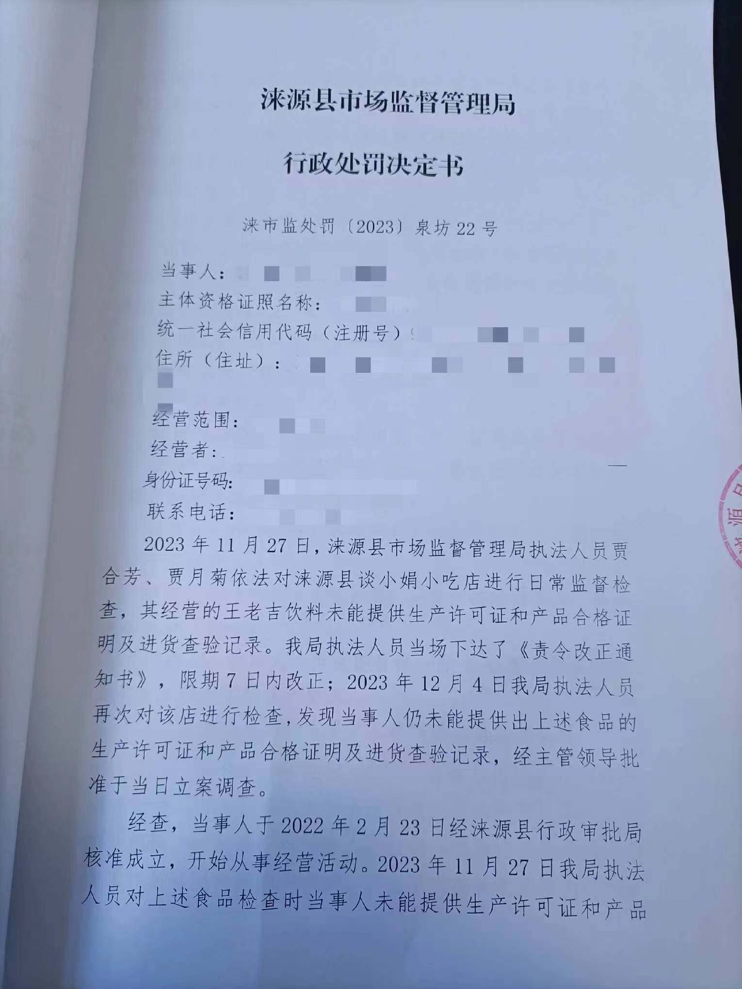 涞市监 〔2023〕泉坊22号涞源县谈小娟小吃店购进食品未按规定建立进货查验记录制度案