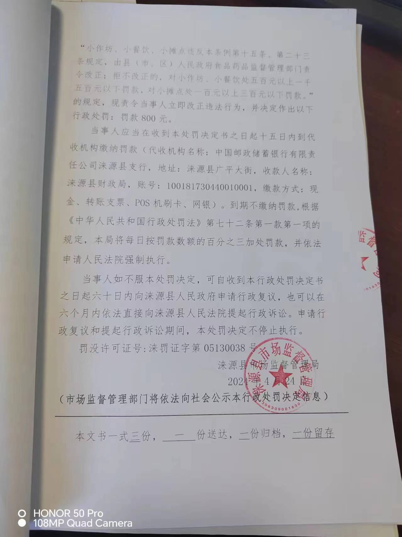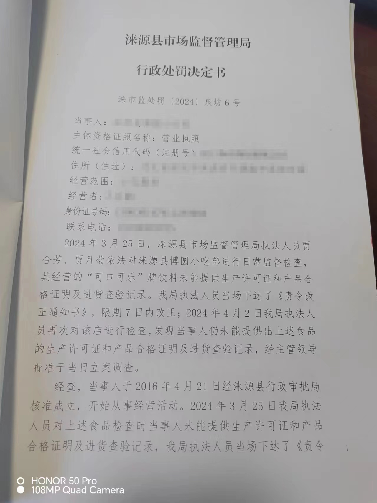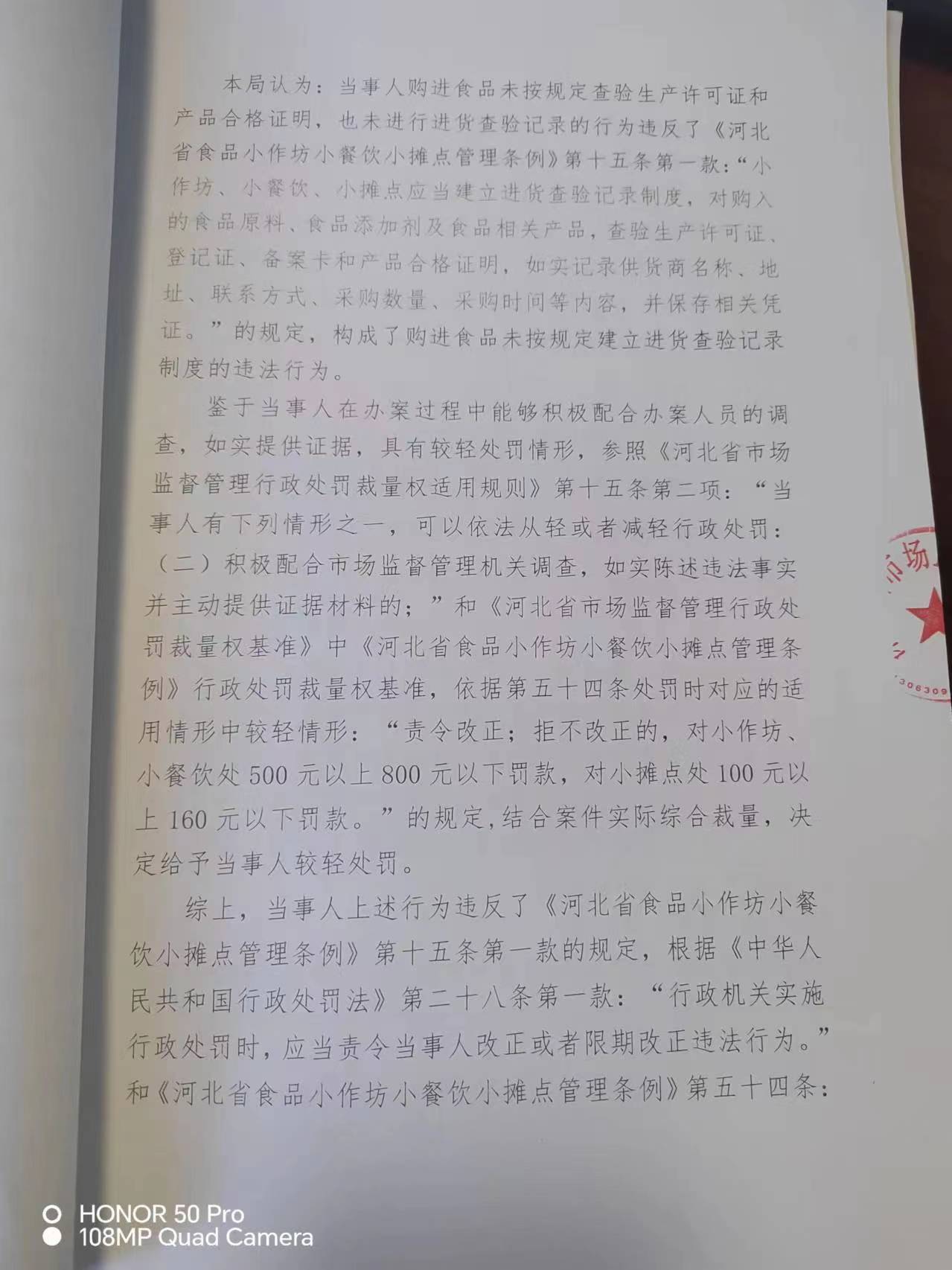 涞市监 〔2024〕泉坊6号涞源县博园小吃部购进食品未按规定建立进货查验记录制度案