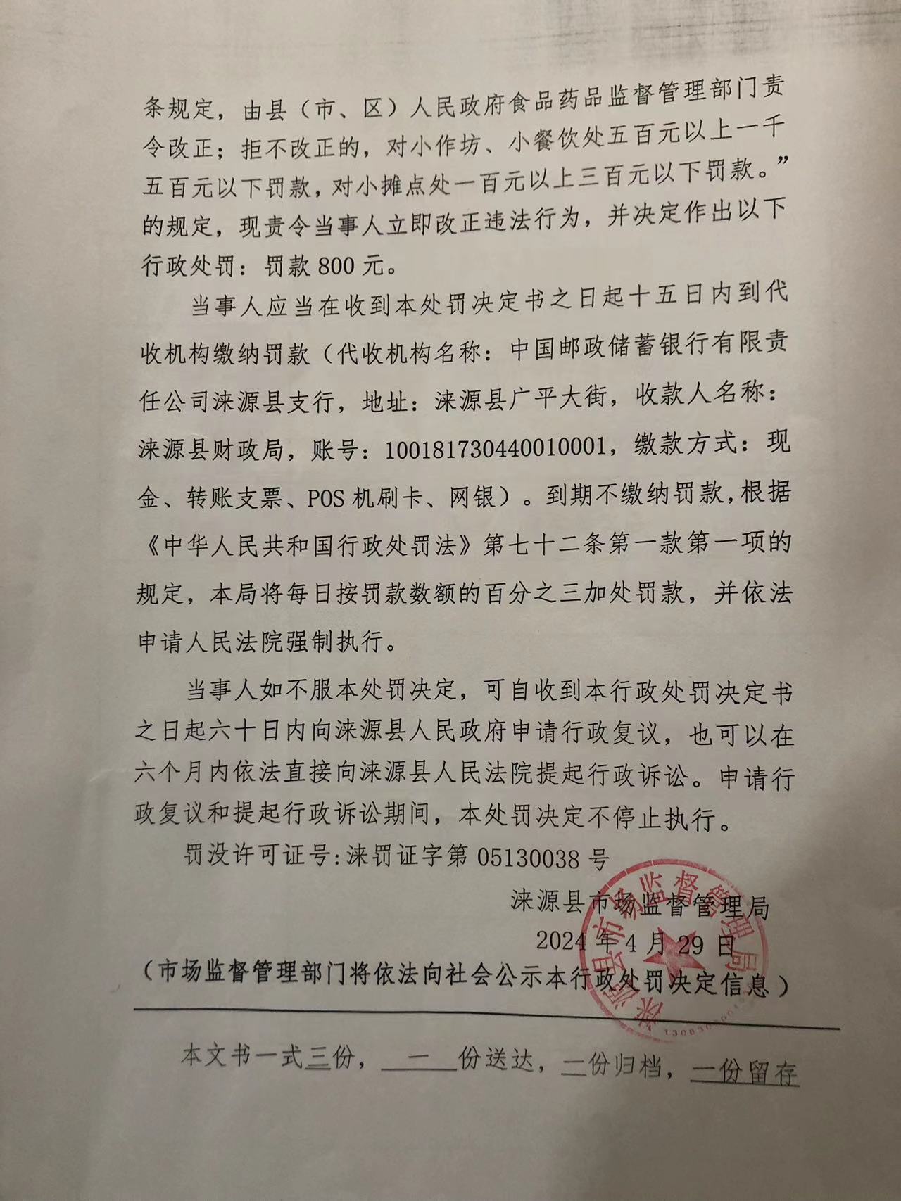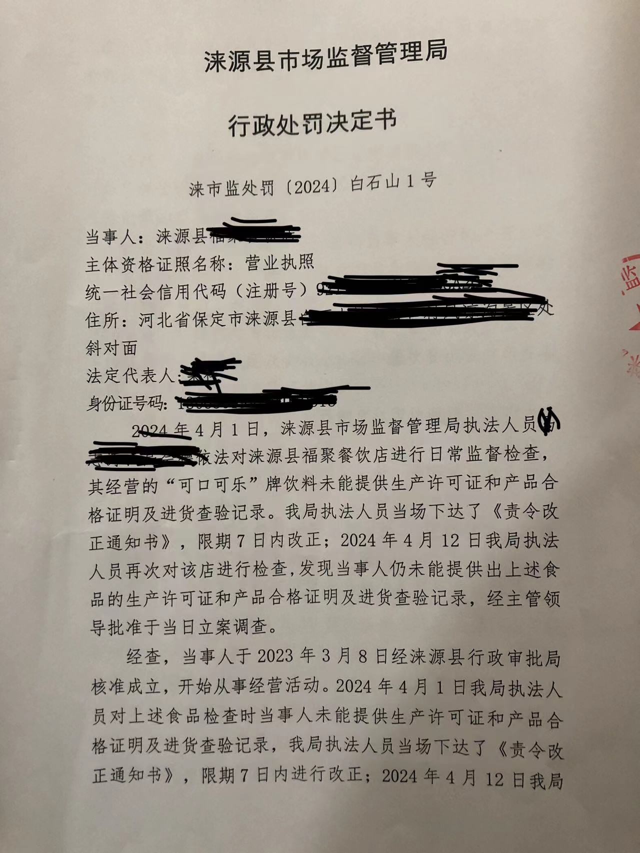 涞市监处罚〔2024〕白石山1号 涞源县福聚餐饮店未按规定建立进货查验记录制度案