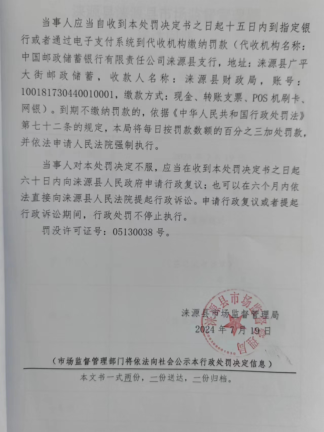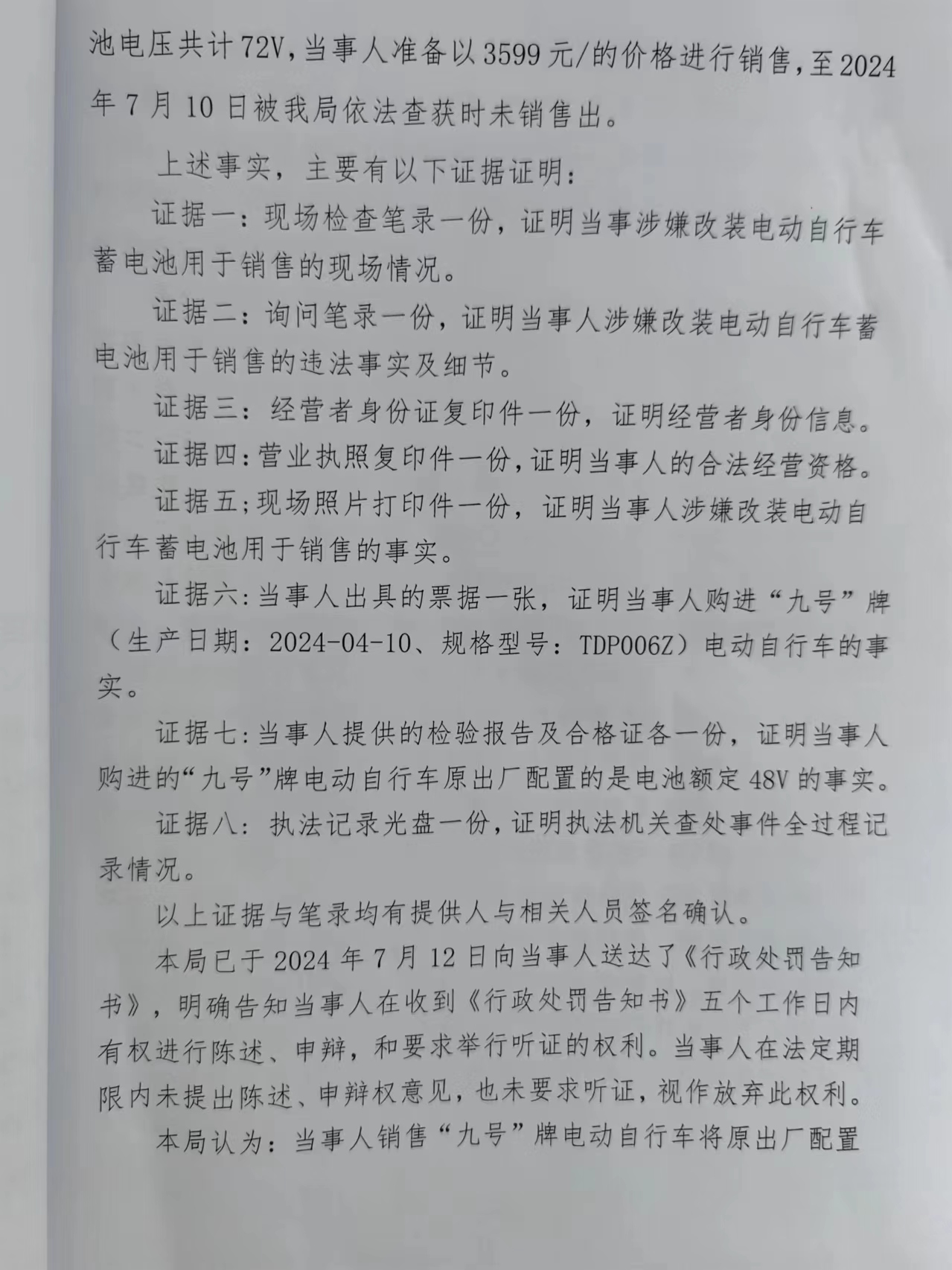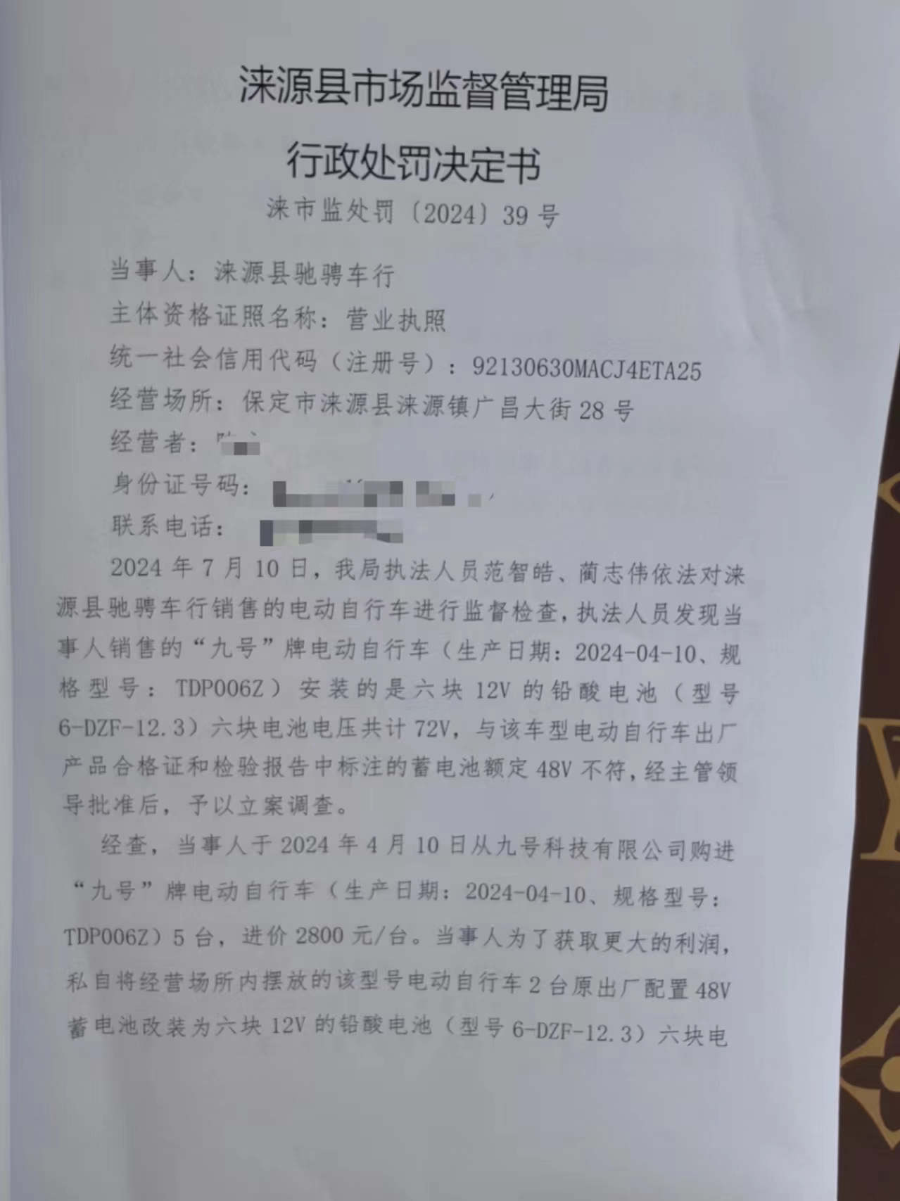 涞市监处罚 〔2024〕39号涞源县驰骋车行改装电动自行车蓄电池用于销售案