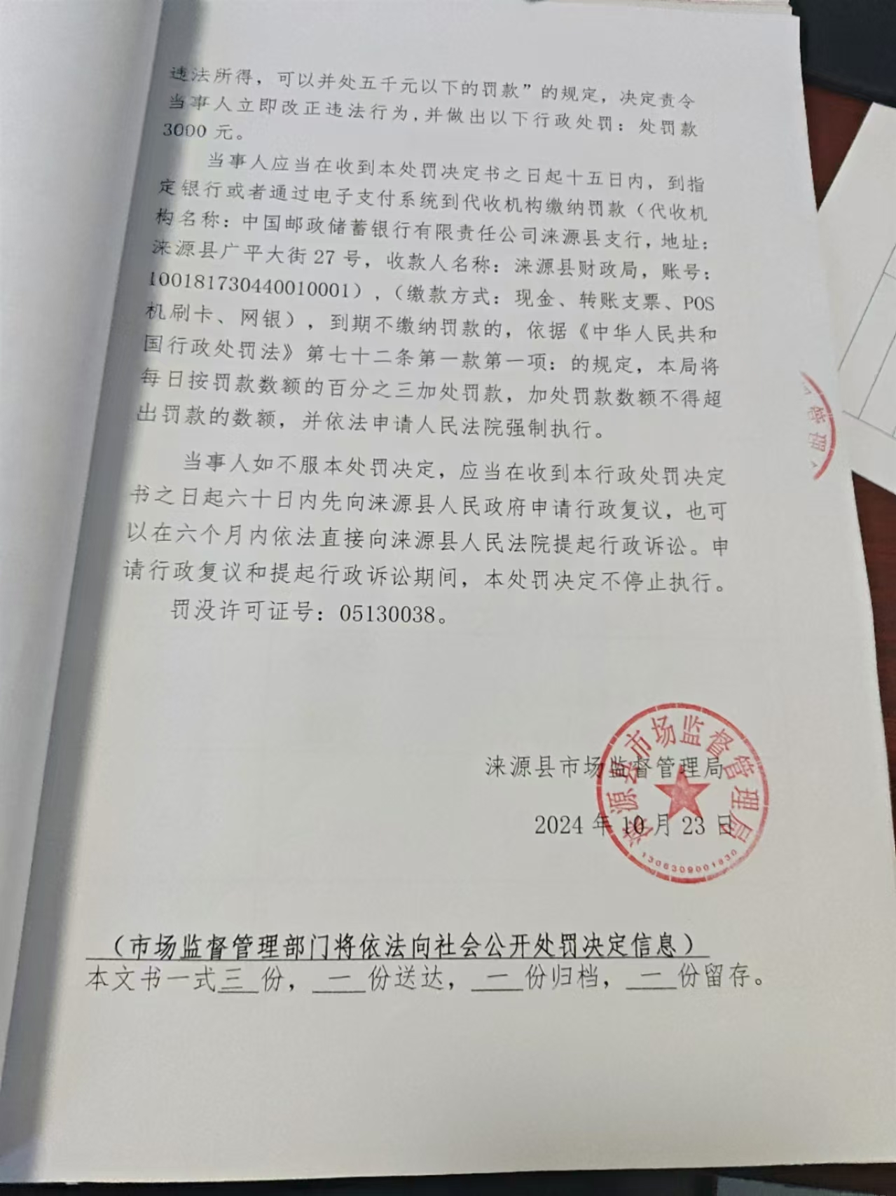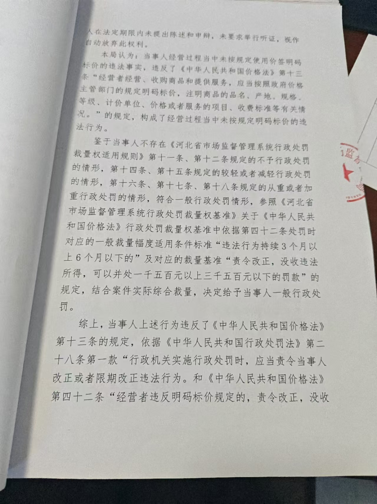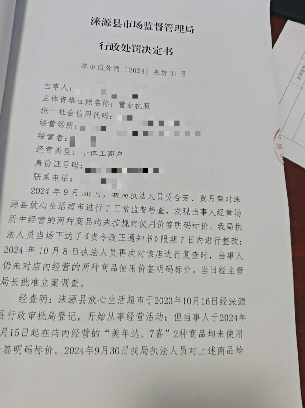 涞市监处罚〔2024〕泉坊31号涞源县放心生活超市未按规定明码标价案