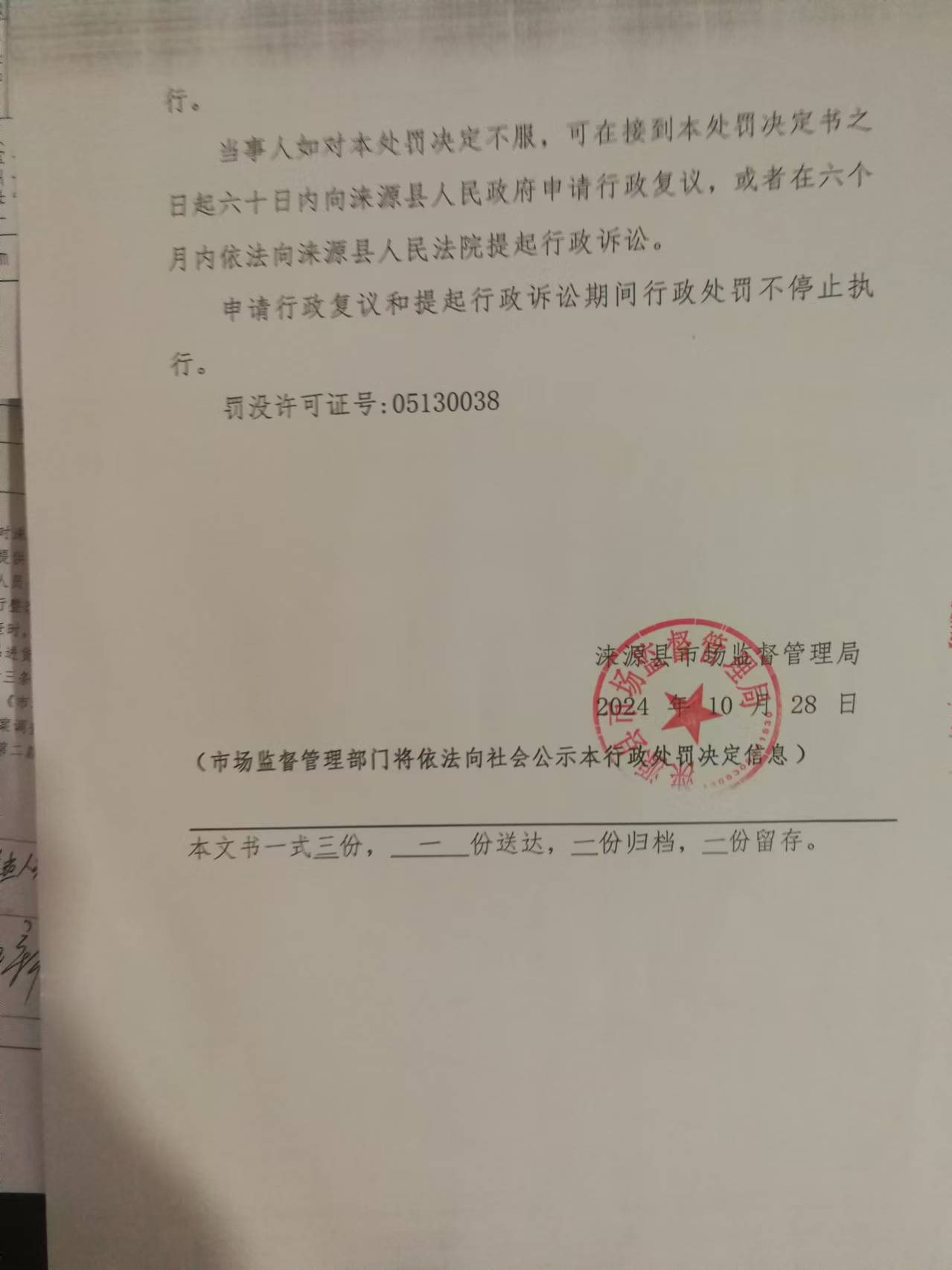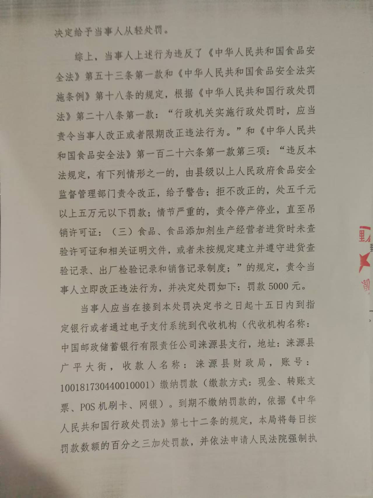 涞市监处罚〔2024〕白石山18号涞源县秀鑫便利店进货未按规定查验供货者许可证和合格证明文件案