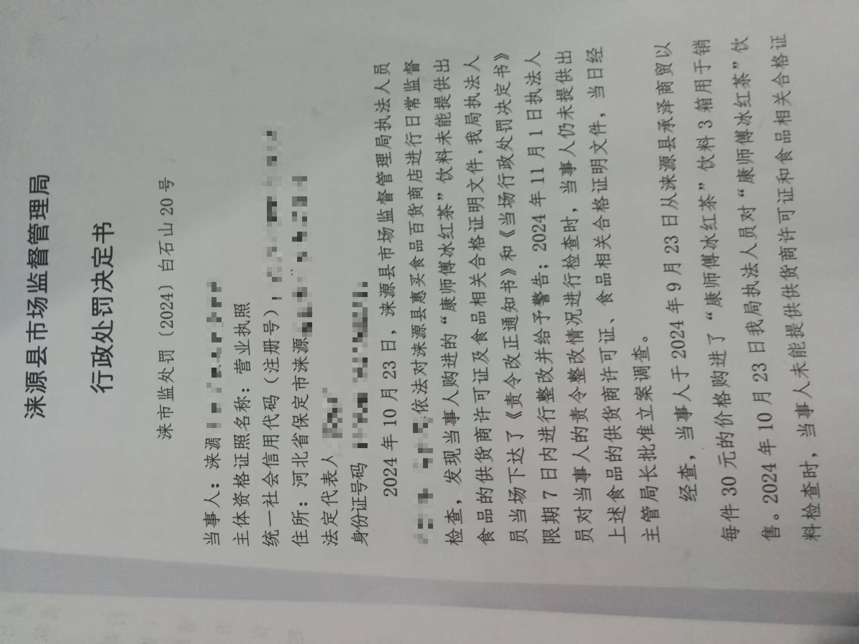 涞市监处罚〔2024〕白石山20号涞源县惠买食品百货商店进货时未按规定建立并遵守进货查验记录制度案