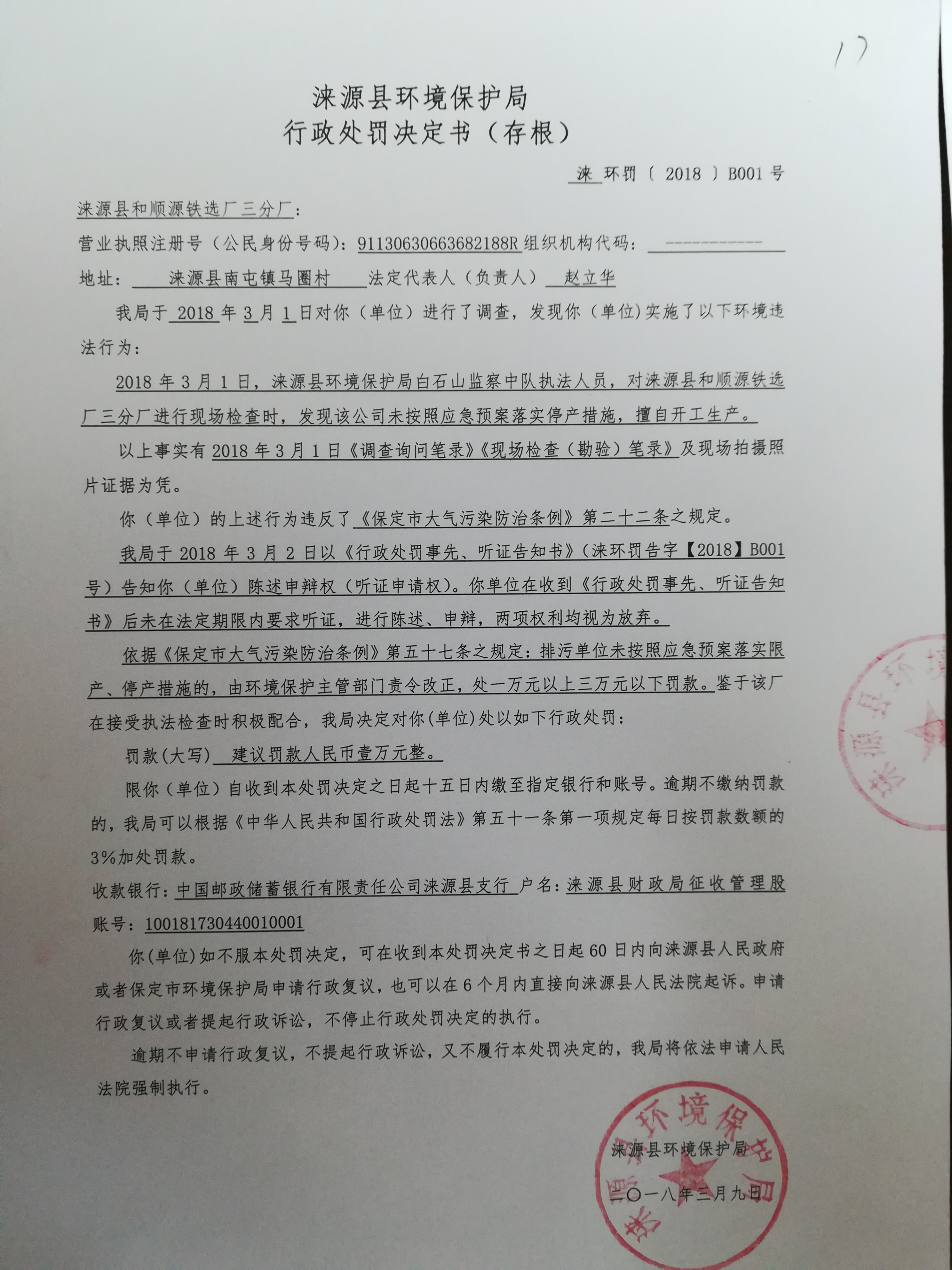 | 涞源县环境保护局行政处罚案件信息公示表(涞源县和顺源铁选厂三分厂) | |||||||||||||||||||||||||||||||||||||||||||||||||||||